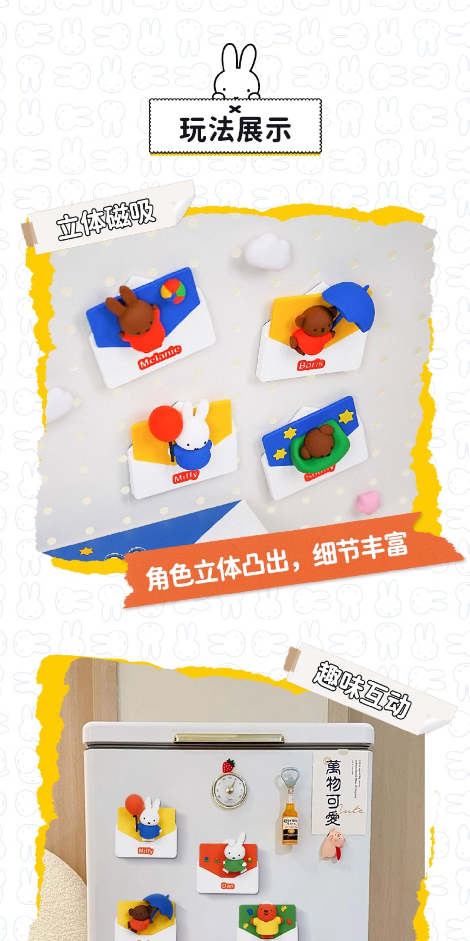 正版米菲兔来信了系列冰箱贴创意可爱贴贴乐手办玩具盲盒批发
