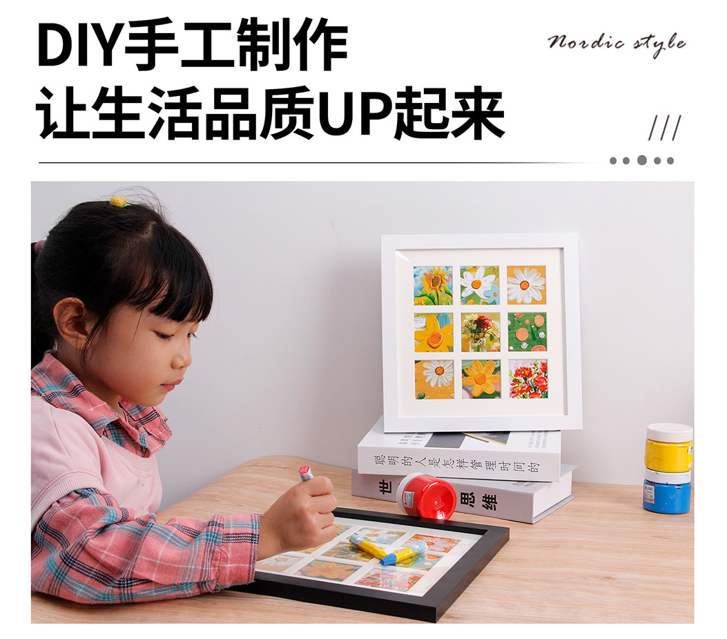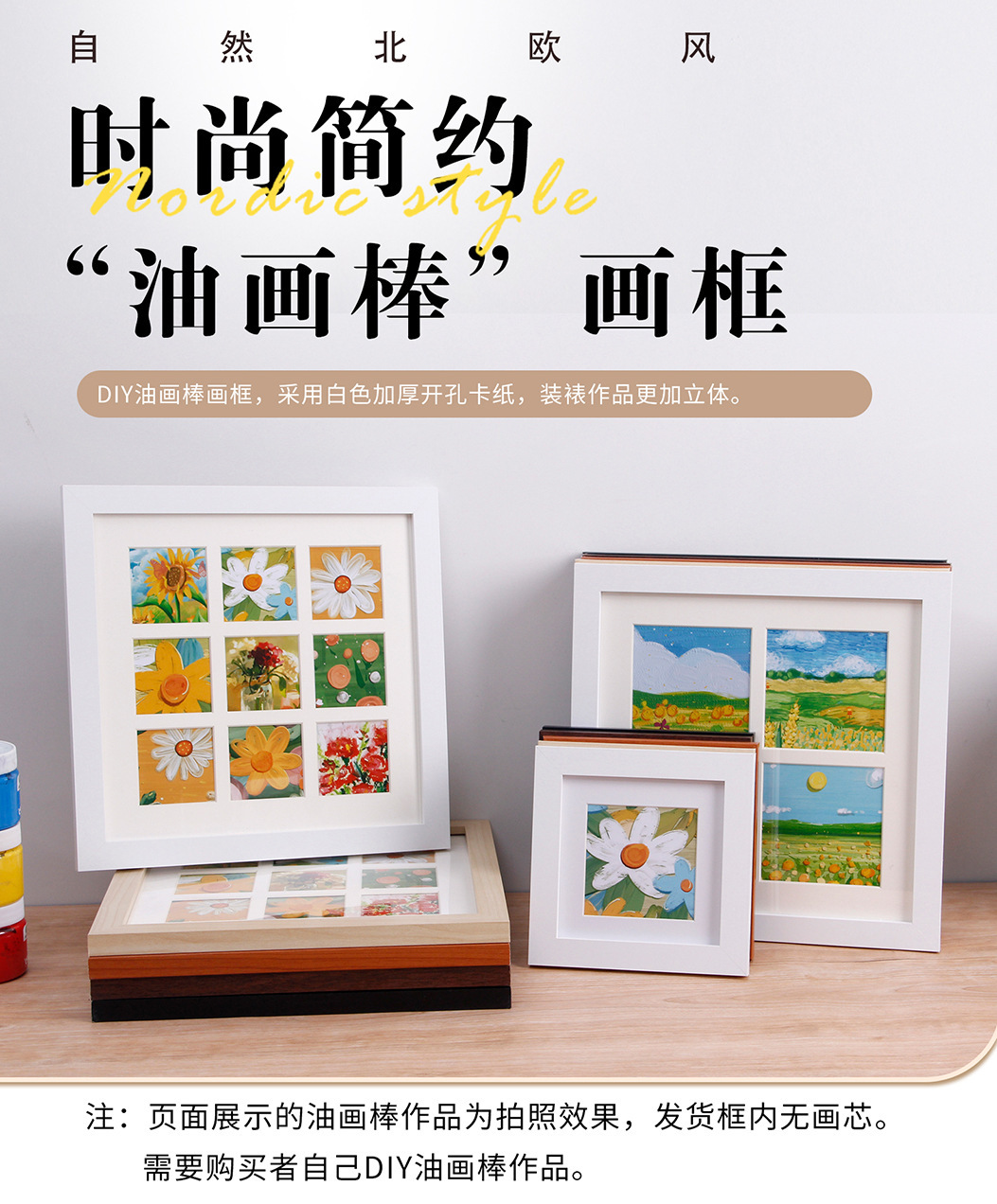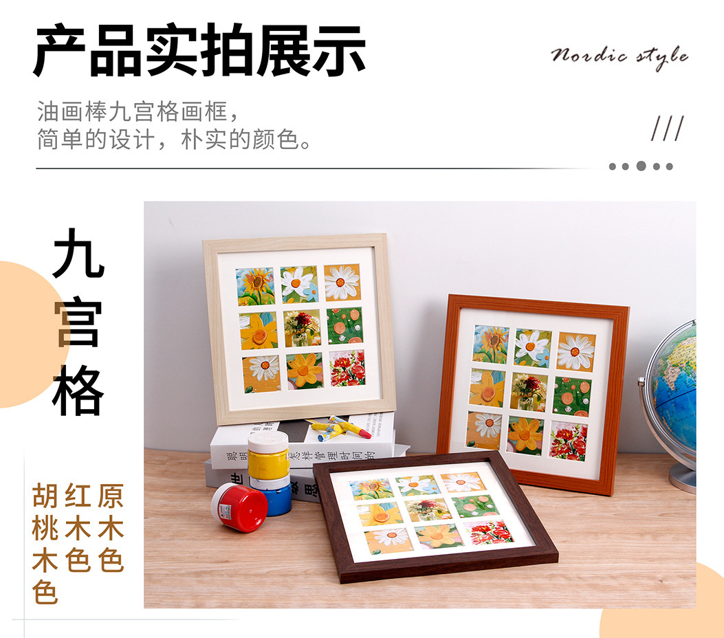 九宫格四宫格油画棒相框正方形仿实木相框摆台创意油画diy相框
