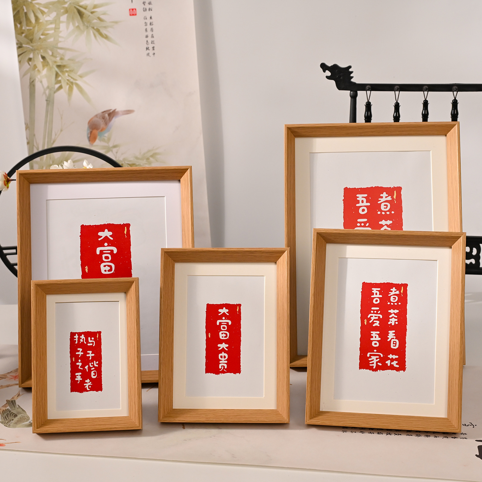 新中式文创中空书法6寸相框空框7810寸A4挂墙装裱饰照片画框摆台