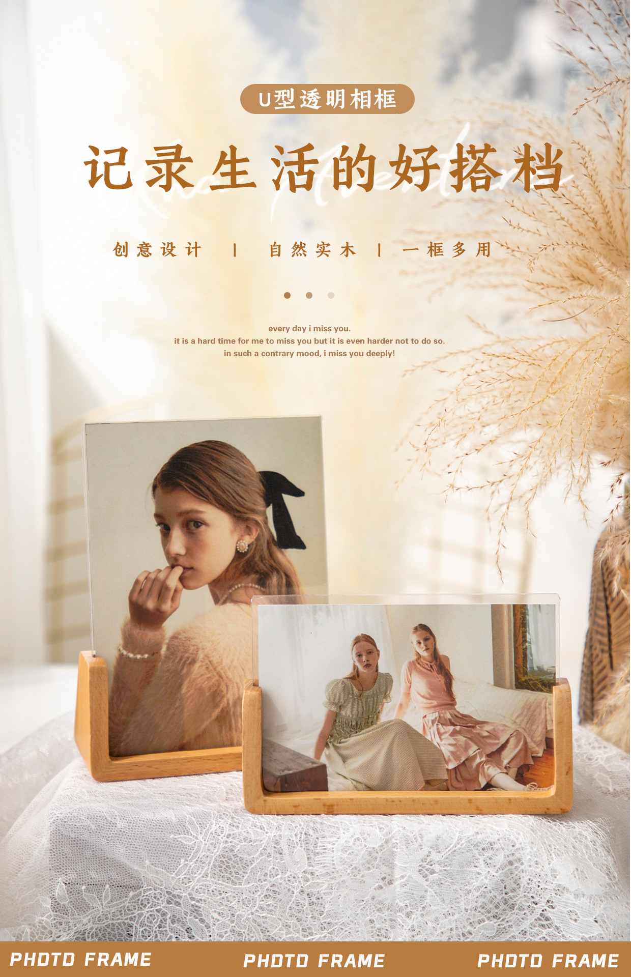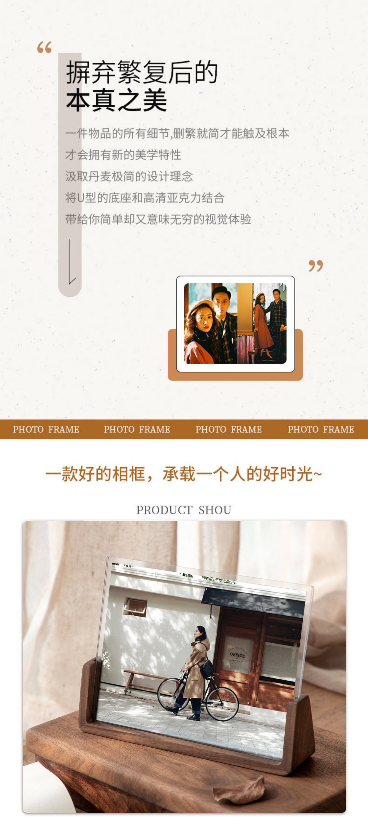 U型创意实木相框摆台亚克力打印照片加框架diy展示装洗照片做成相