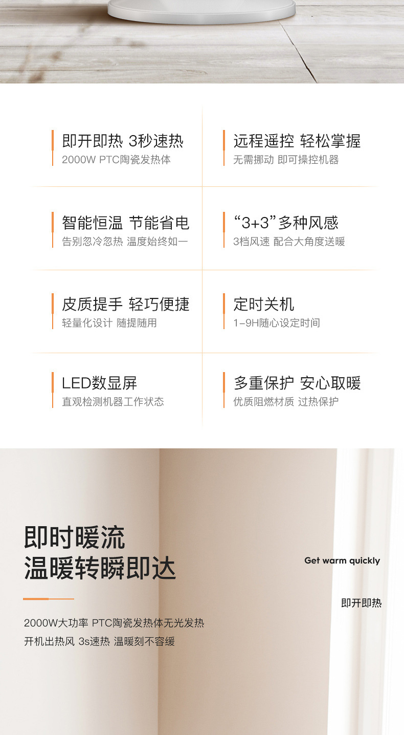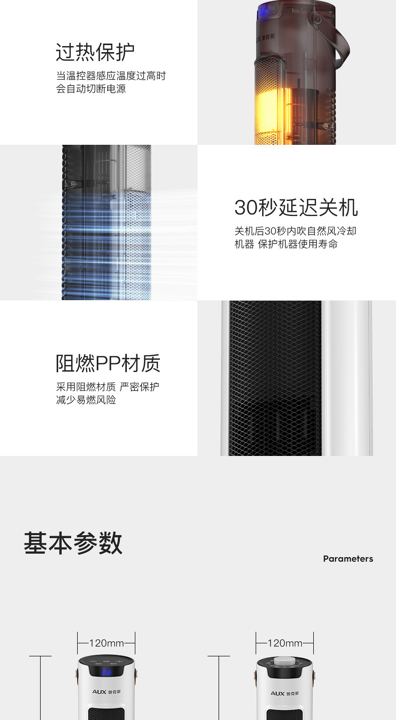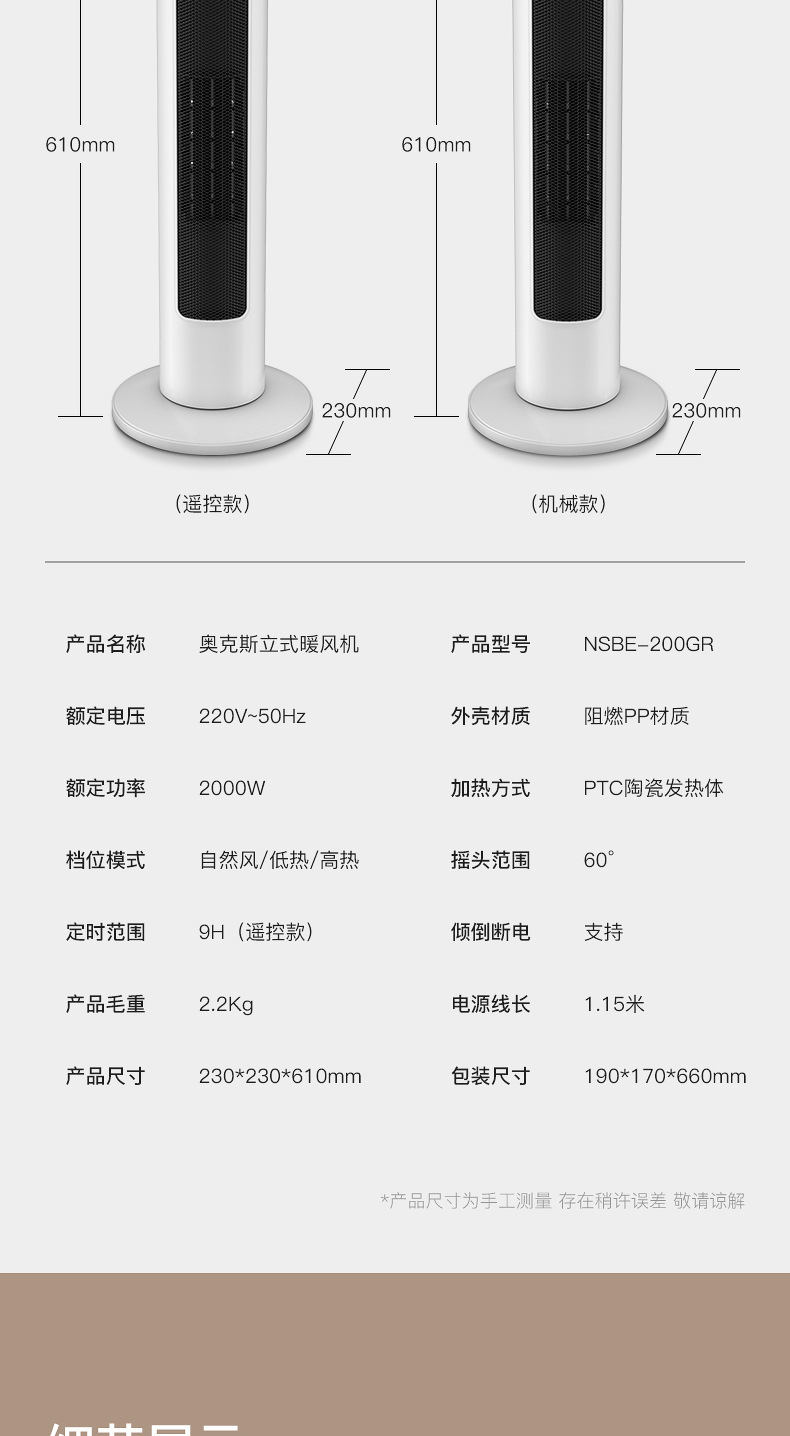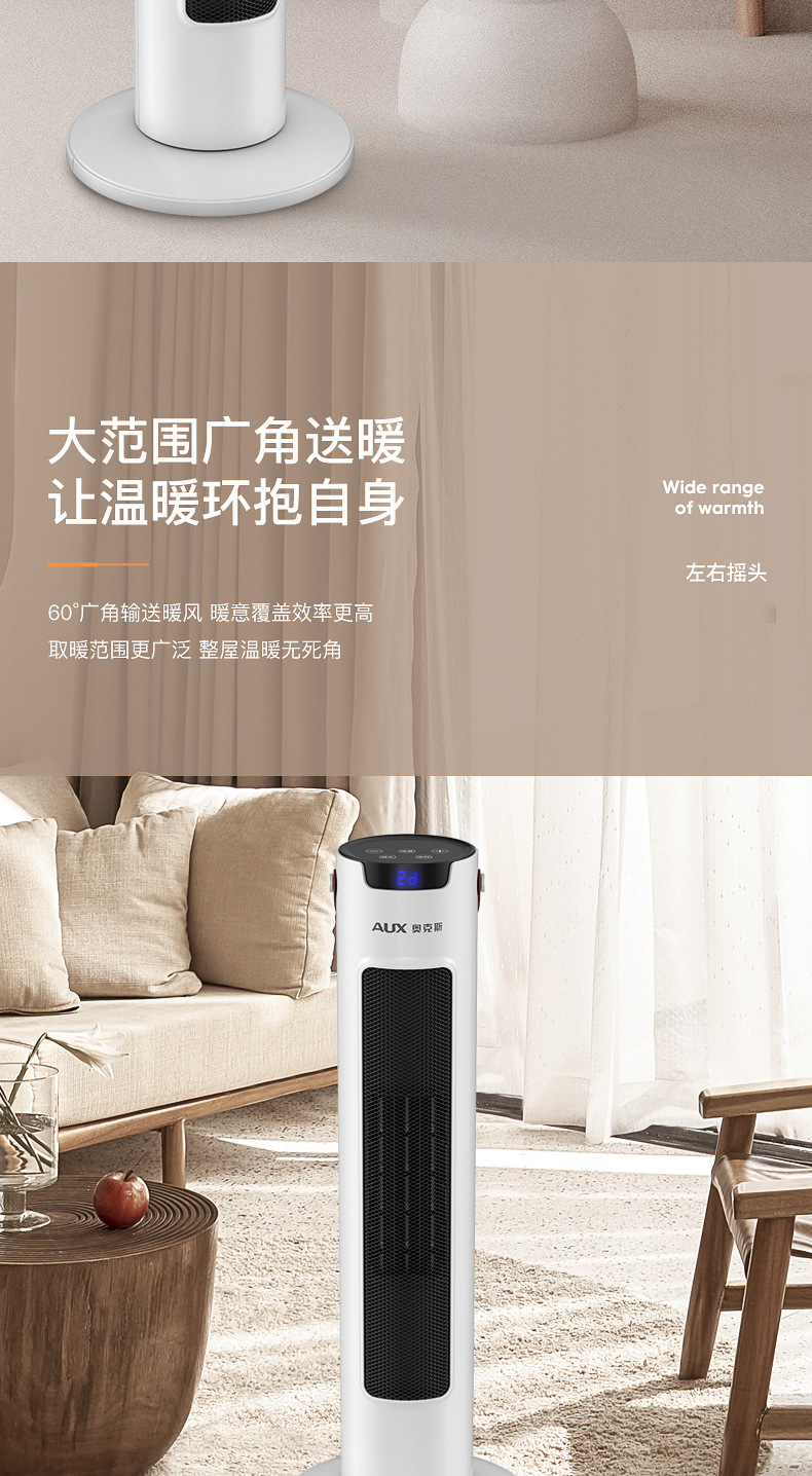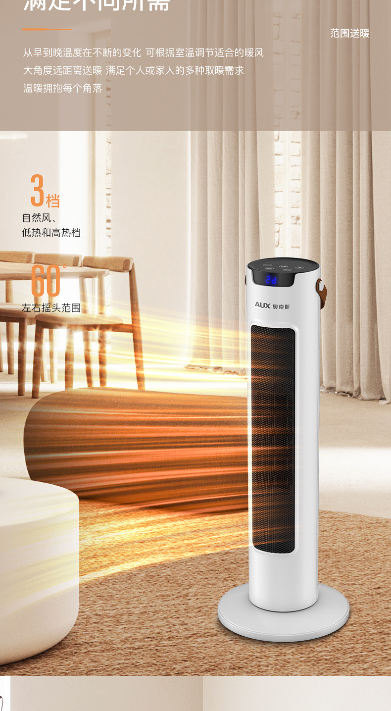 奥克斯取暖器家用全屋暖气省电浴室热风卧室立式电热暖风机200GR
