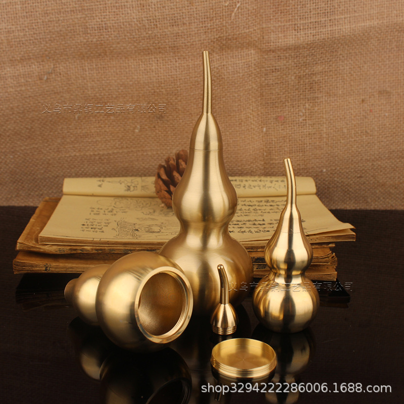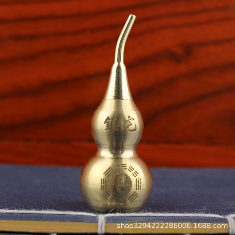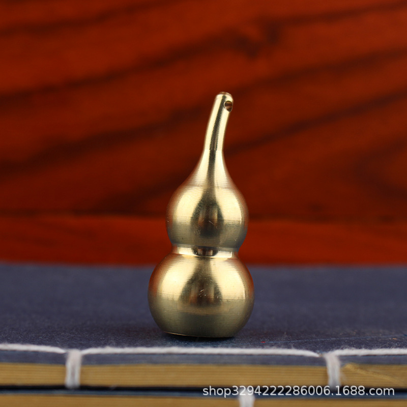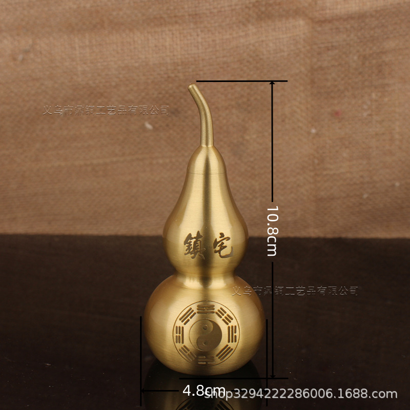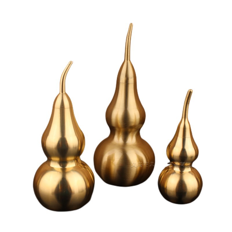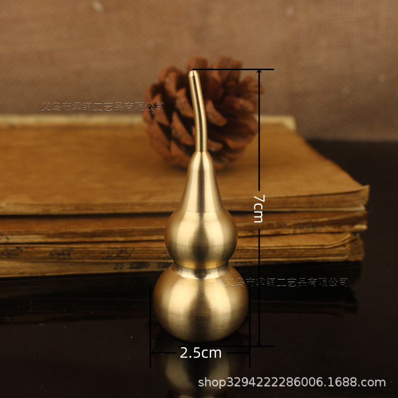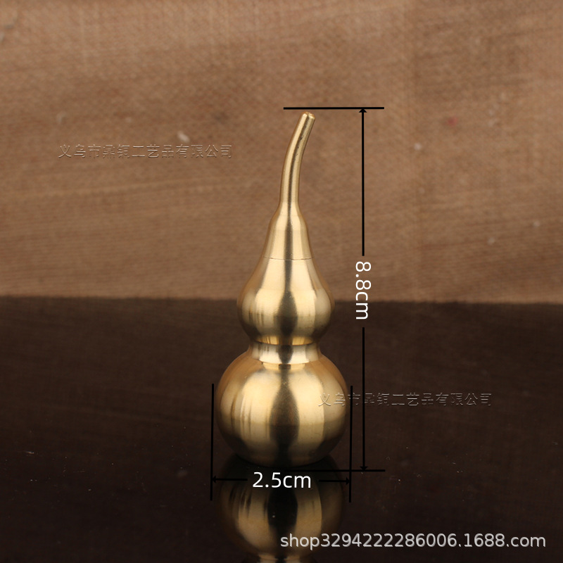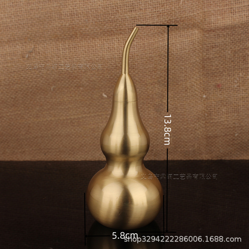 空心葫芦摆件纯黄铜葫芦家居长柄歪头开孔开盖铜器金属工艺品