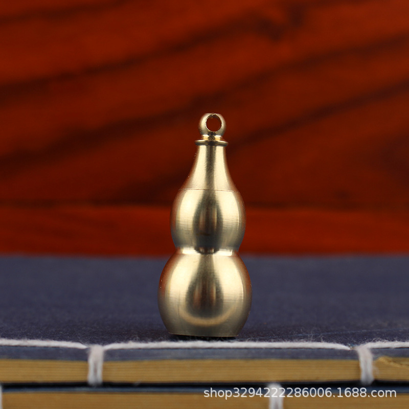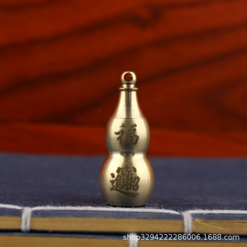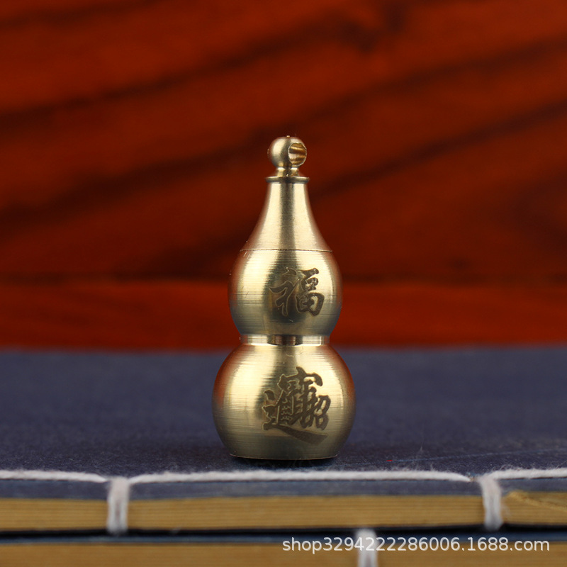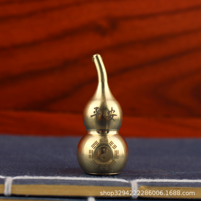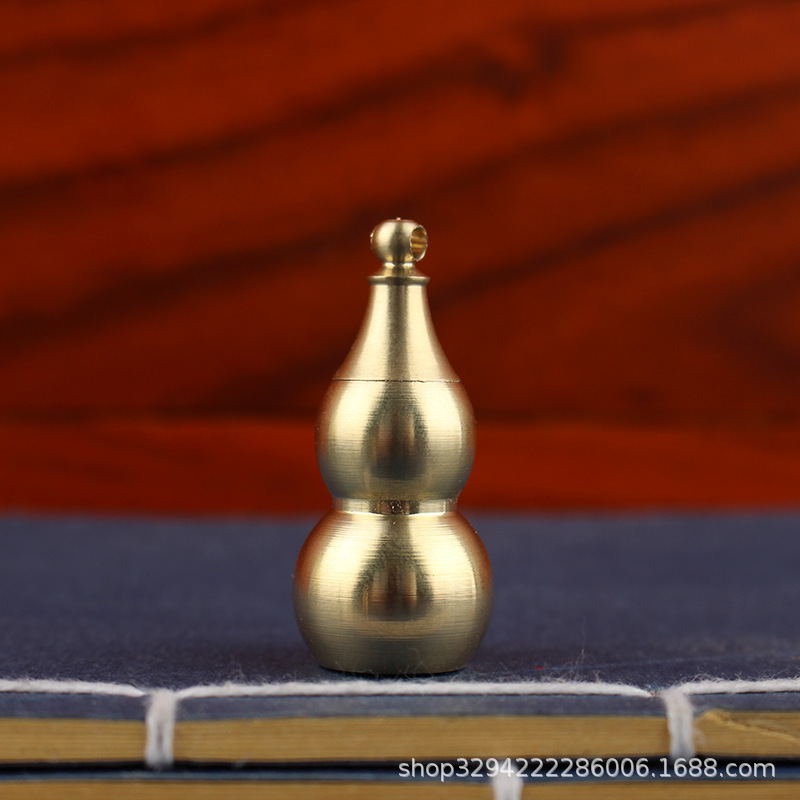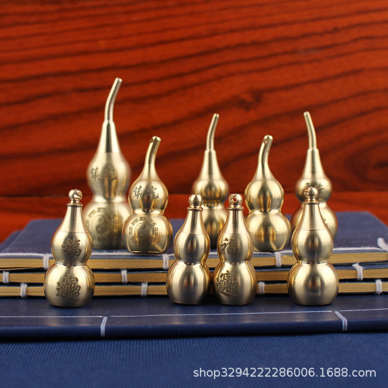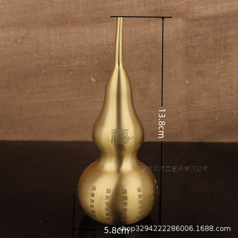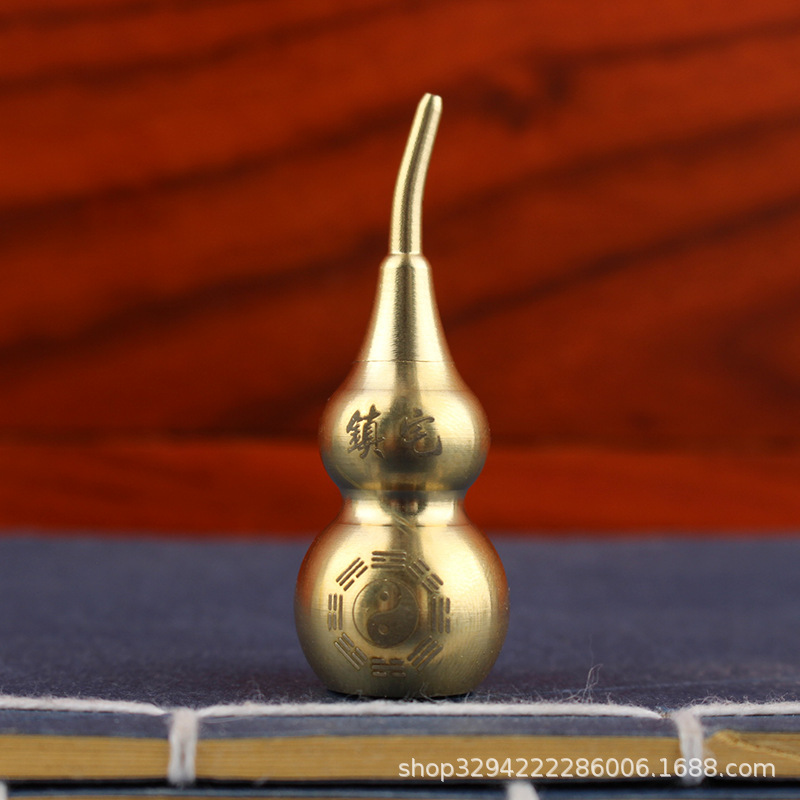 空心葫芦摆件纯黄铜葫芦家居长柄歪头开孔开盖铜器金属工艺品