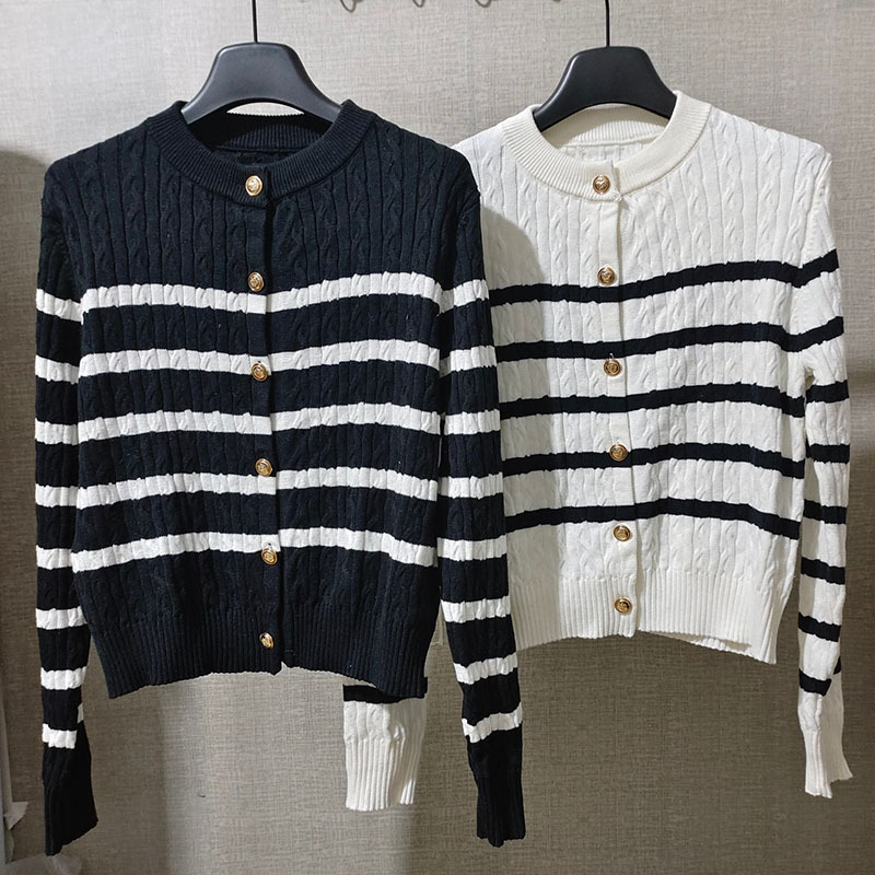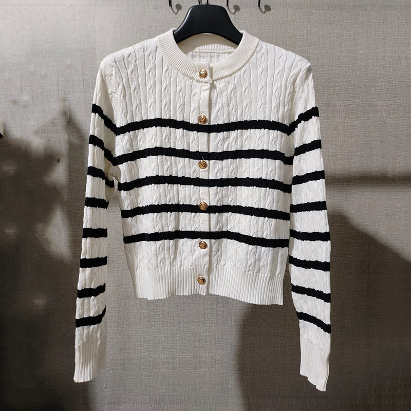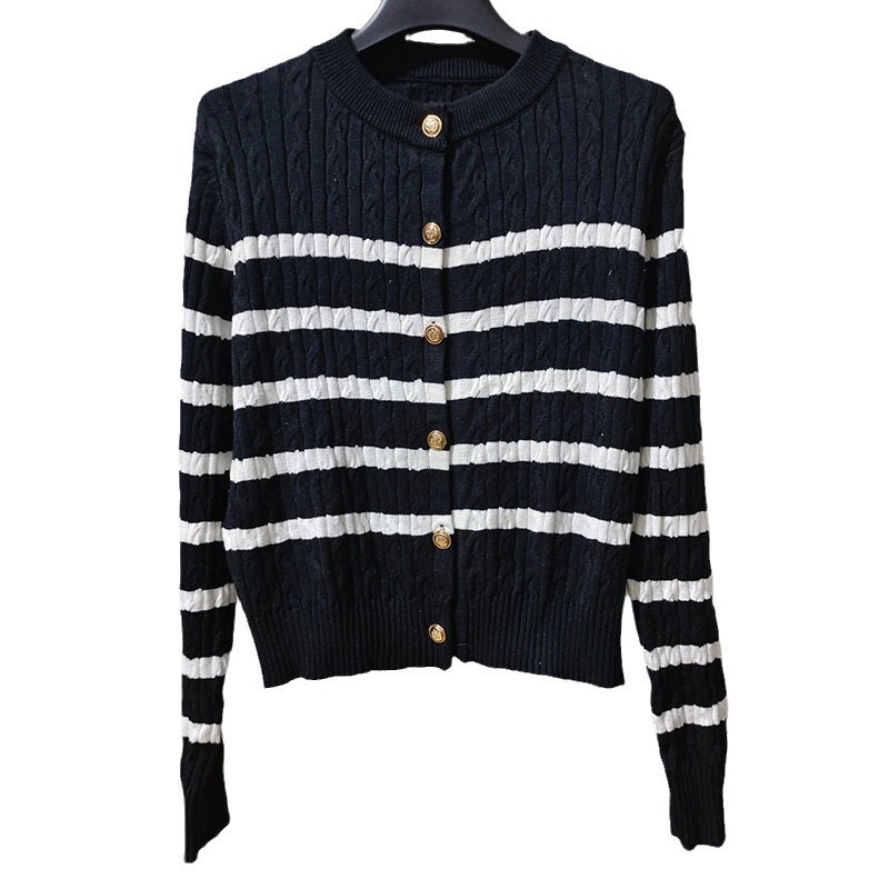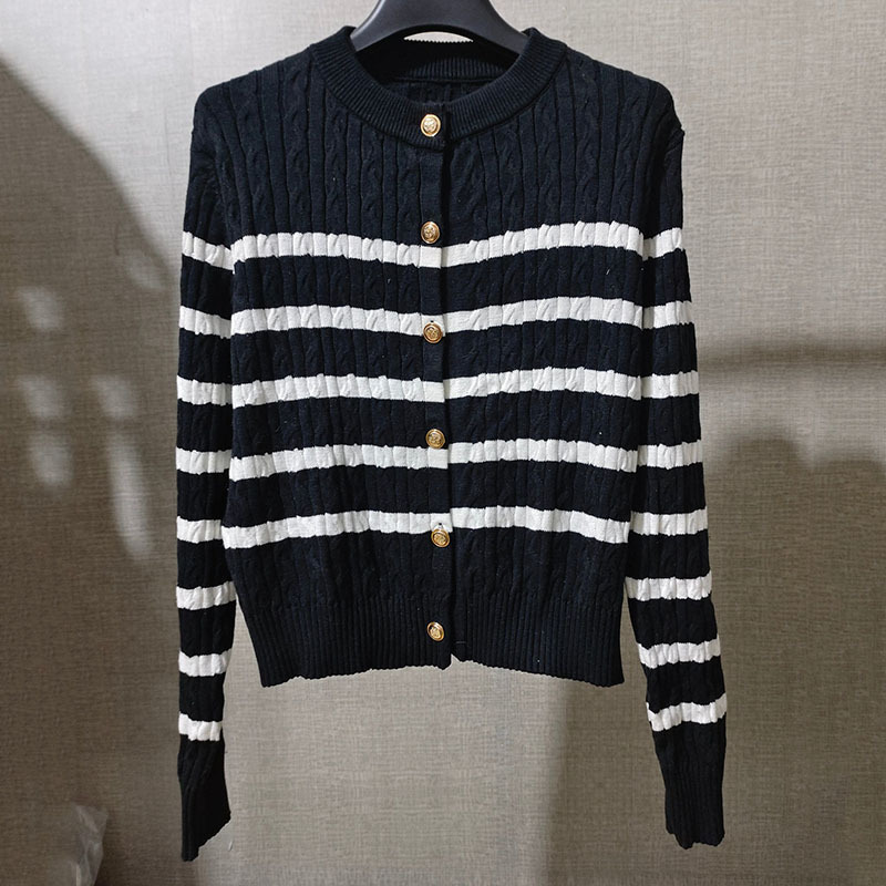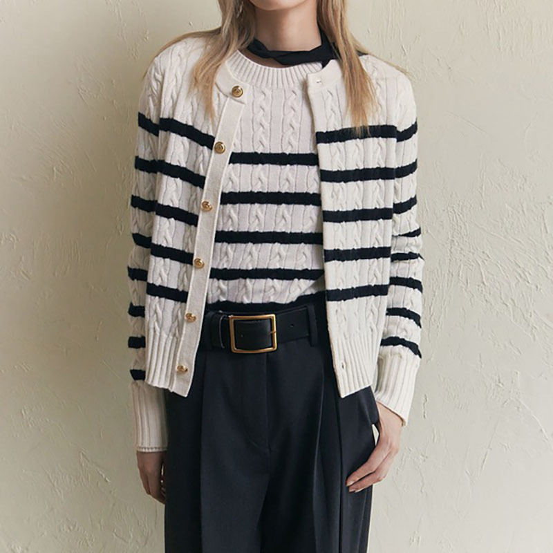 2024春季新款绞花肌理条纹针织开衫女装撞色长袖毛衣宽松上衣外套