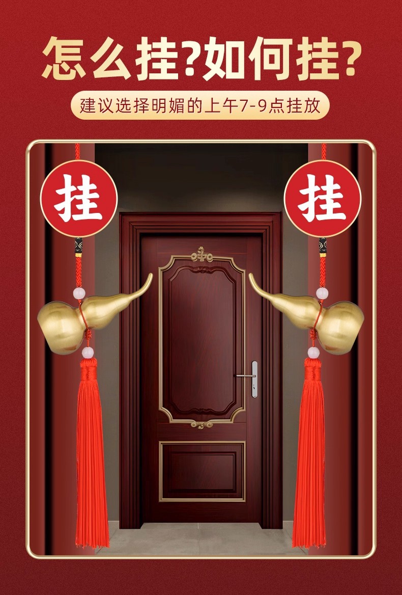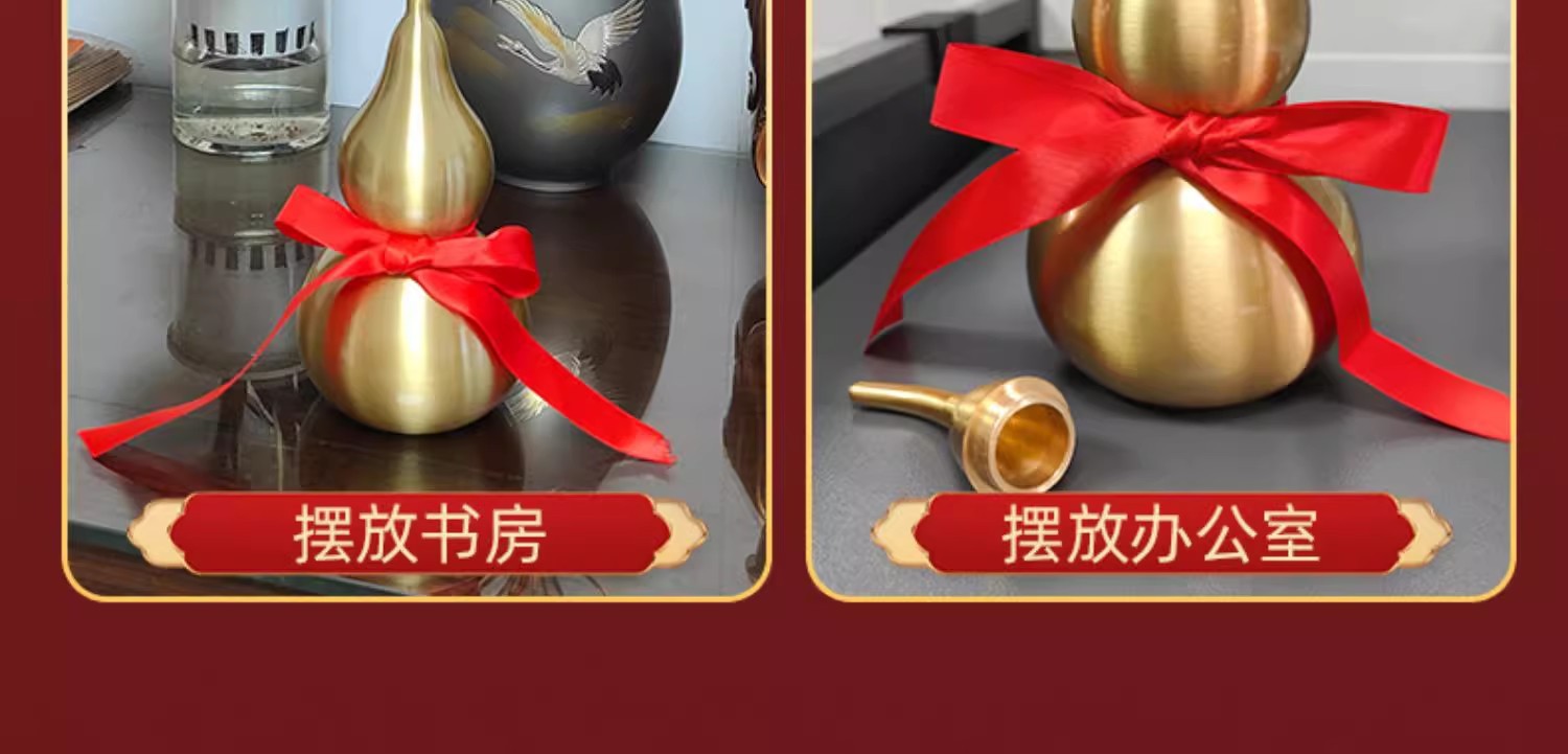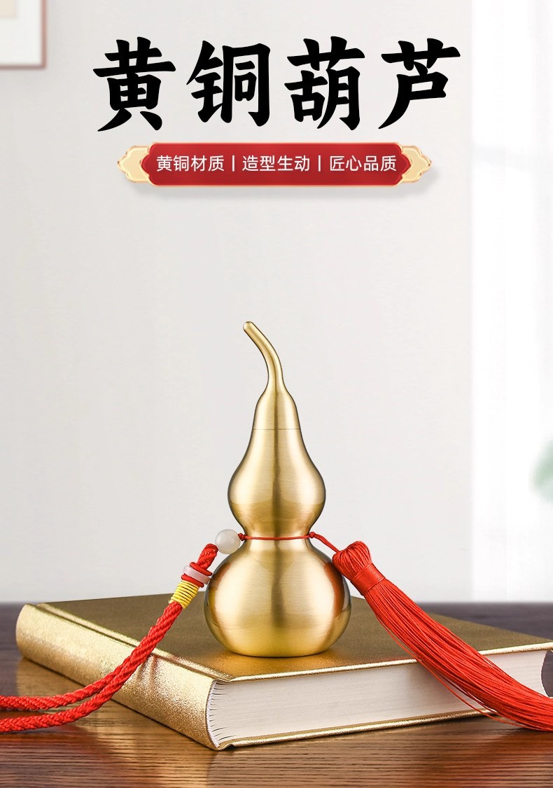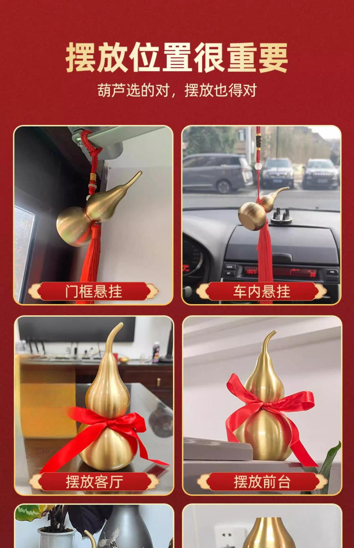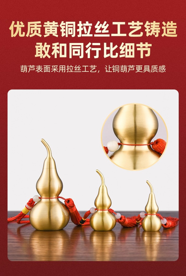 铜葫芦挂件五帝钱开口空心纯黄铜摆件装饰品工艺品办公室车载挂饰