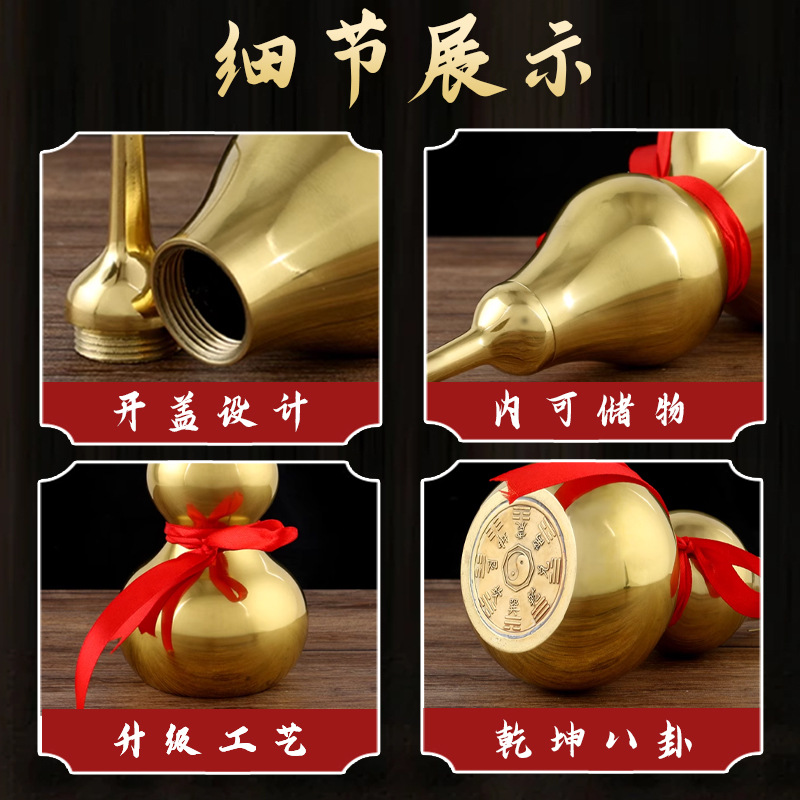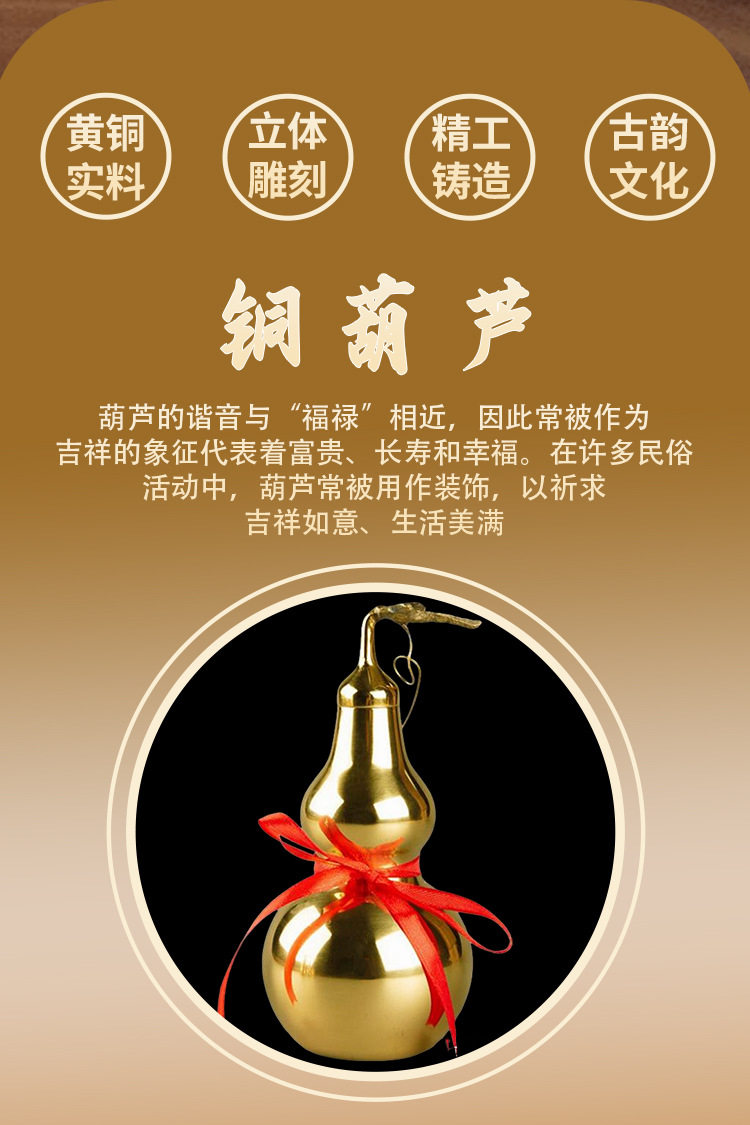 铜葫芦摆件福禄有叶葫芦家居中式工艺品开口八卦葫芦包挂批发