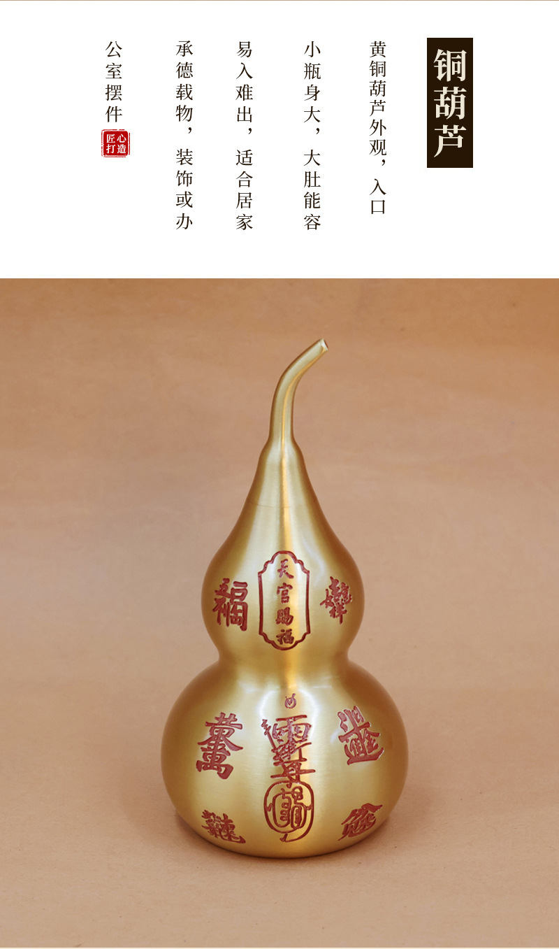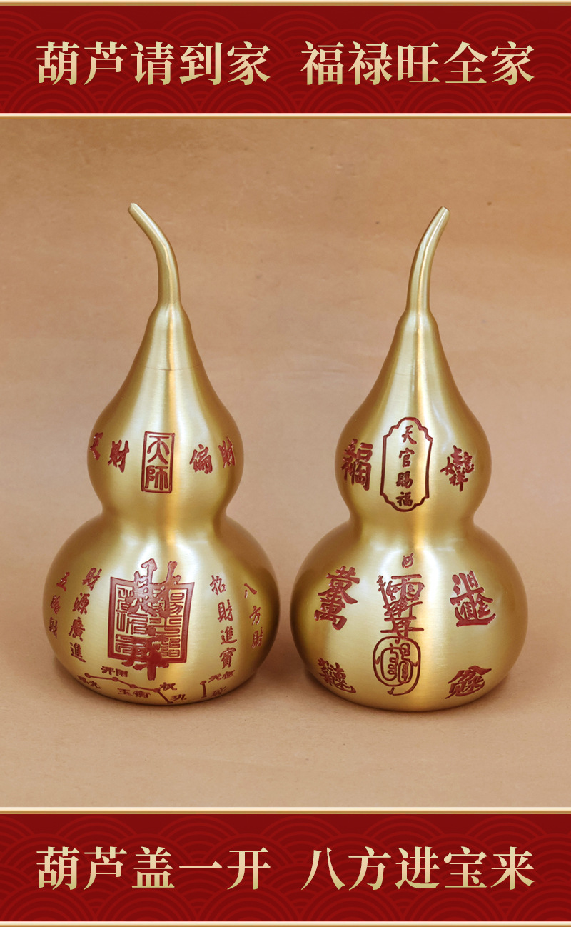 黄铜财库葫芦八方来财日进斗金桌面摆件八卦福禄铜葫芦工艺品批发