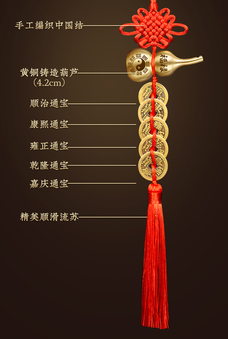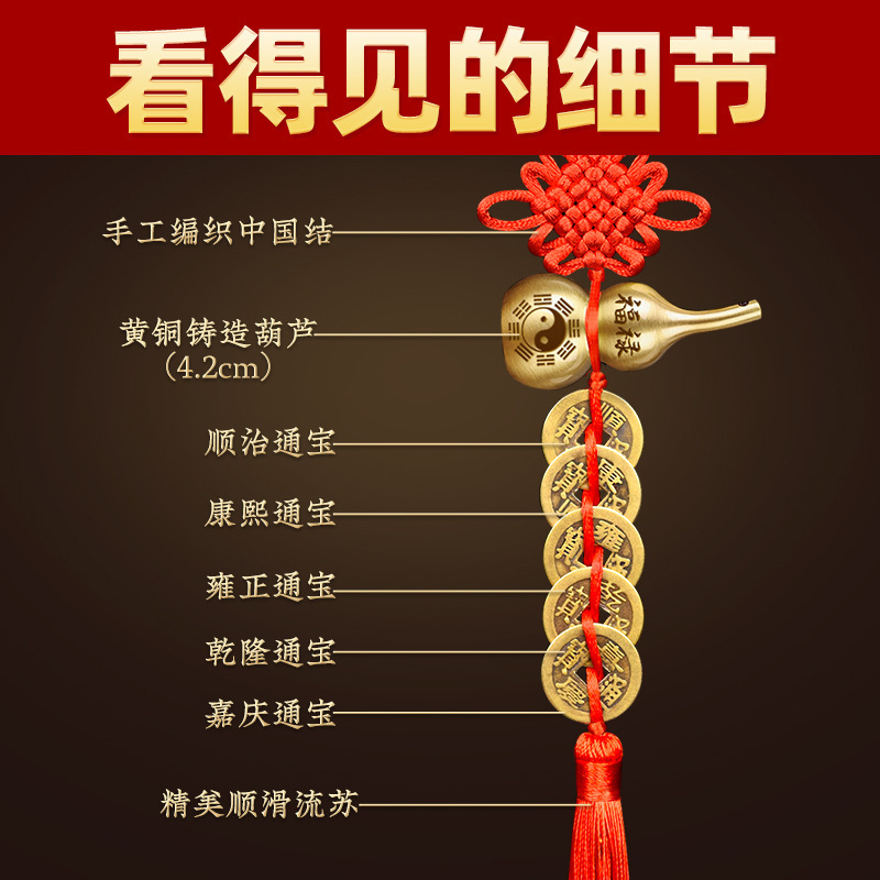 五帝钱铜葫芦挂件家用门对门汽车挂饰中国结真品铜钱五帝钱挂件