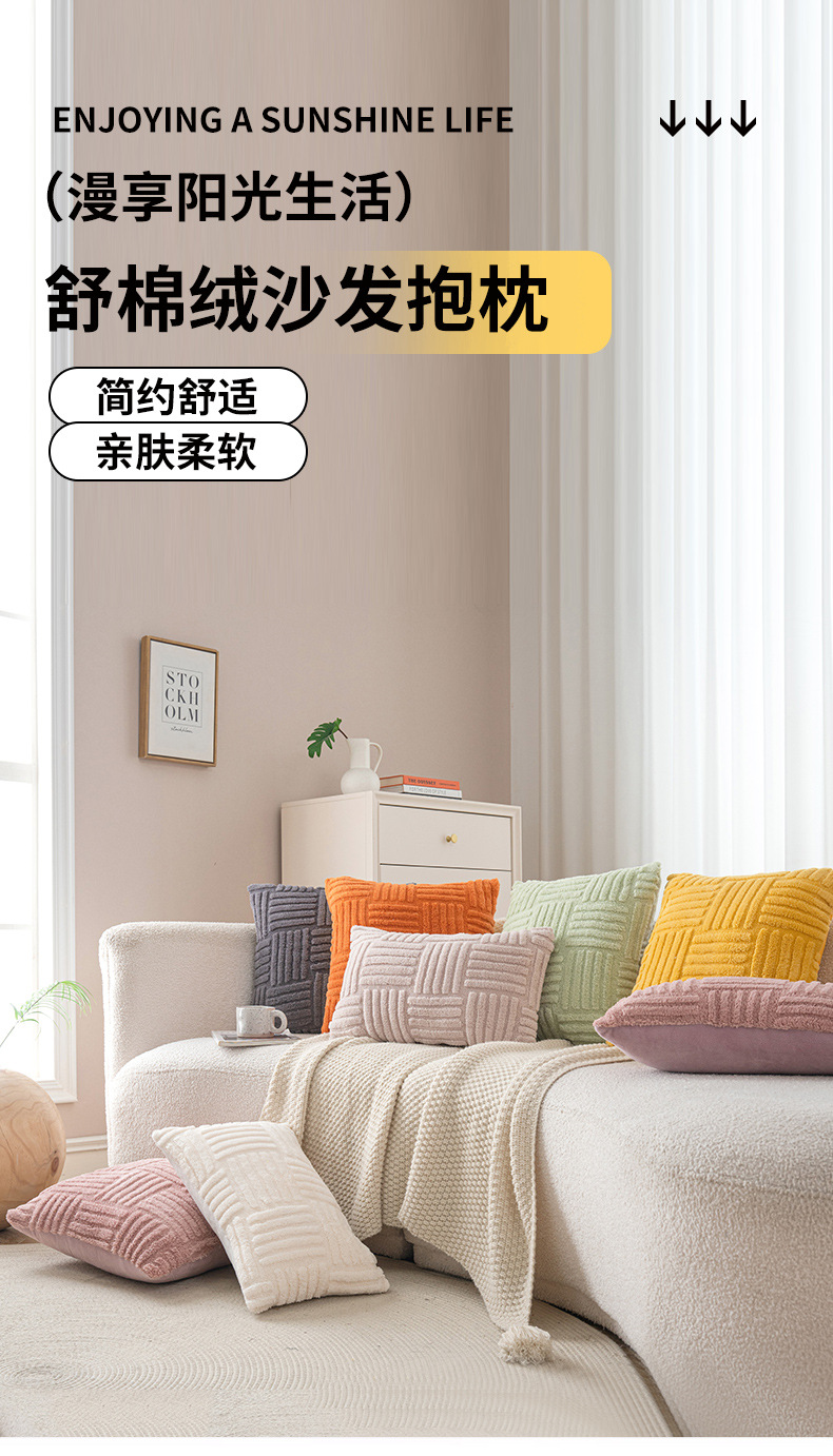 跨境纯色舒棉绒沙发抱枕现代简约客厅沙发靠枕样板房装饰靠垫卧室