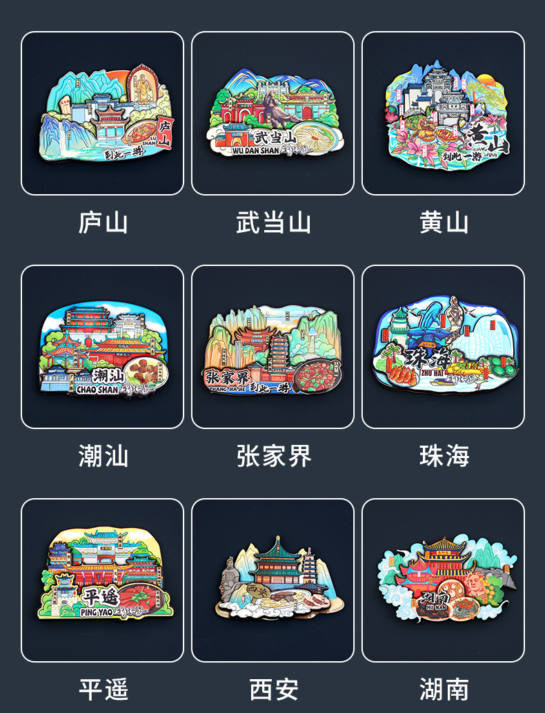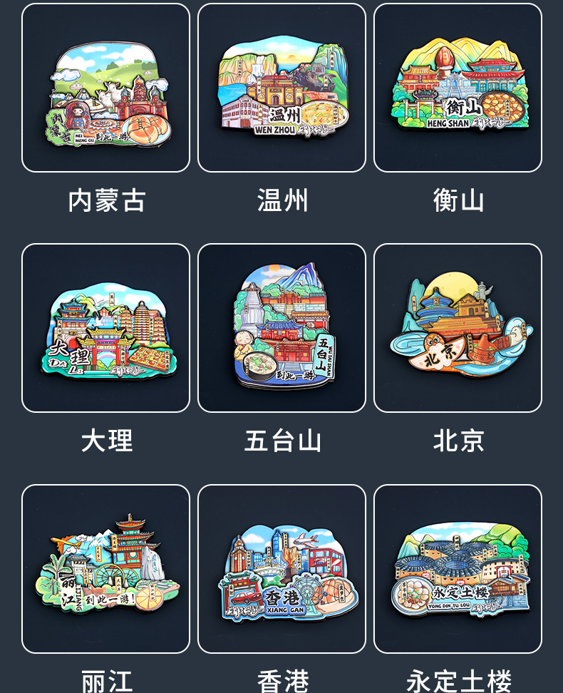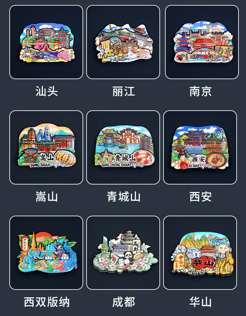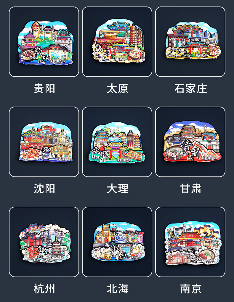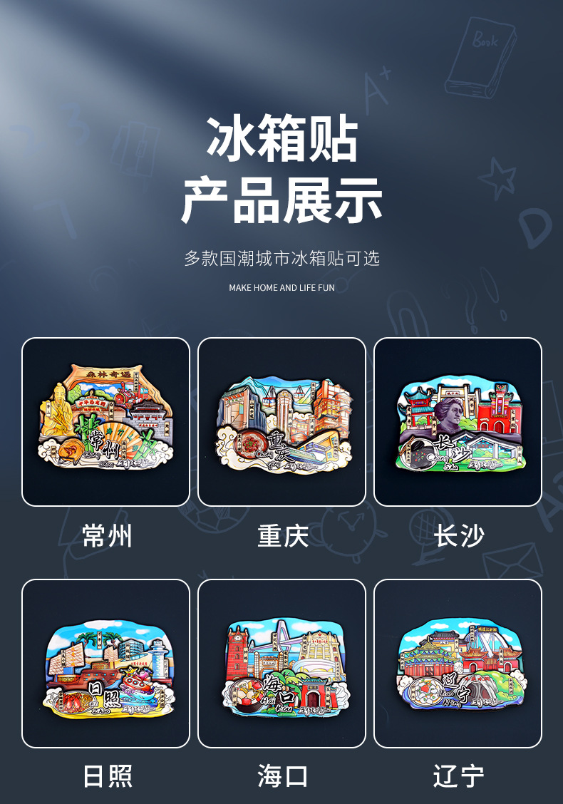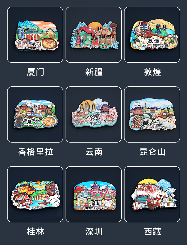 全国城市旅游纪念品木质磁贴3D立体国潮文创磁吸冰箱贴一件代发