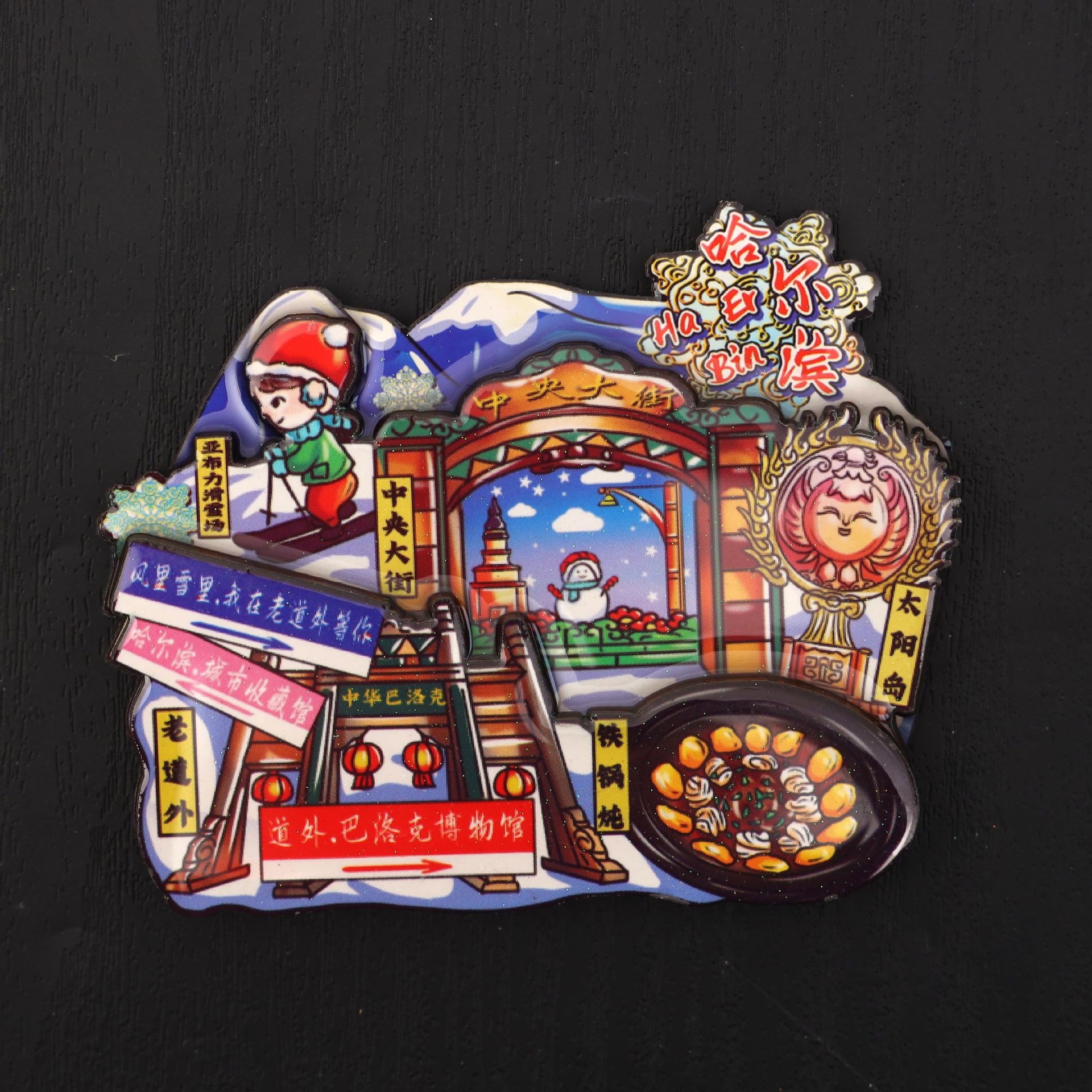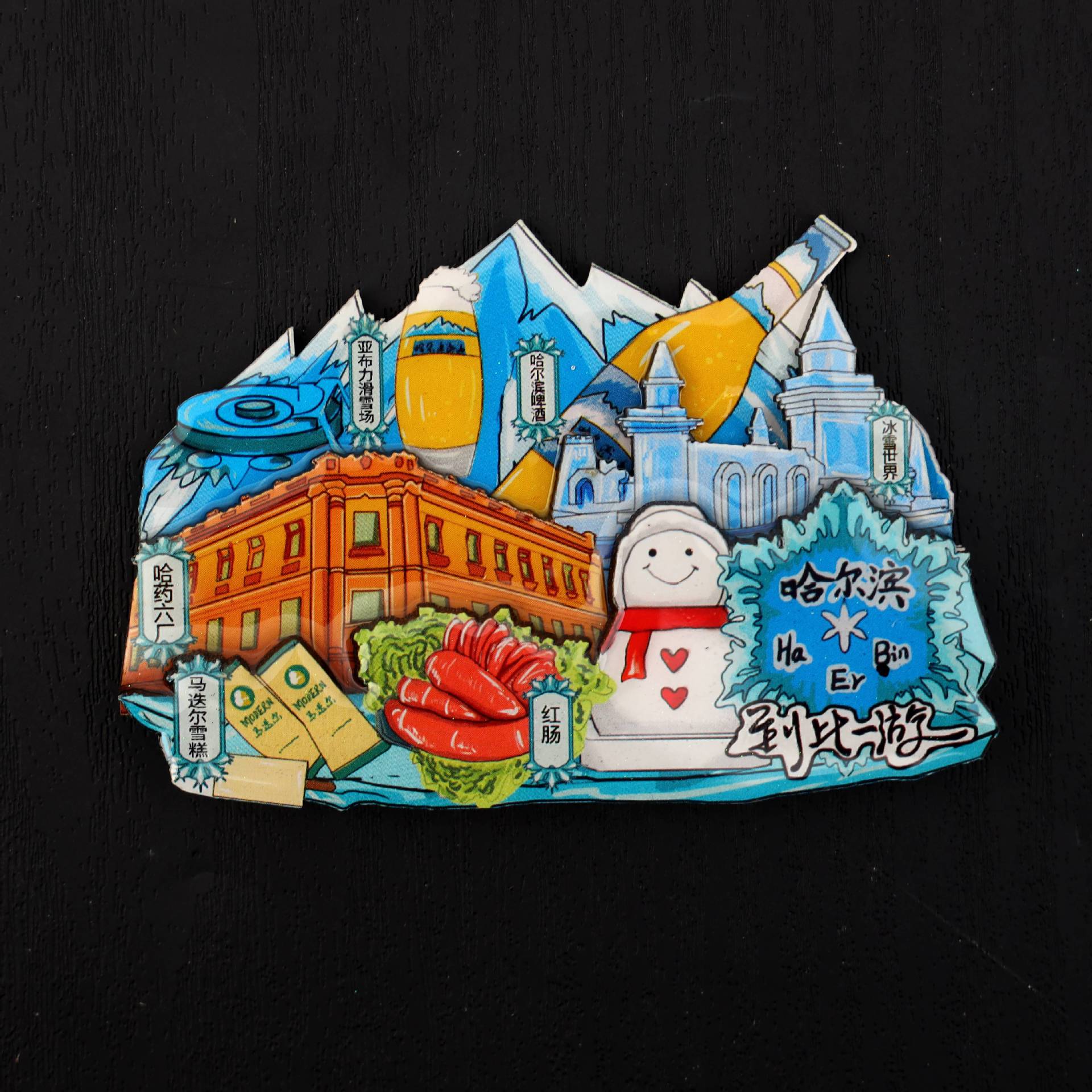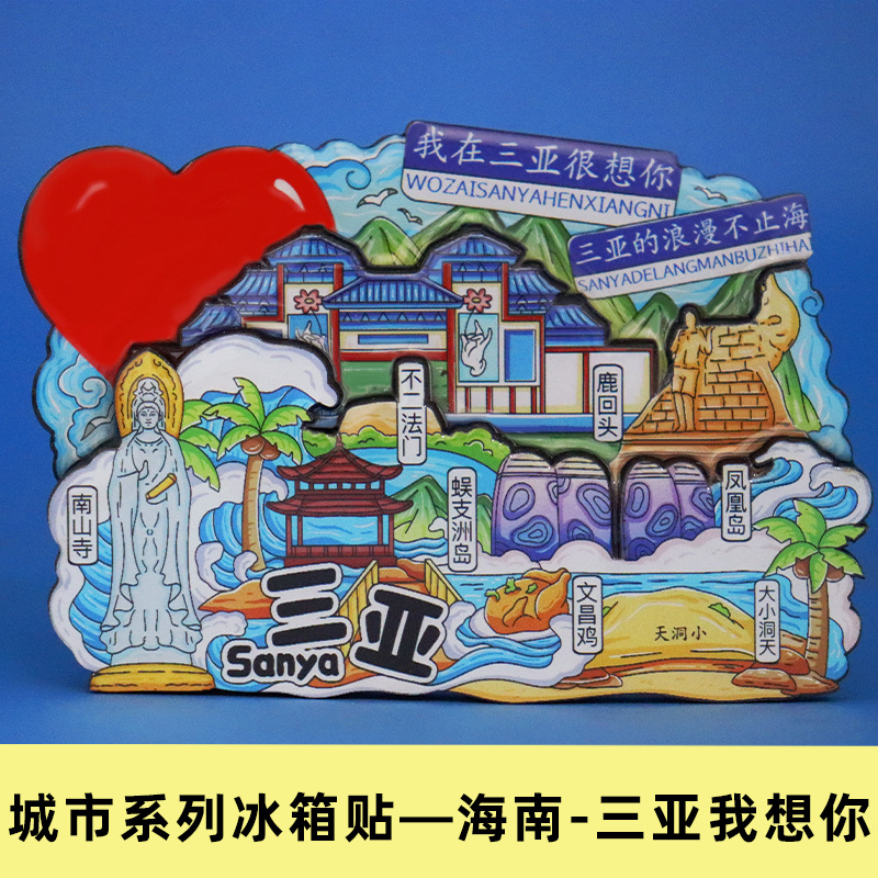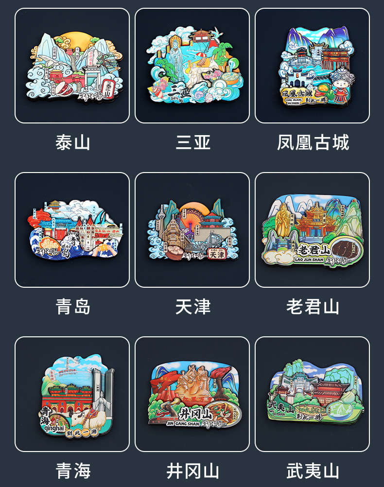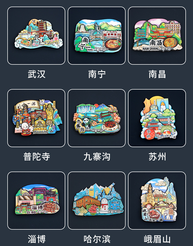 全国城市旅游纪念品木质磁贴3D立体国潮文创磁吸冰箱贴一件代发