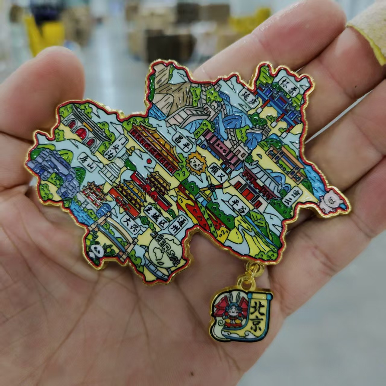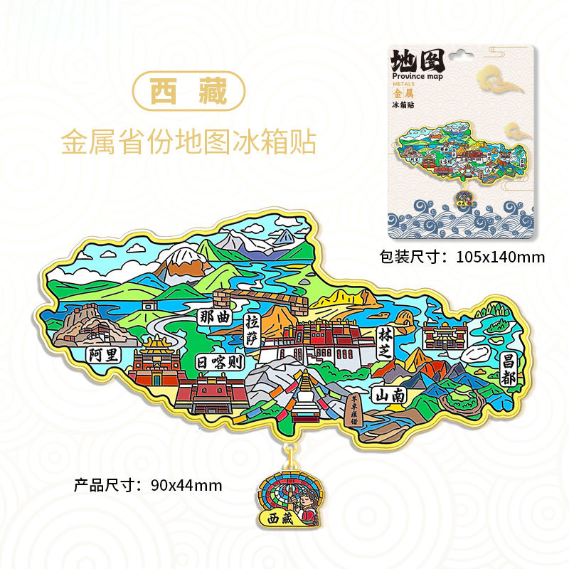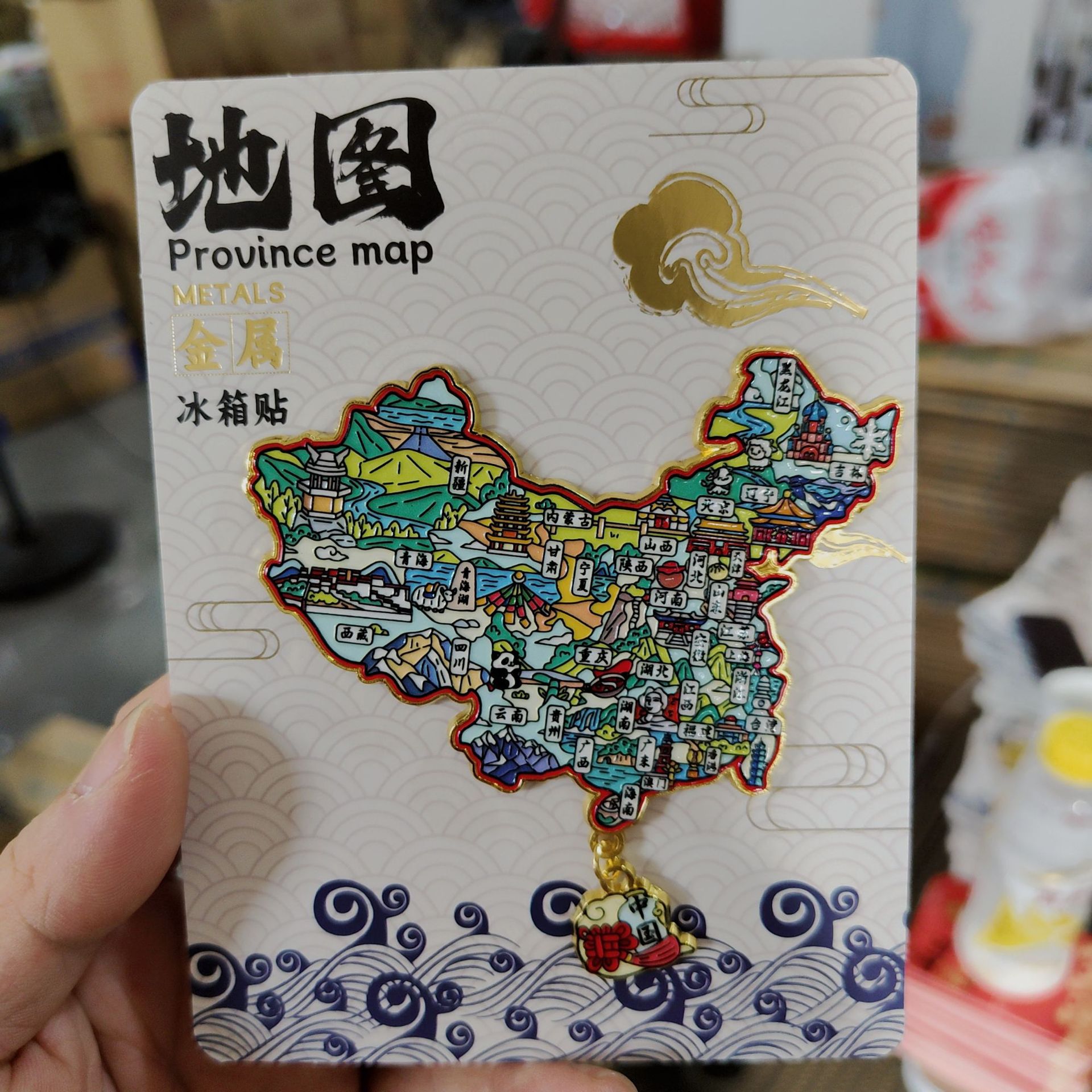 中国省会金属地图冰箱贴磁吸文创纪念品立体城市旅游景区抖音批发
