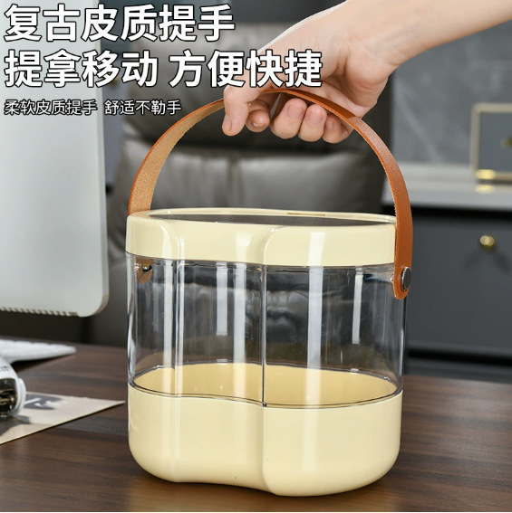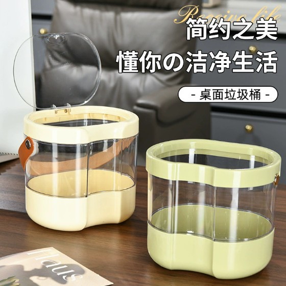 高颜值家用桌面收纳盒宿舍客厅办公室迷你带提手桌面按压式垃圾桶