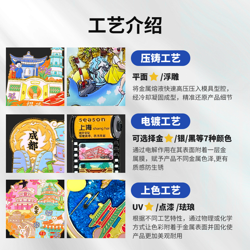 城市文创金属冰箱贴中国城市烤漆景区国潮磁贴立体国风冰箱贴定制