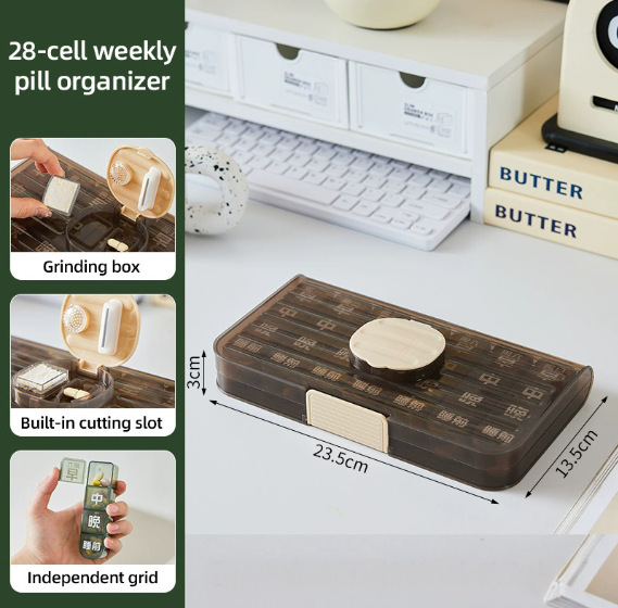 简约一周七天便携式分装药盒药品一日三餐老人大字吃药提醒盒