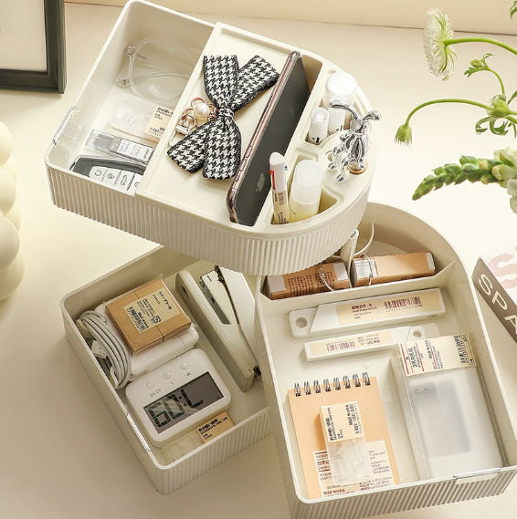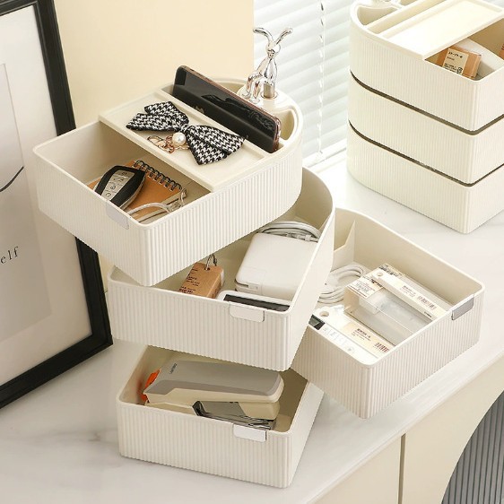 奶油风桌面旋转化妆品收纳盒梳妆台护肤品茶包多层整理置物架