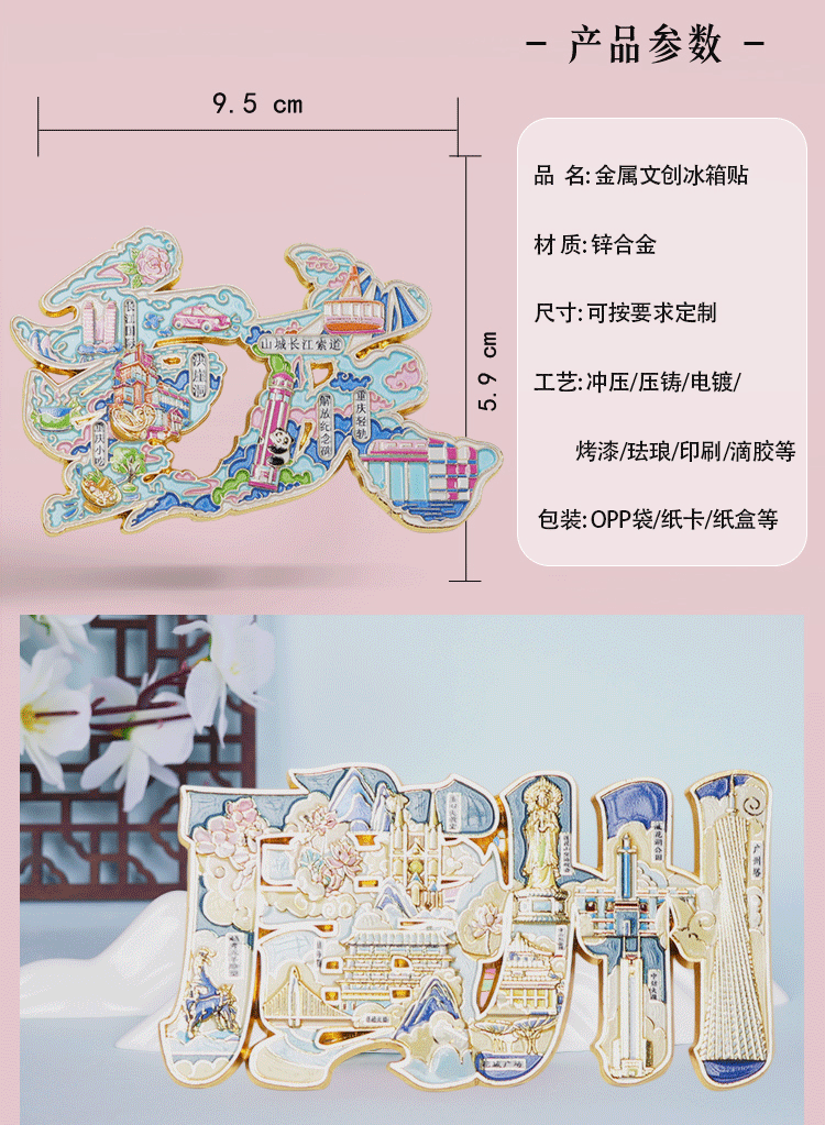 文字金属冰箱贴中国城市旅游景点创新磁贴纪念品工艺品文创伴手礼