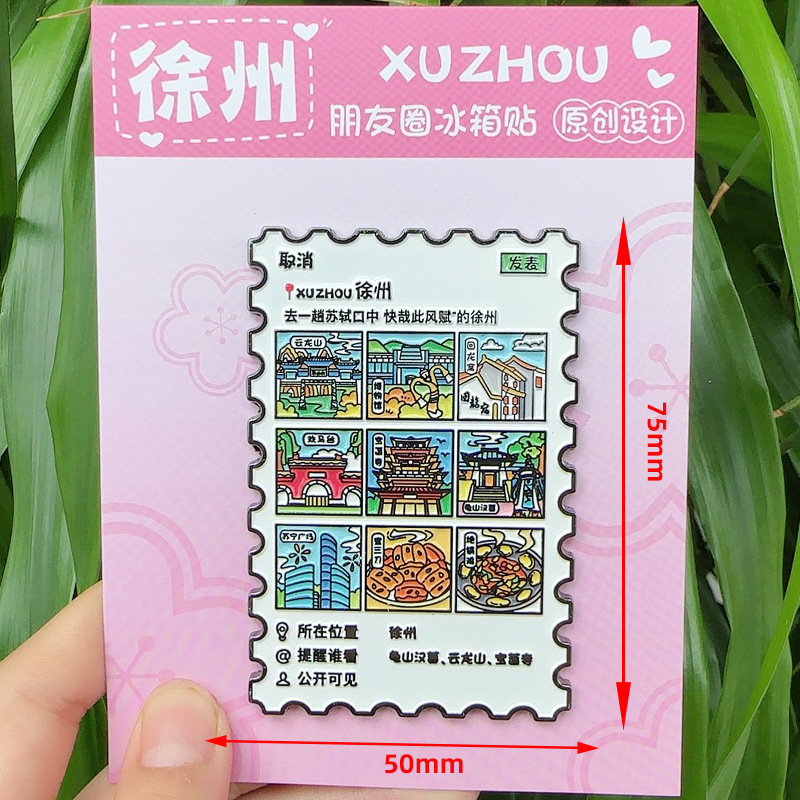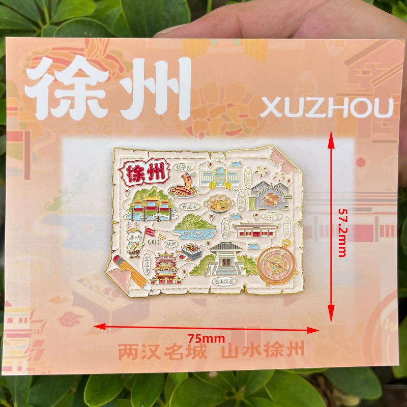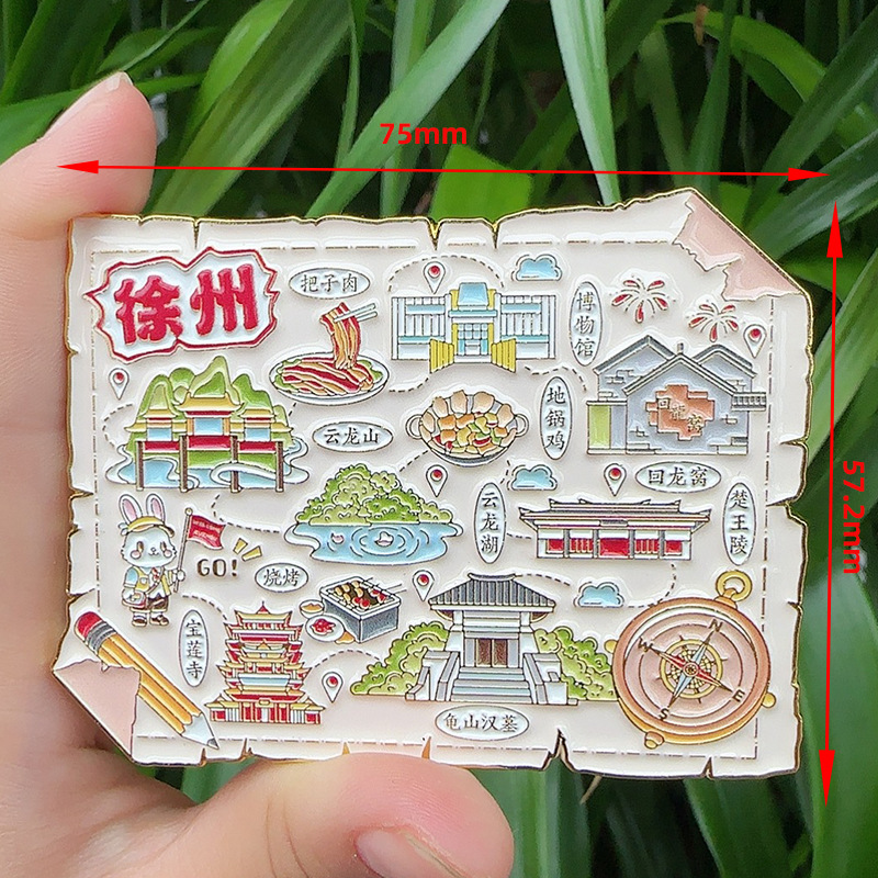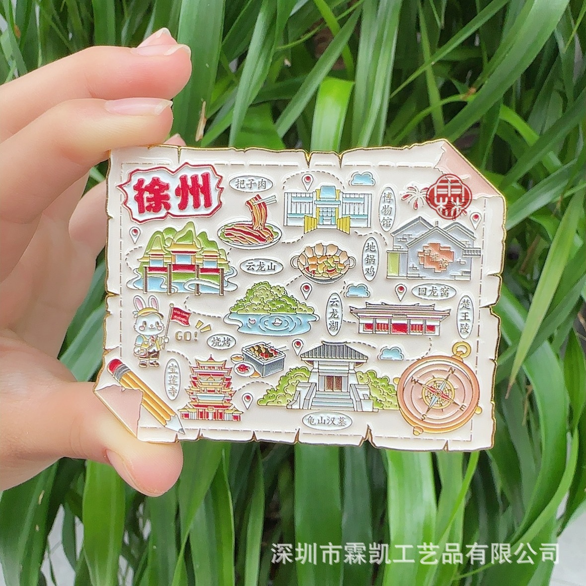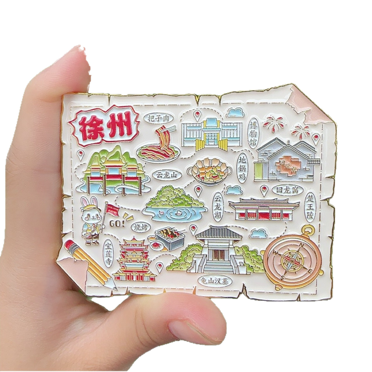 徐州小地图金属冰箱贴旅游打卡纪念品中国城市文创金属磁吸冰箱贴
