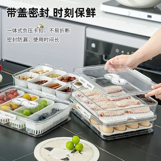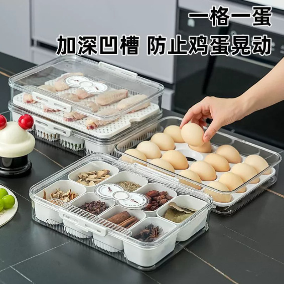 透明食品级收纳盒家用冰箱密封保鲜盒分格果蔬盒鸡蛋盒保鲜盒