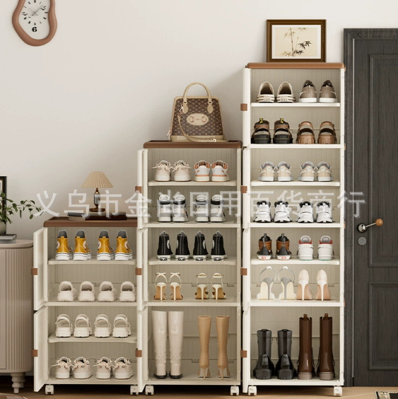 新款客厅中古风鞋柜客厅大容量简易鞋架带隔板储物柜鞋子整理架