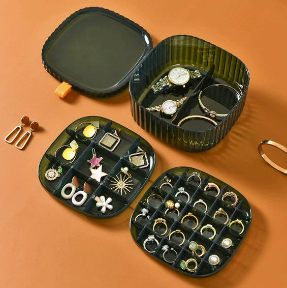 高颜值透明首饰收纳盒耳钉耳环项链手镯戒指多风格子多层便携盒子