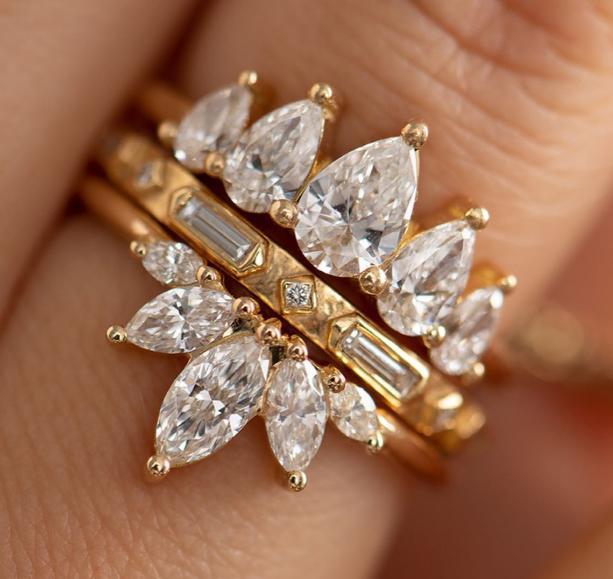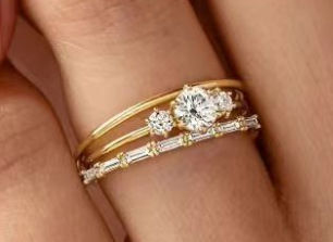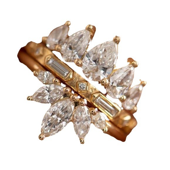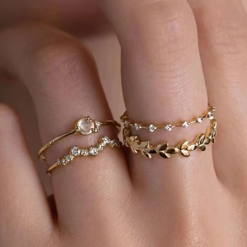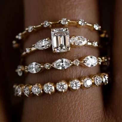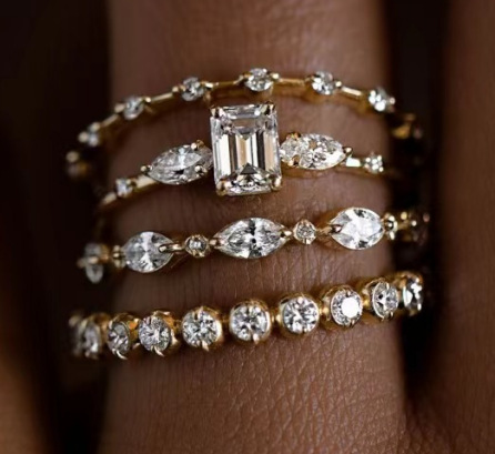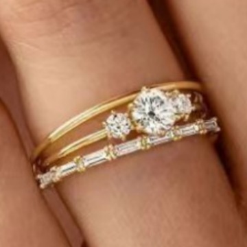 时尚一款两戴气质简约浪漫铜镶锆石奢华戒指女两件套组合叠戴戒指