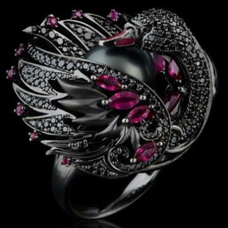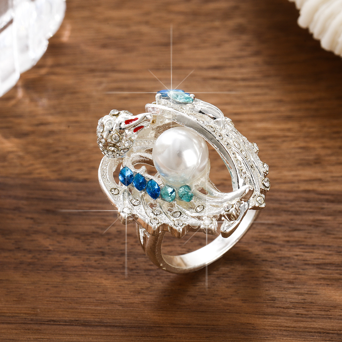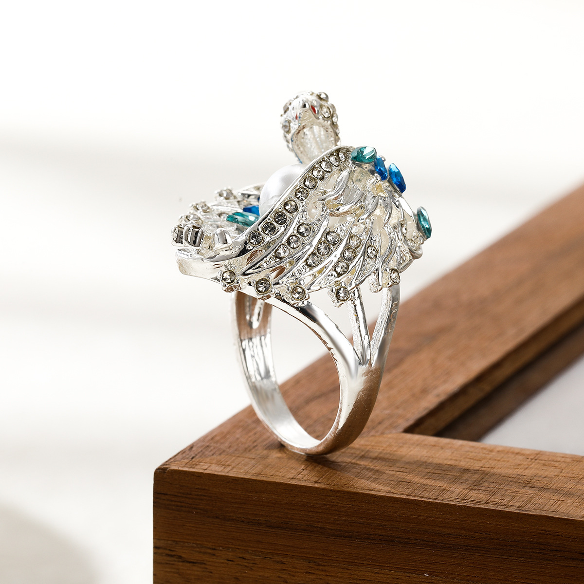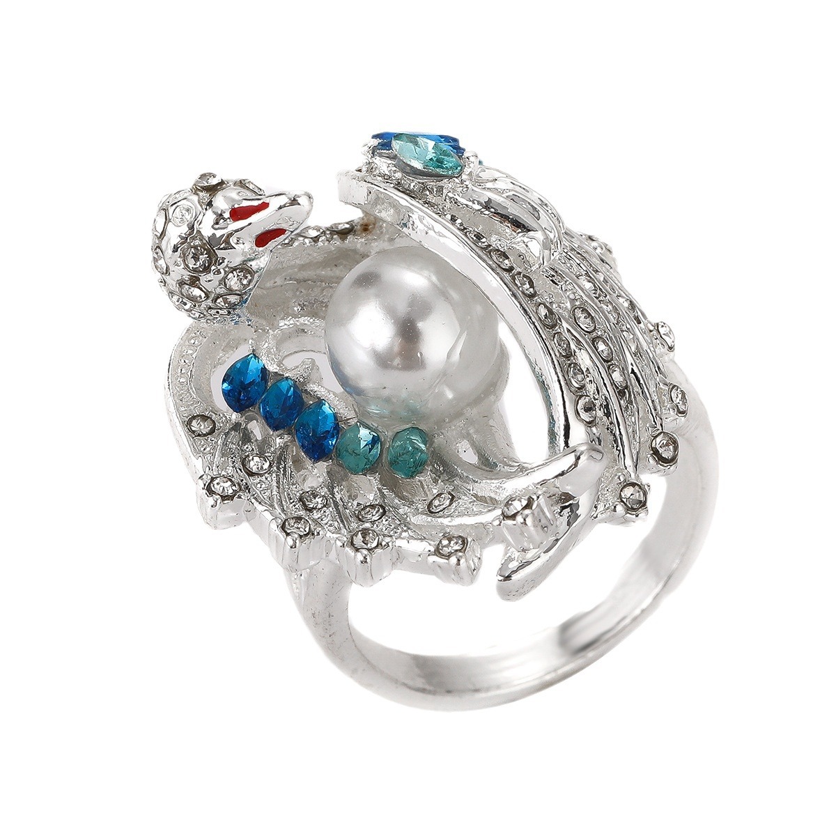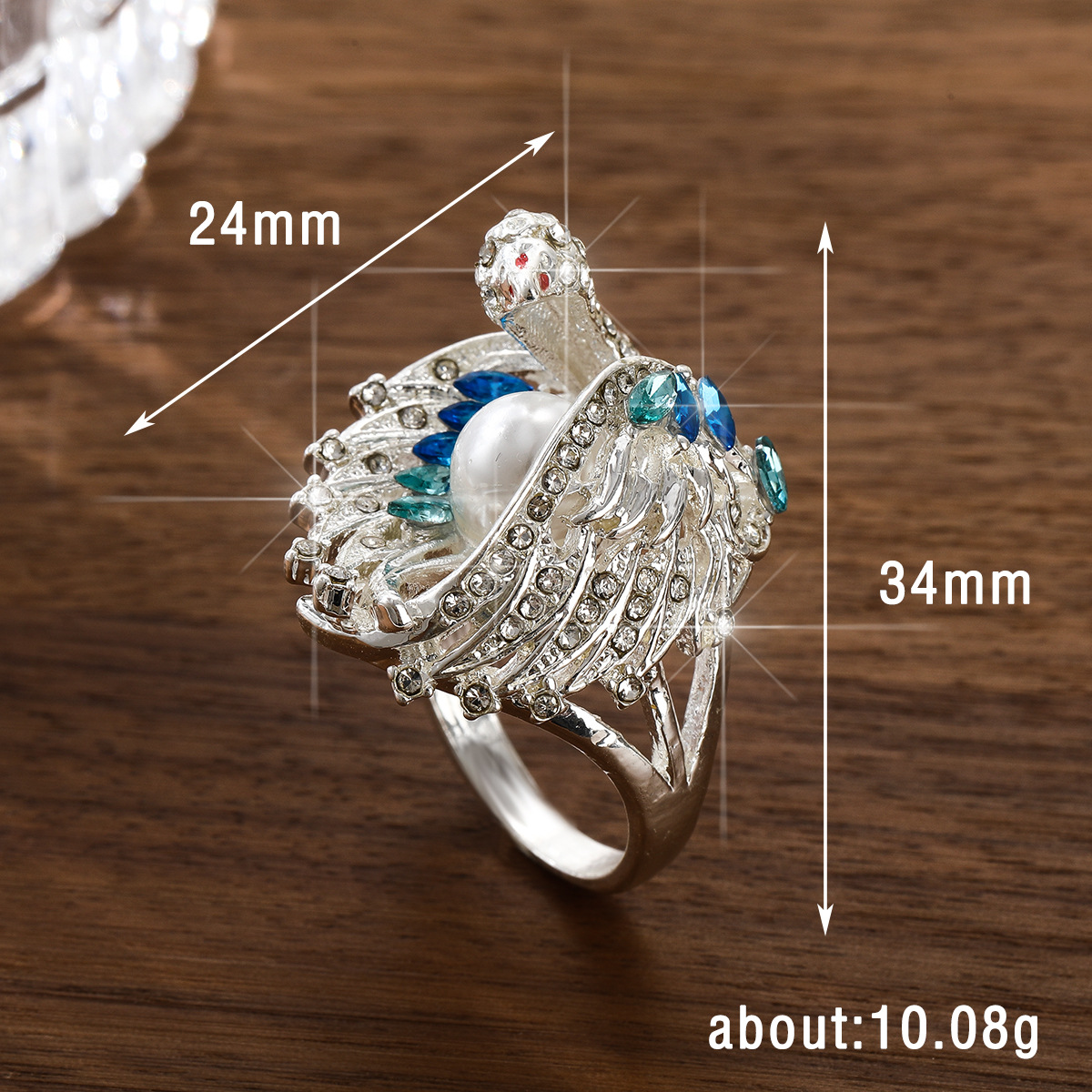 威娅wish跨境电商新款时尚女性白天鹅珍珠复古经典戒指欧美手饰品