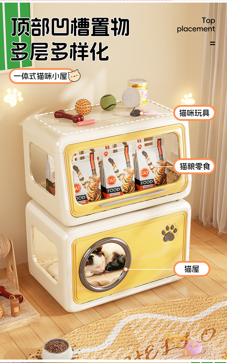 塑料猫笼室内猫咪专用猫舍双层宠物房子小型犬四季通用半封闭窝