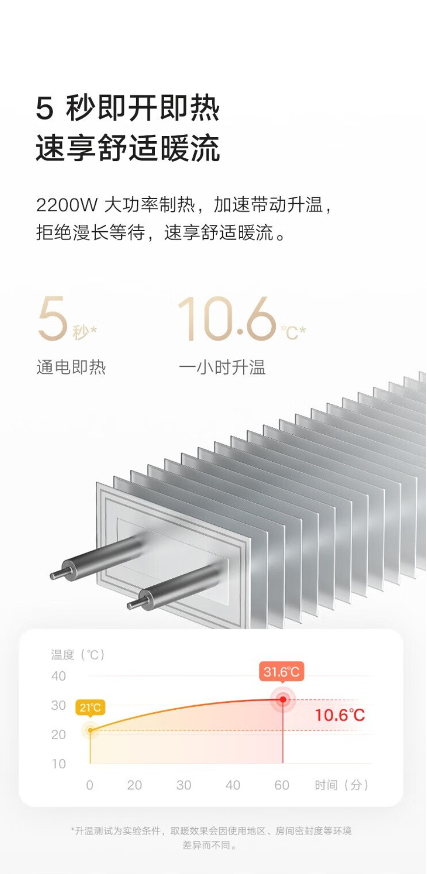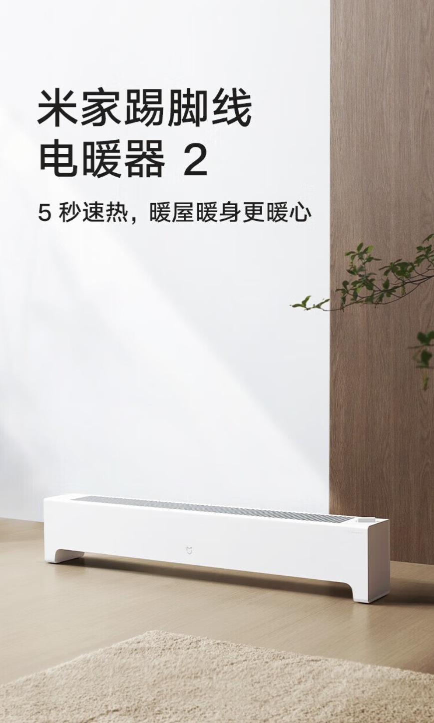 小米米家踢脚线电暖器2两档调温5秒速热全屋对流IPX4防水热暖风机
