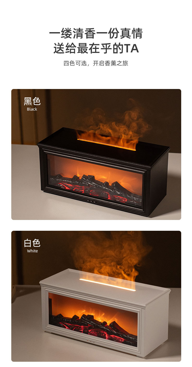 跨境新款复古壁炉静音香薰机3D仿真壁炉火焰加湿器家用桌面加湿器