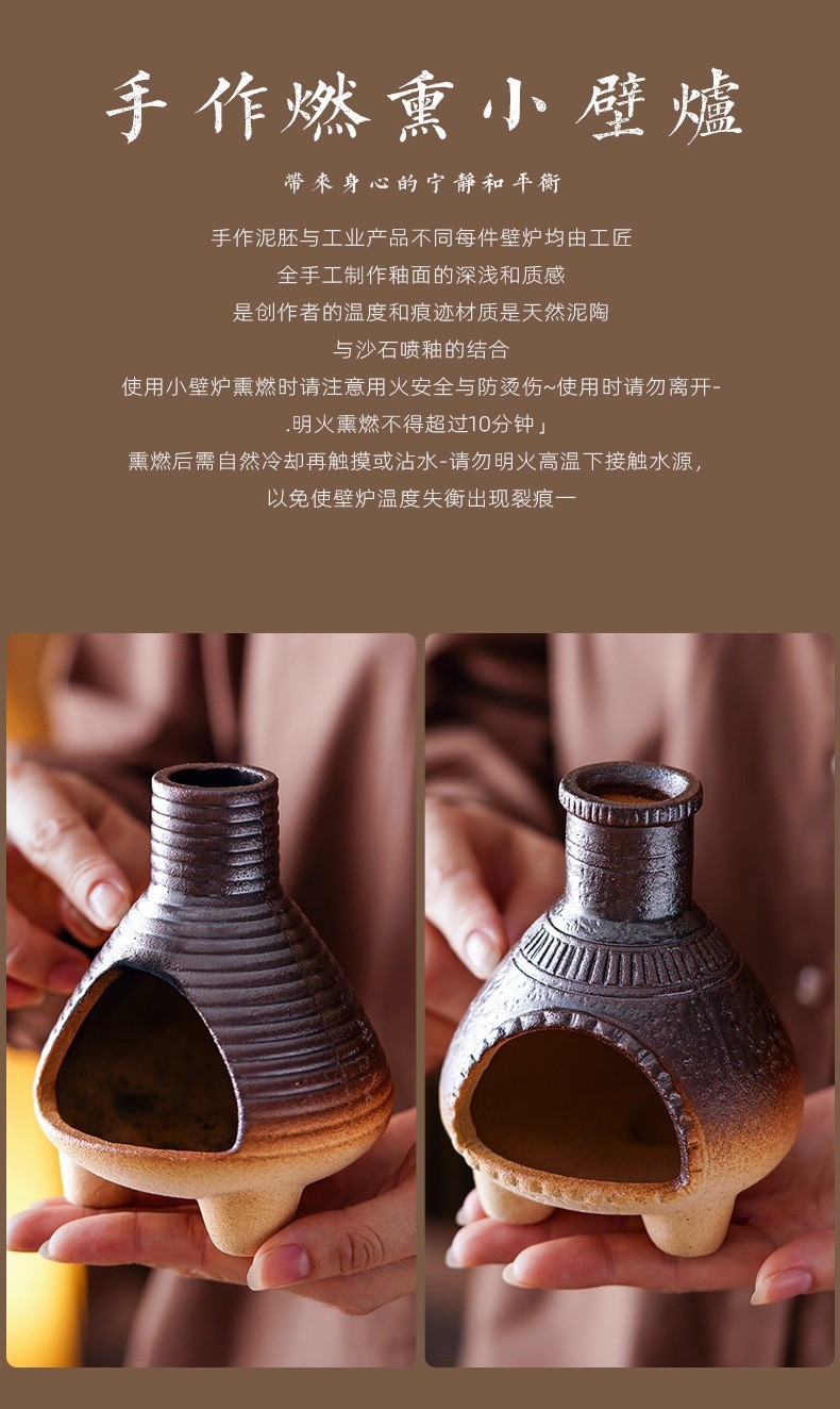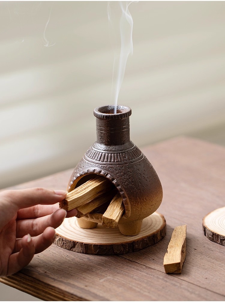 跨境陶瓷香薰炉耐明火燃烧圣木鼠尾草雪松氛围小壁炉秘鲁木燃烧炉