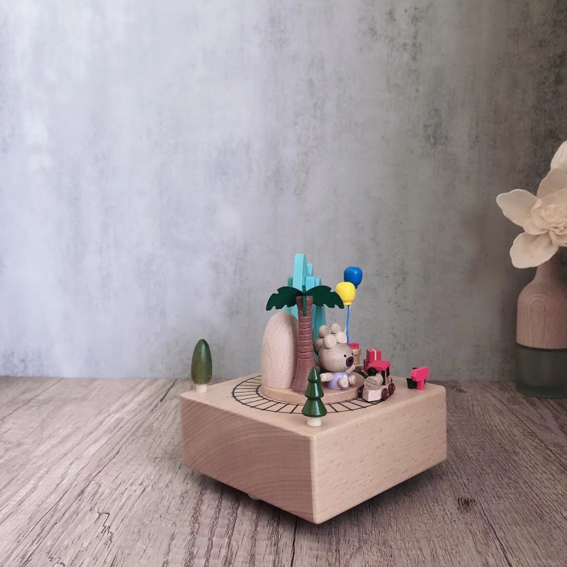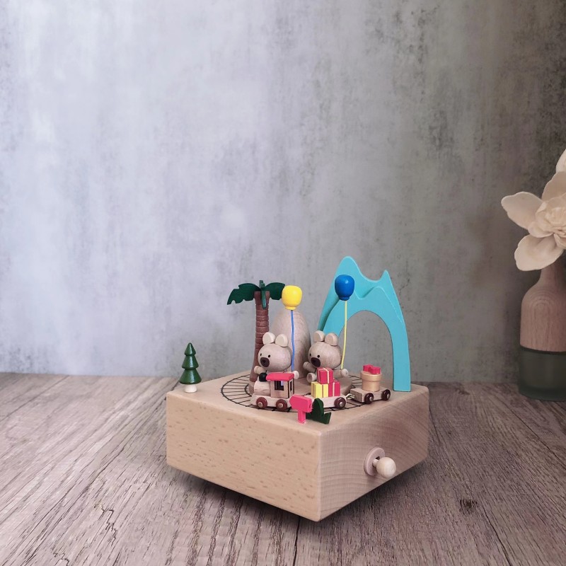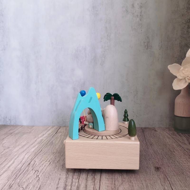 小熊火车木质八音盒全实木微景观音乐盒音乐铃榉木材质创意礼物