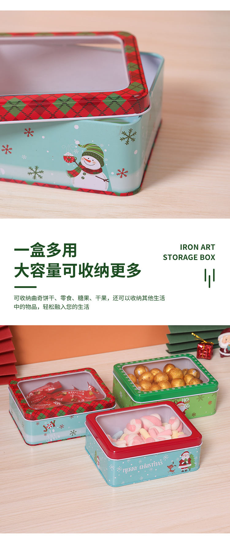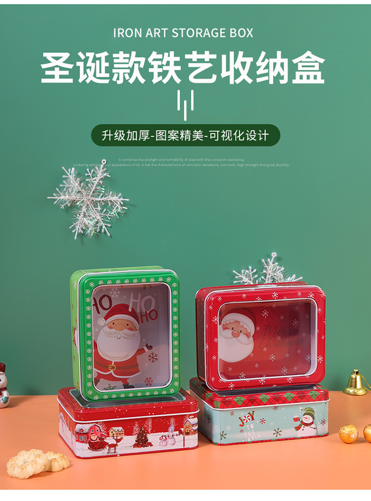 新款圣诞马口铁收纳盒精美带盖饼干糖果零食巧克力礼品包装盒批发