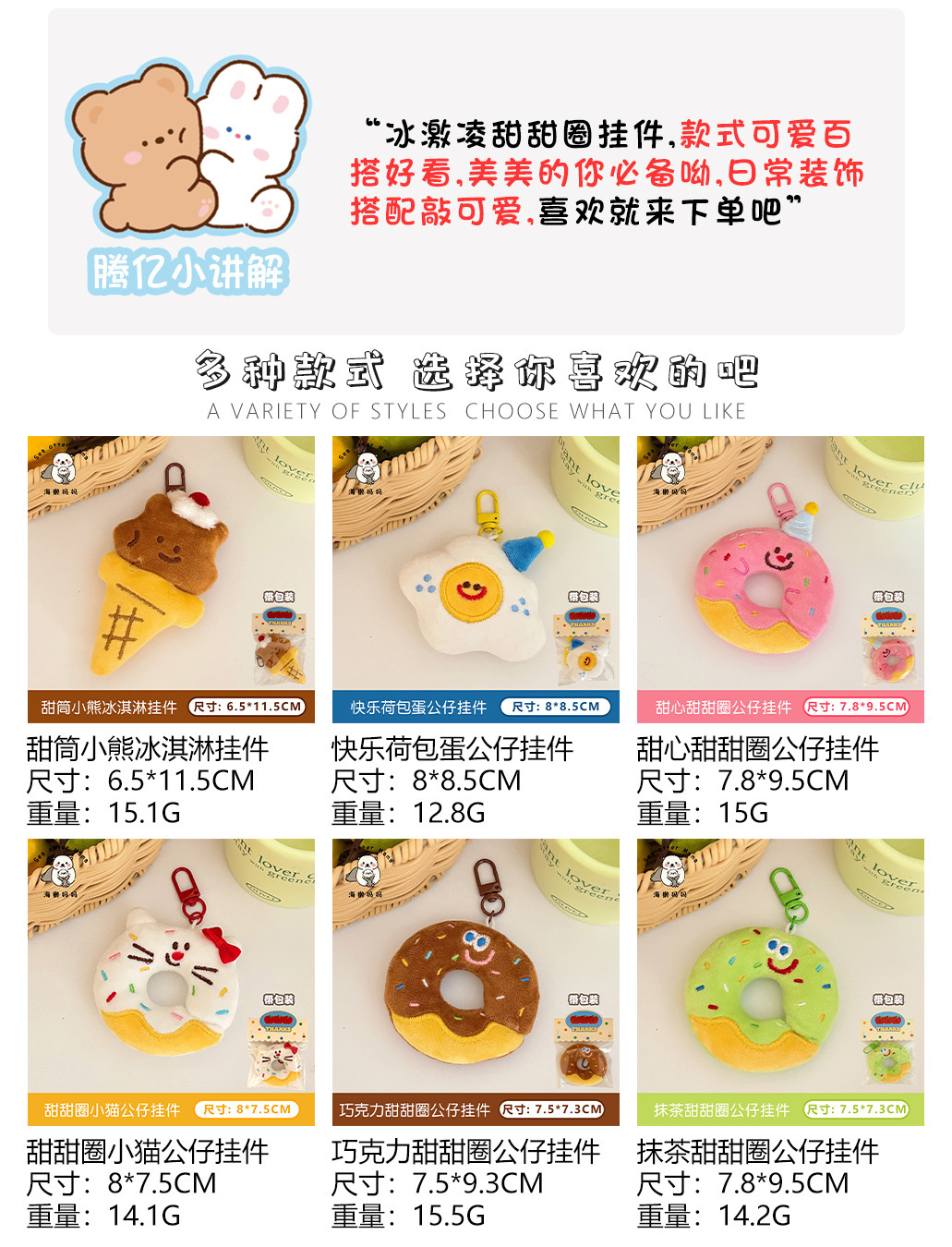 腾亿原创卡通甜品公仔挂件少女心百搭钥匙扣背包装饰玩偶挂坠批发
