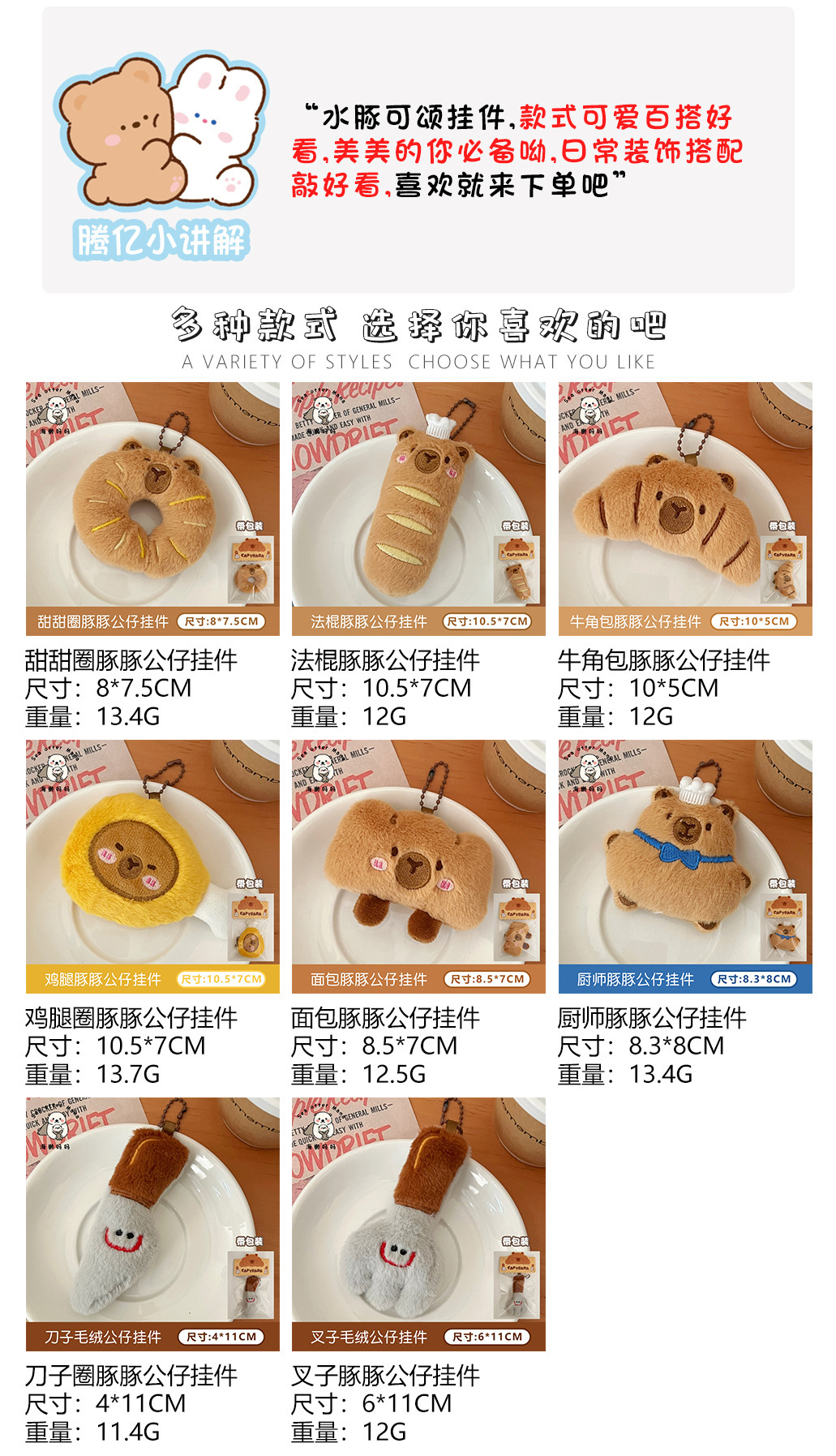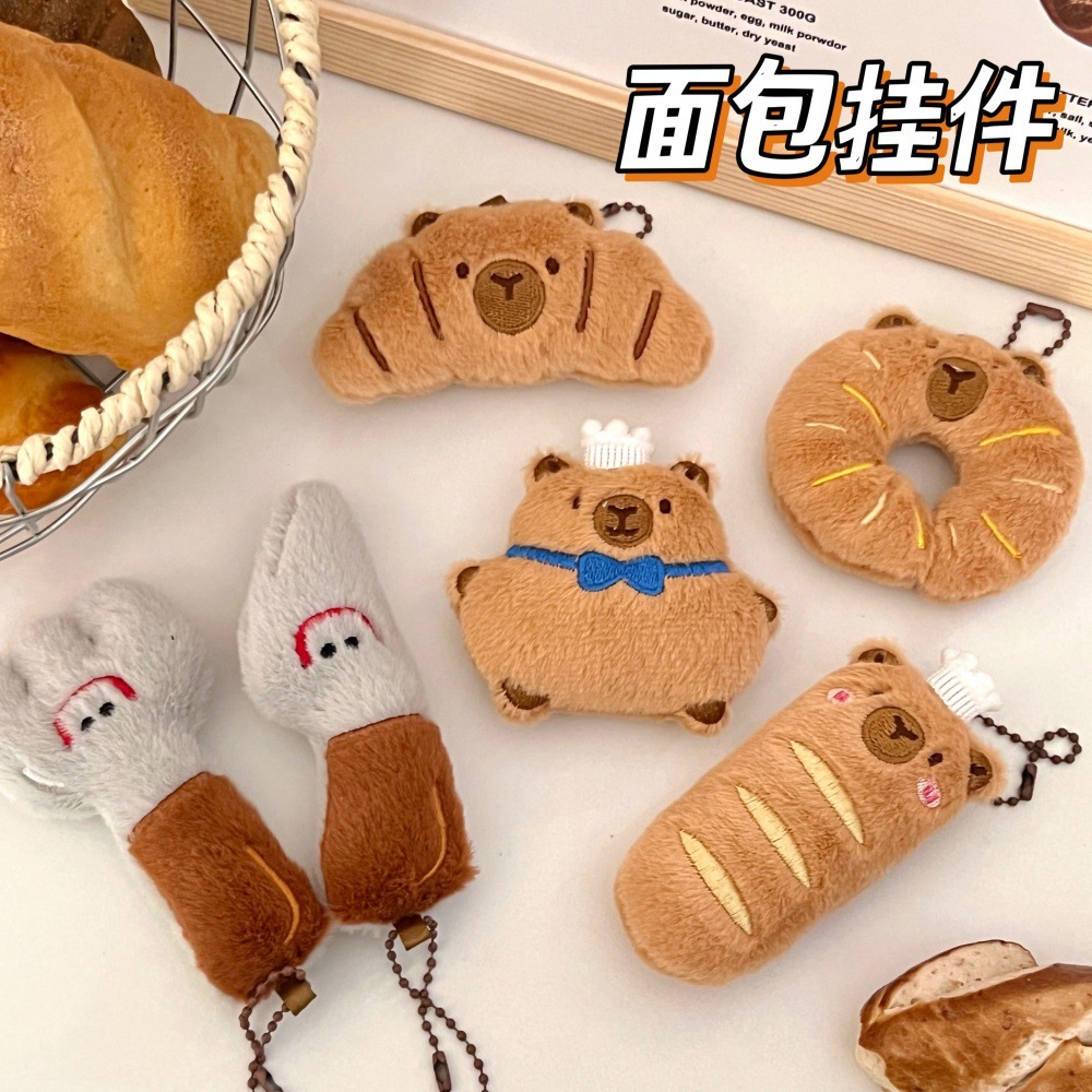 创意美食豚豚挂件少女卡通玩偶挂坠毛绒食玩公仔面包水豚装饰配饰