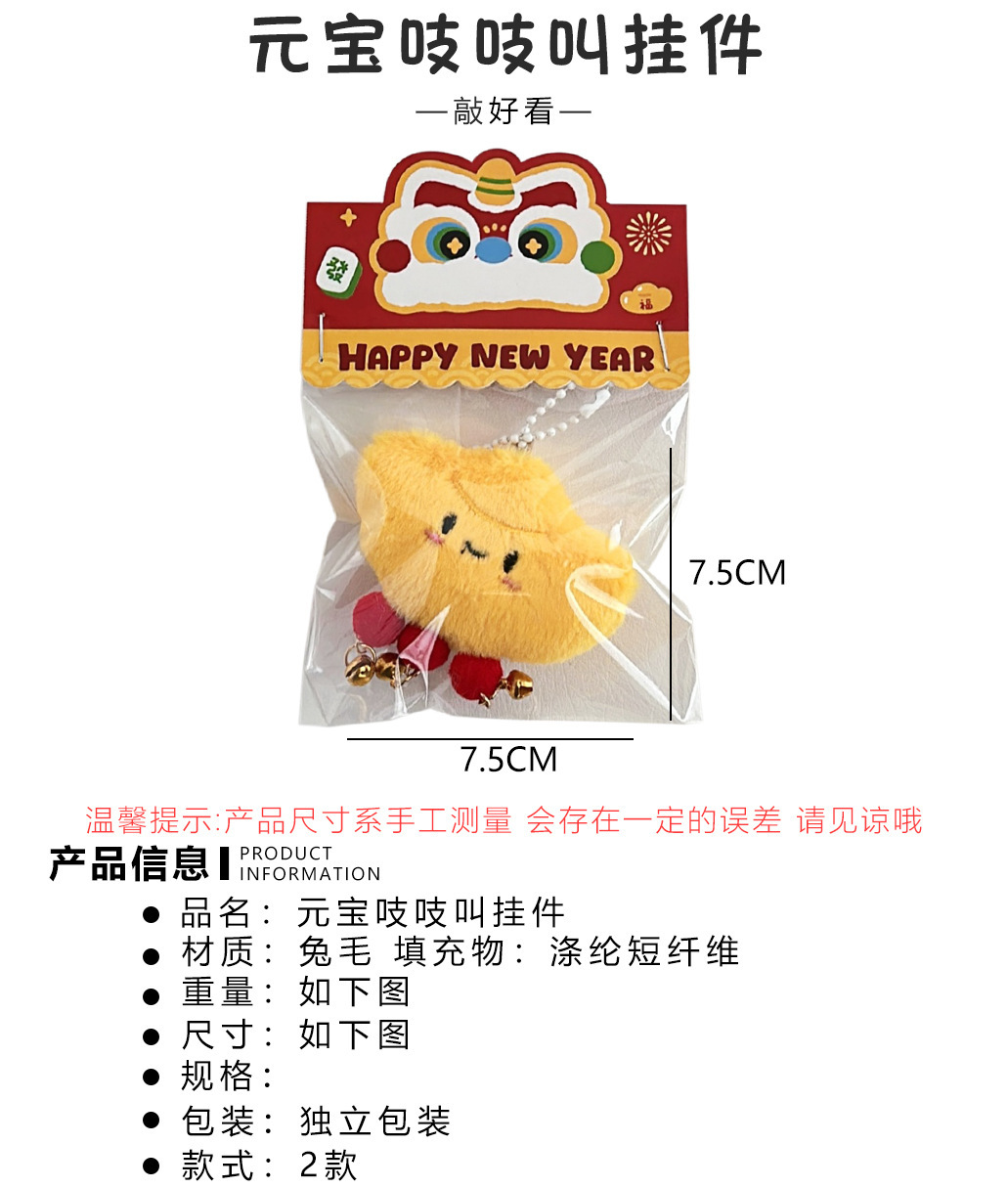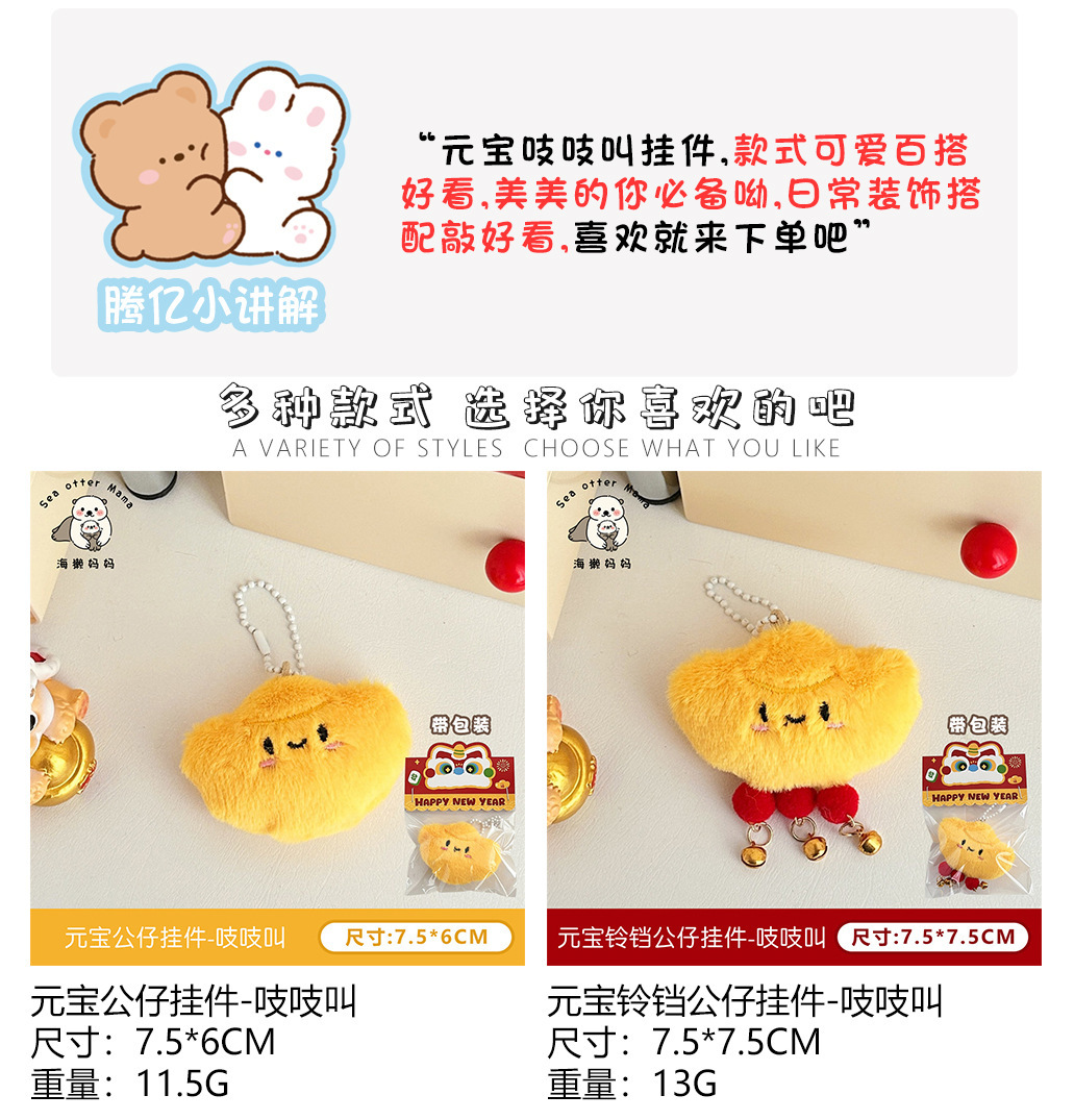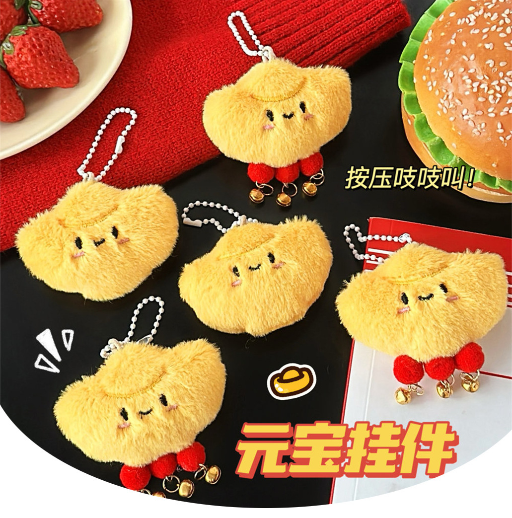 可爱卡通毛绒元宝公仔挂件少女百搭背包挂坠玩偶吱吱叫钥匙扣挂饰