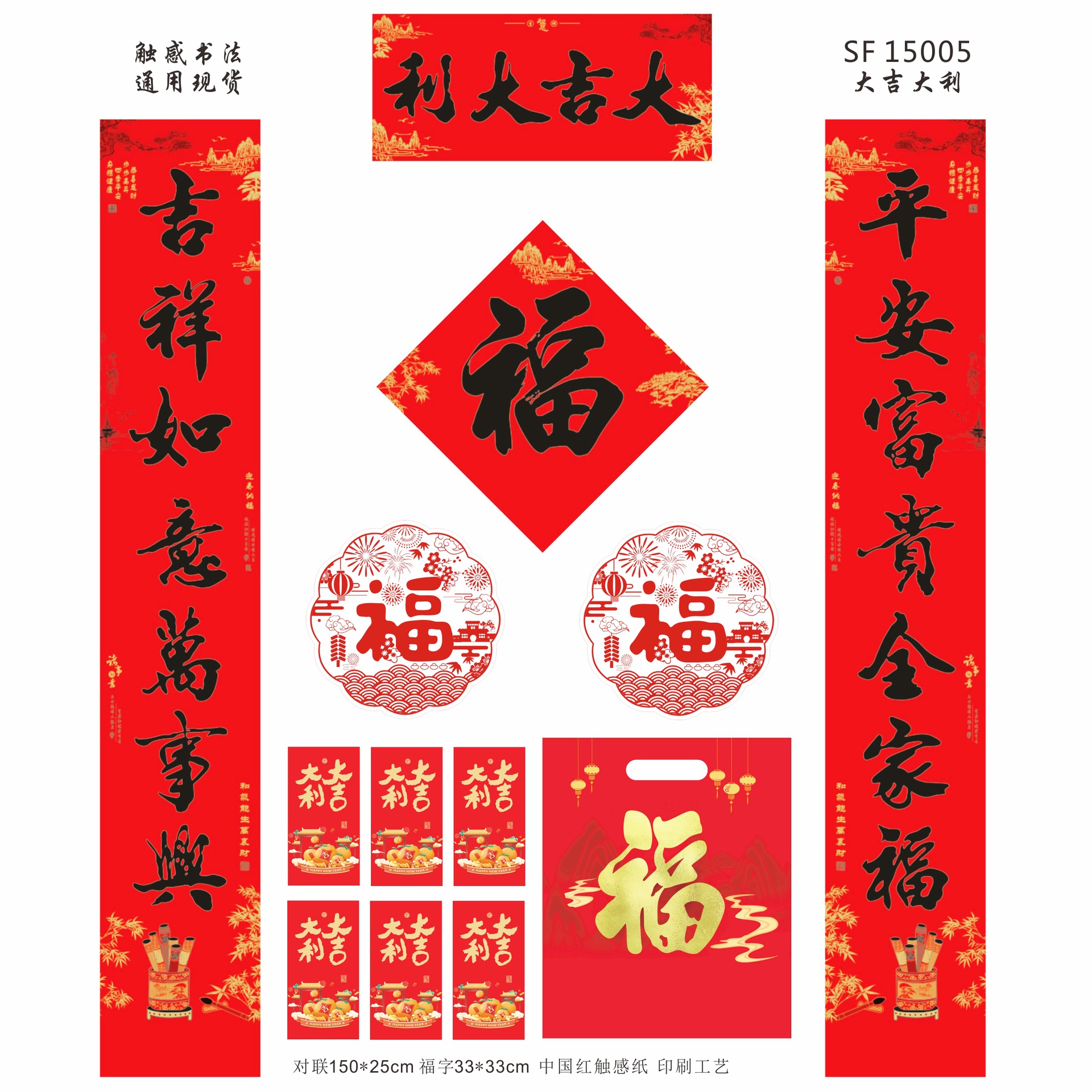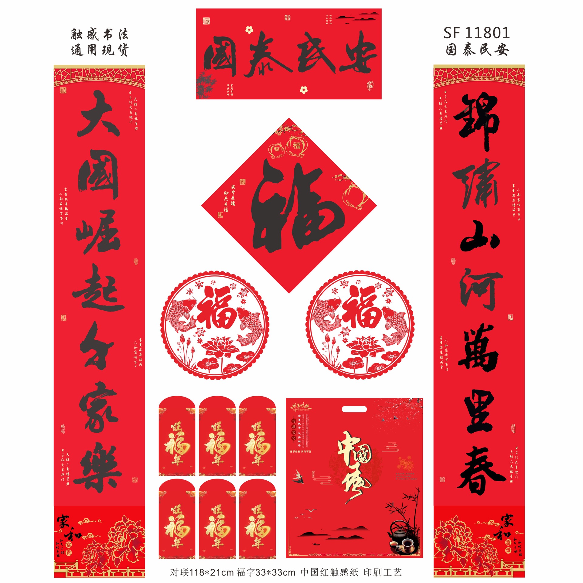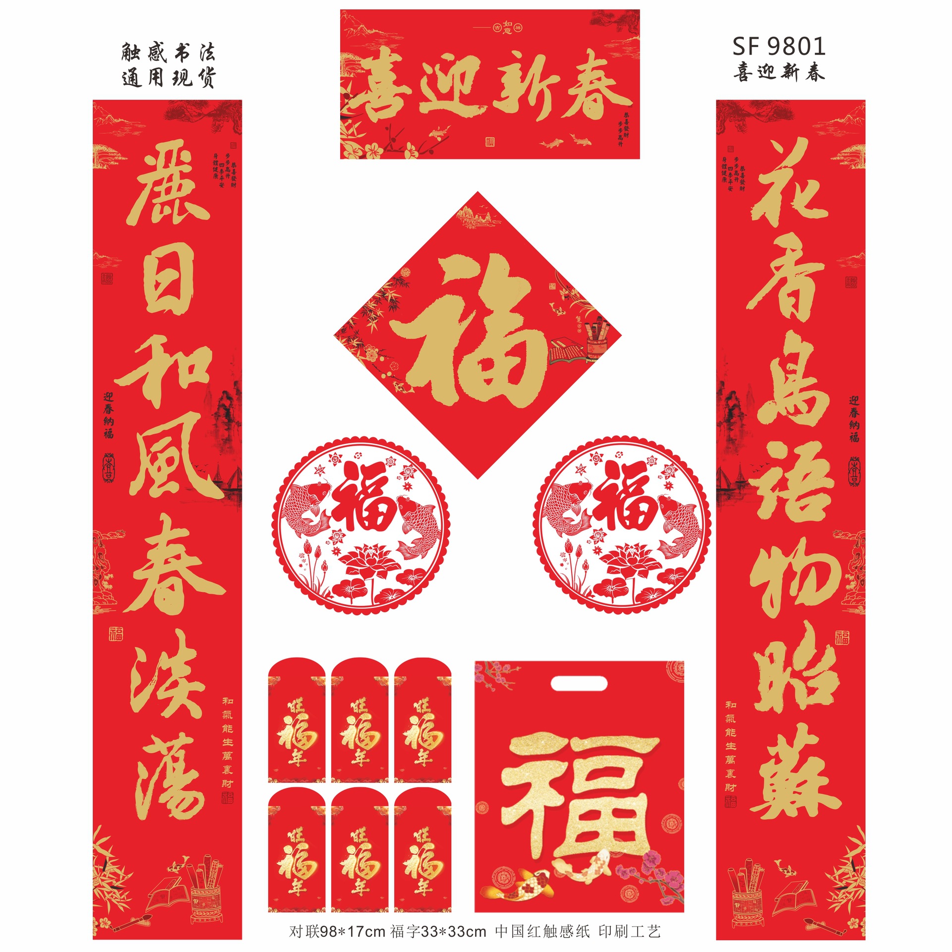 马年触感书法防晒春联中国红触感纸书法对联大礼包现货批发加广告