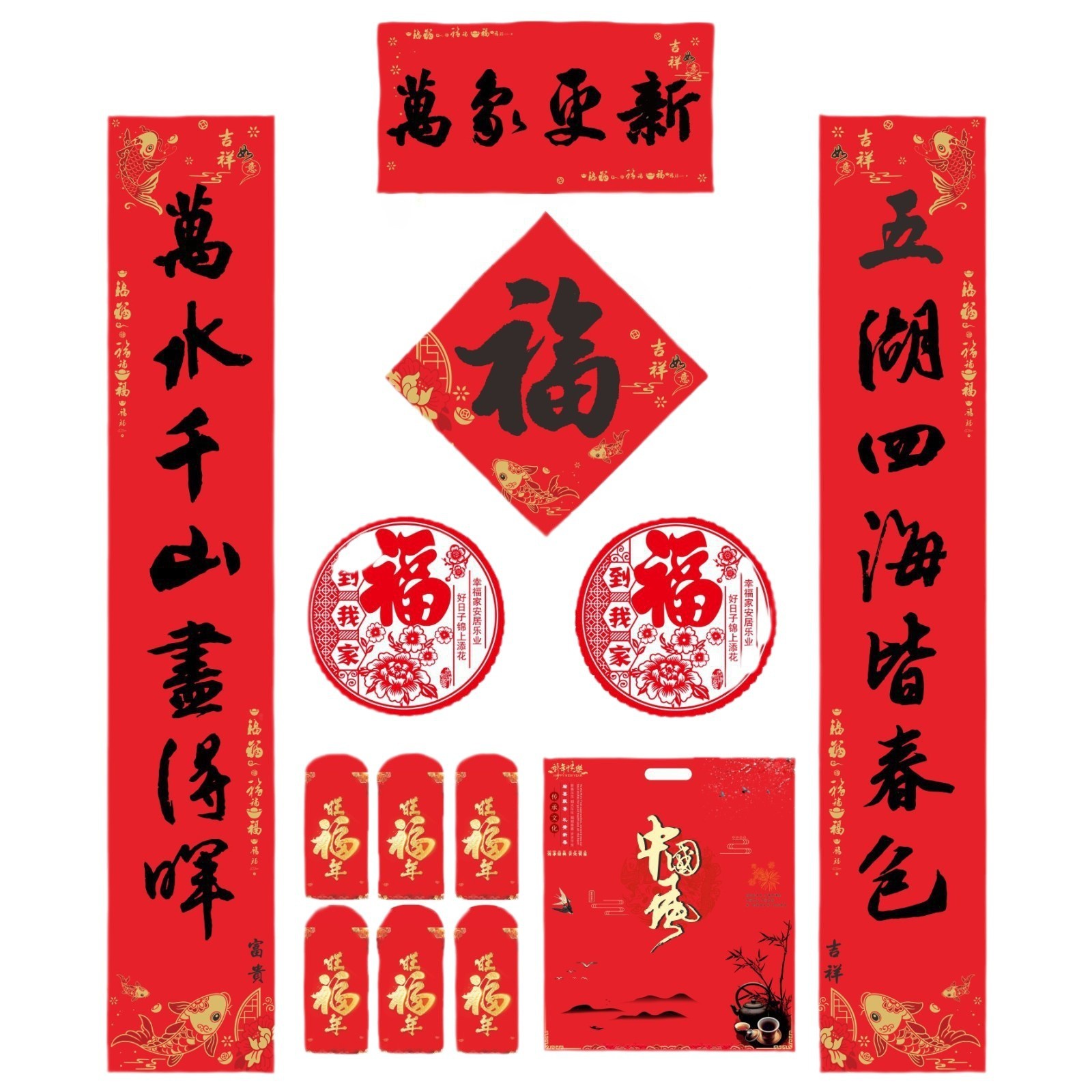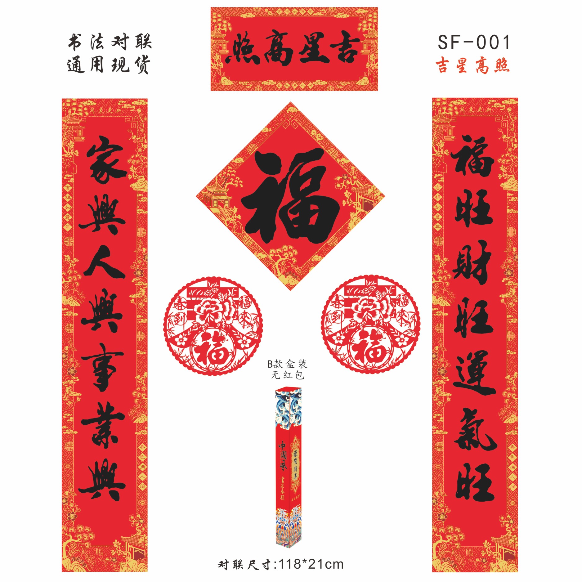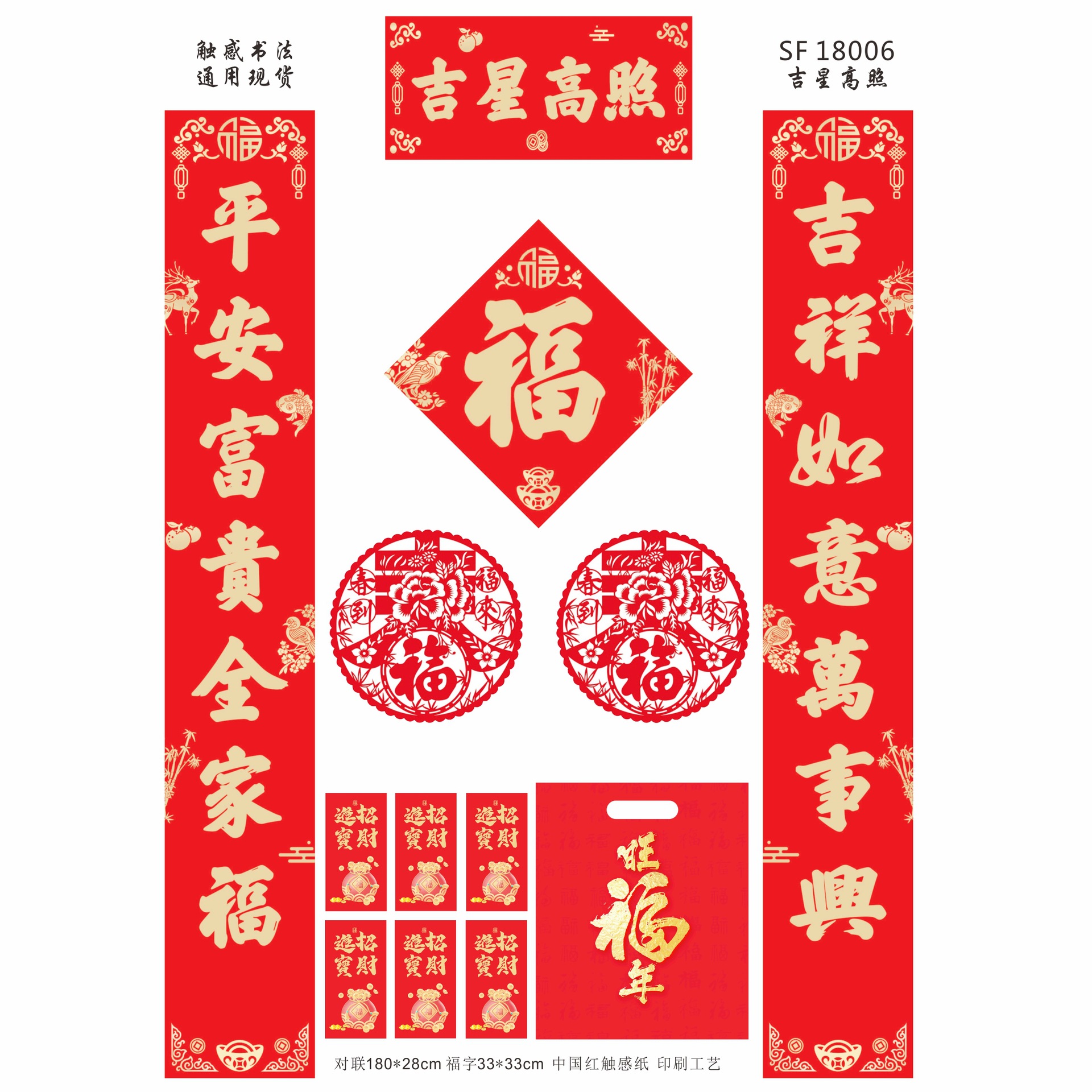 马年触感书法防晒春联中国红触感纸书法对联大礼包现货批发加广告