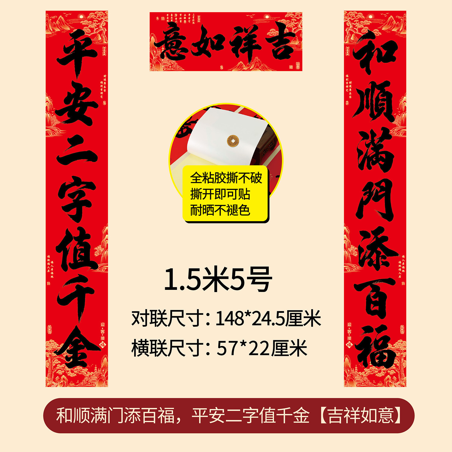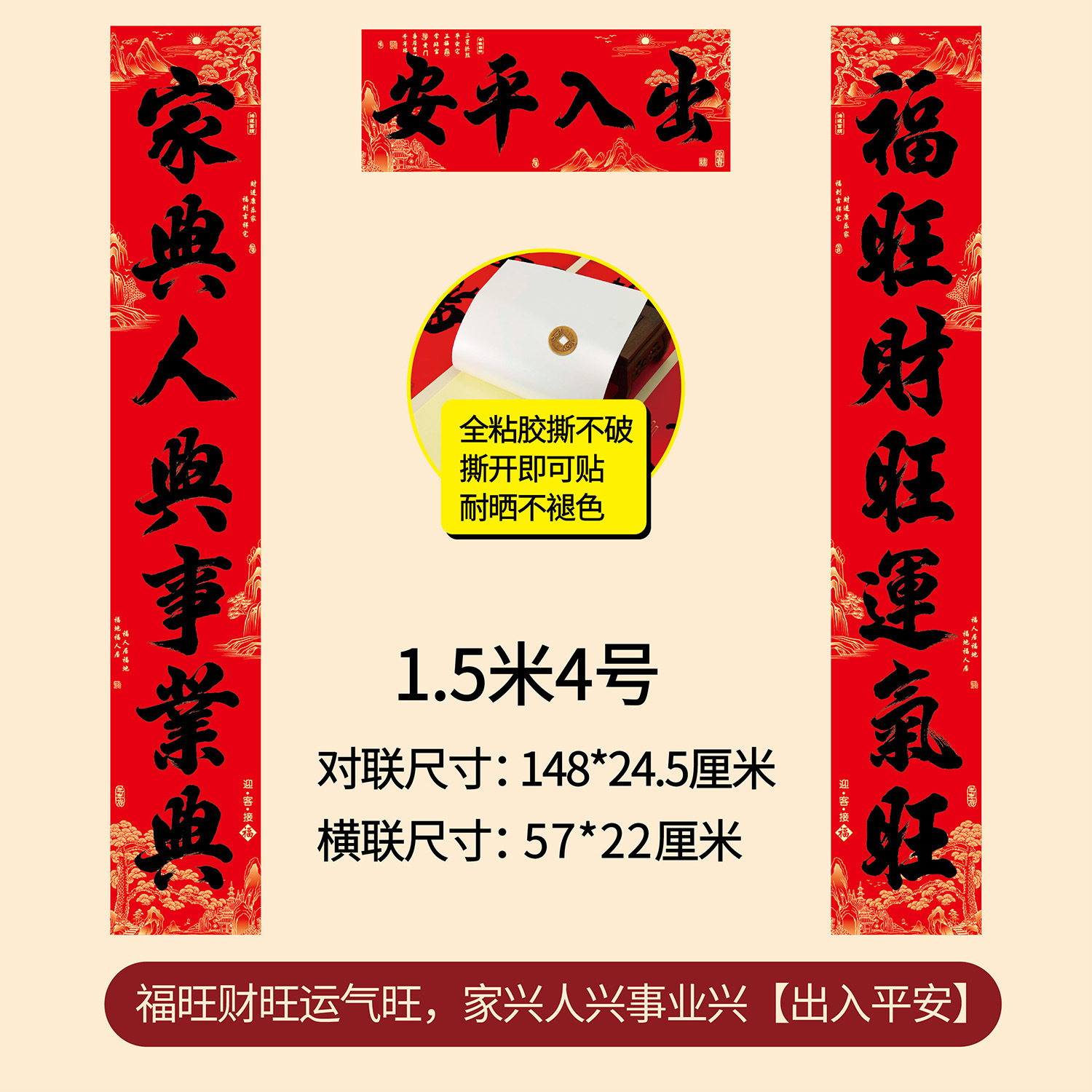 新款书法对联2026马年全背胶防水防晒不留痕春联过年春节新年装饰