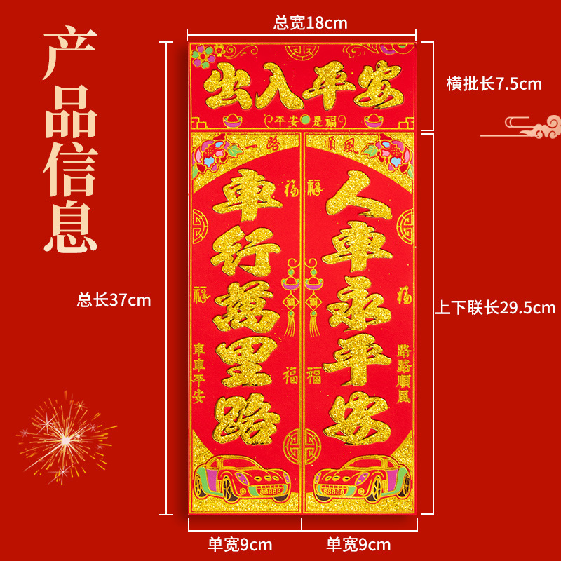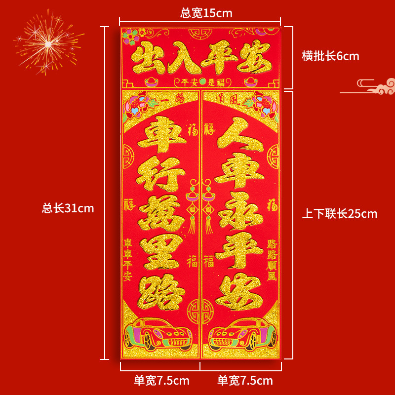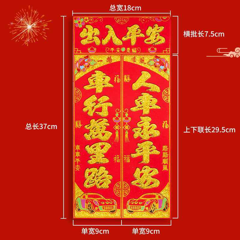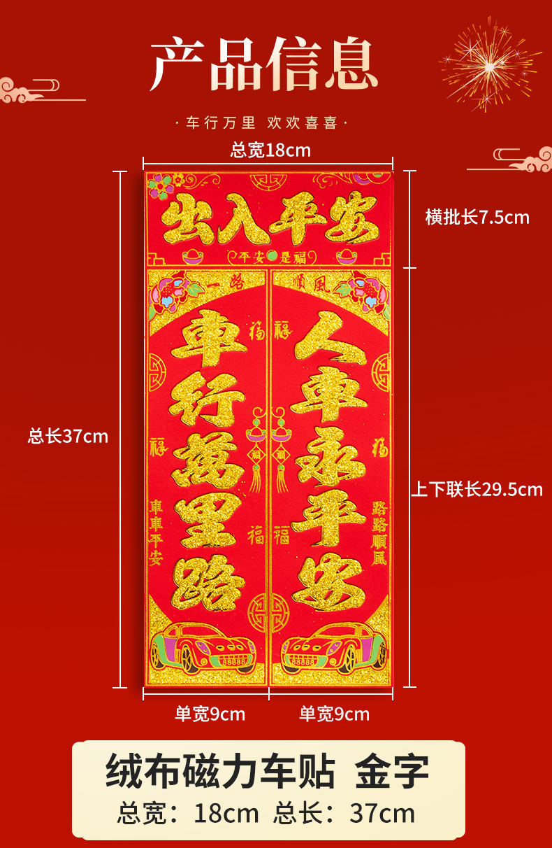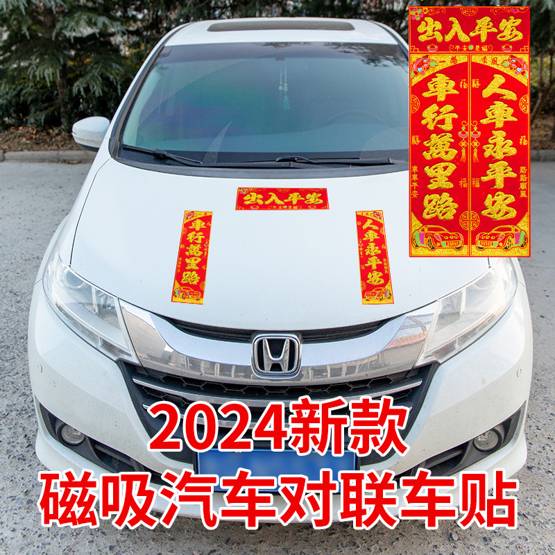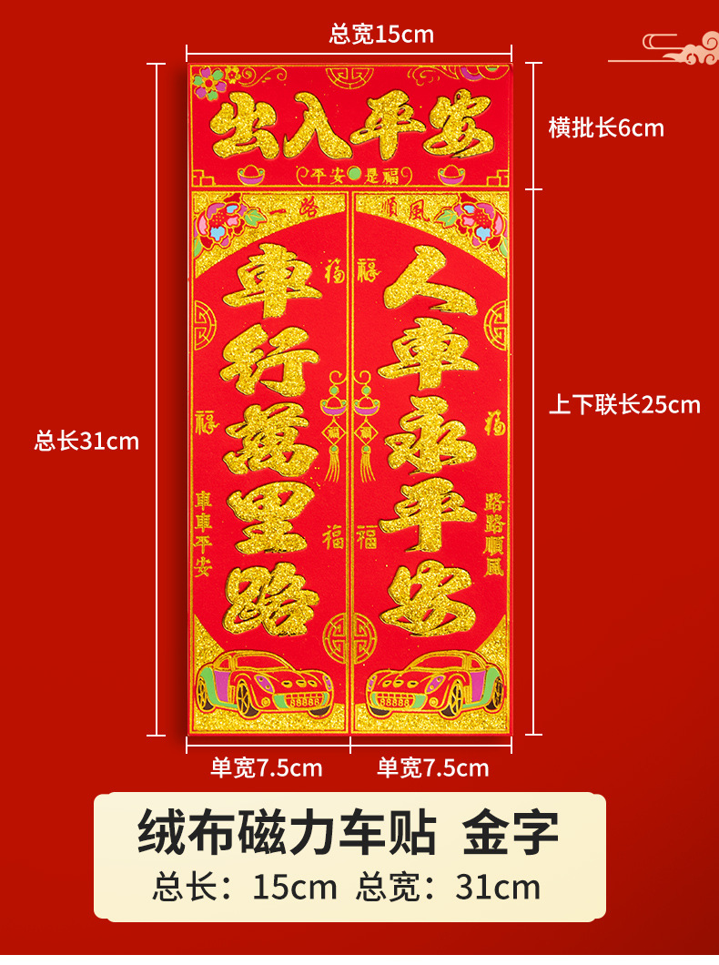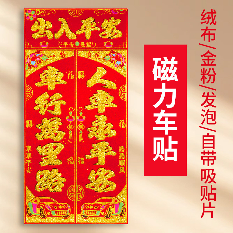 车用磁吸烫金对联批发绒布春联平安车贴磁性福字车贴新年批发大号