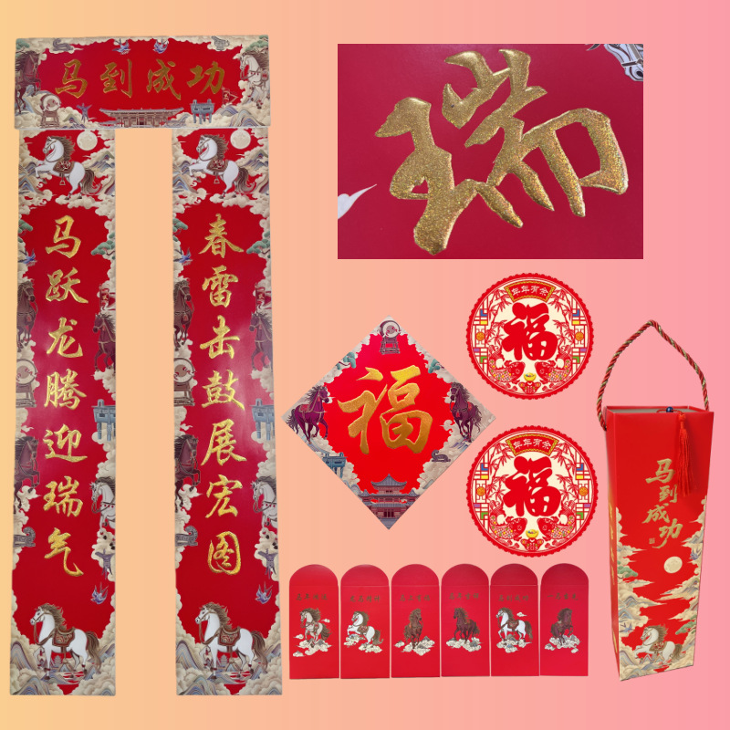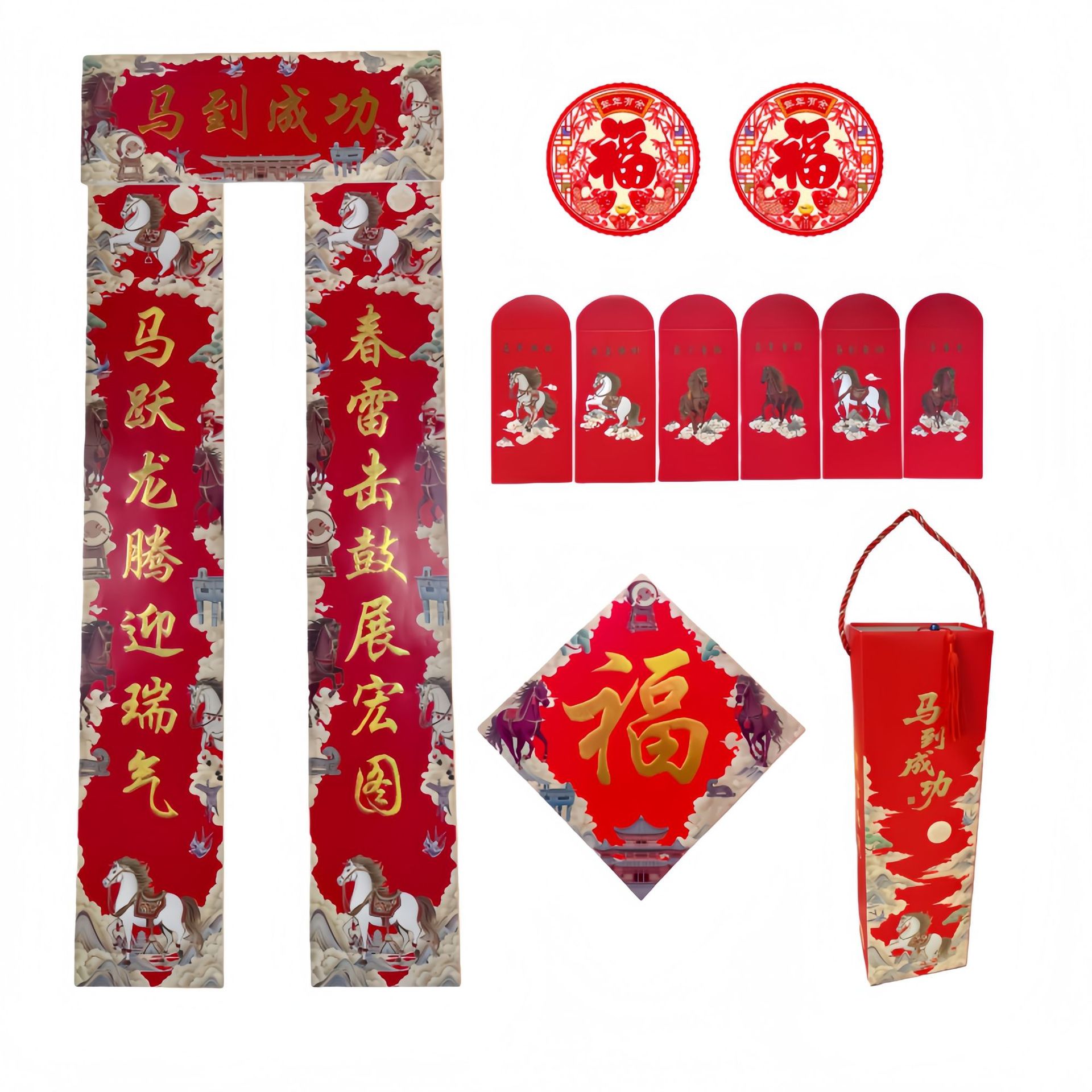 2026年春联大礼包马年门贴个性创意春节对联红包新年福字高档礼盒