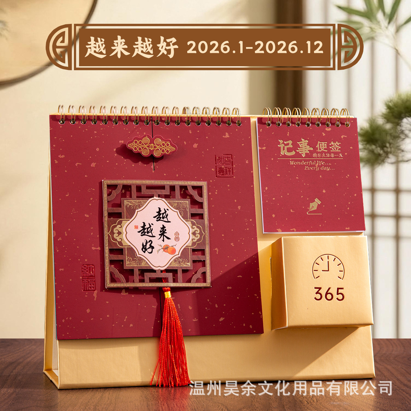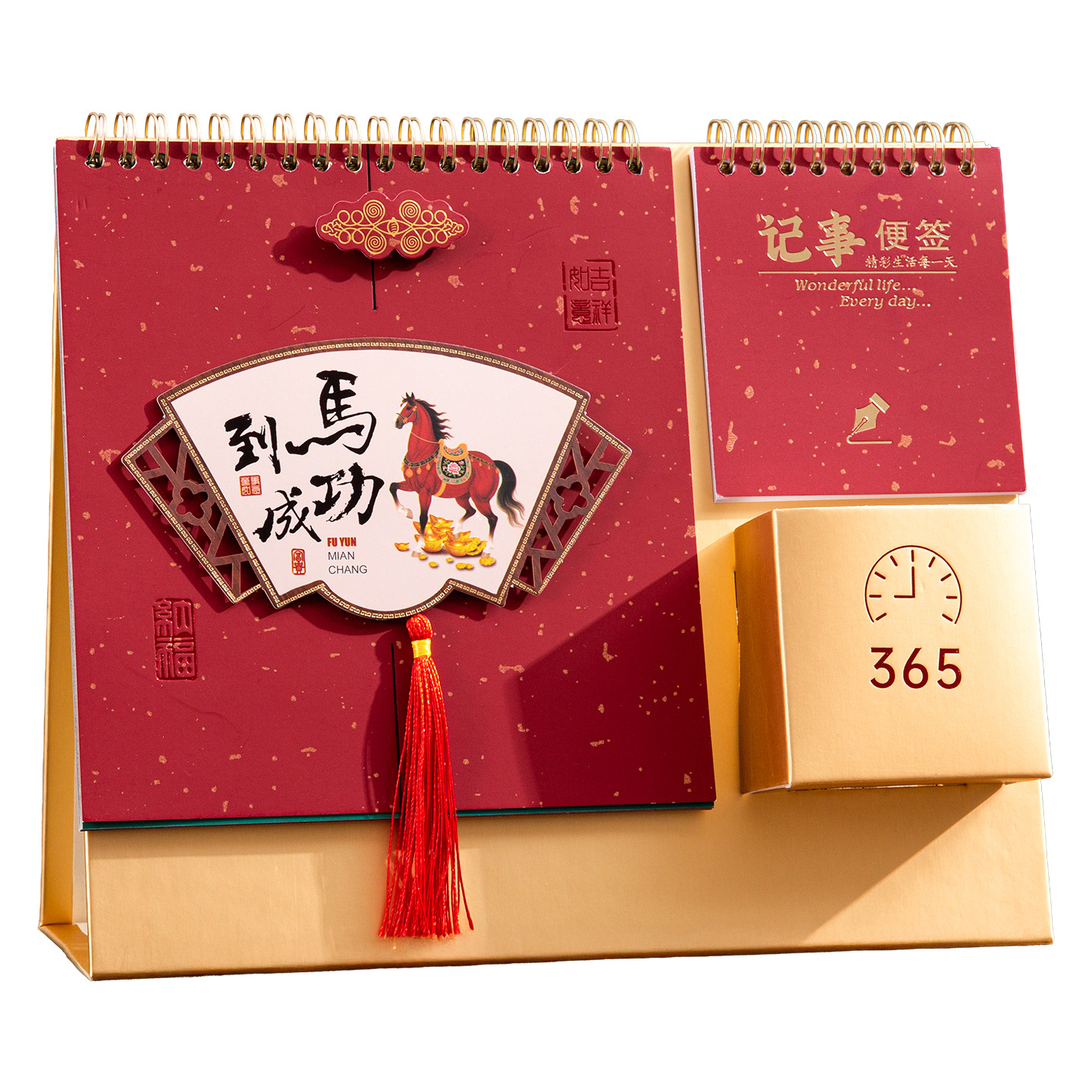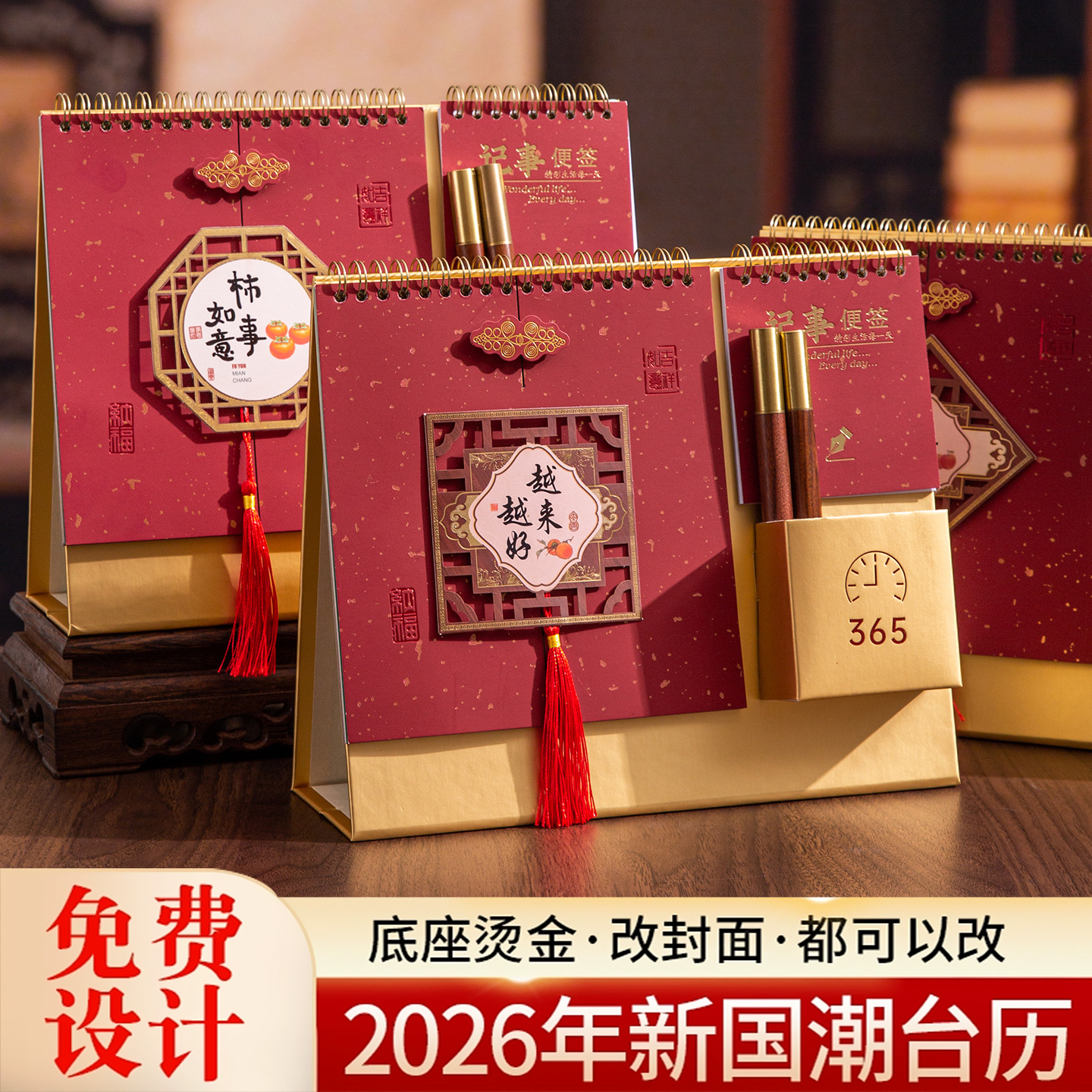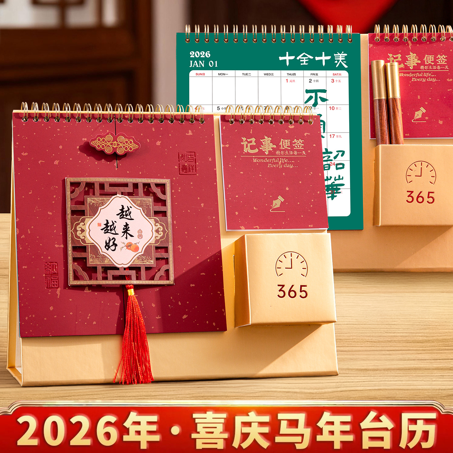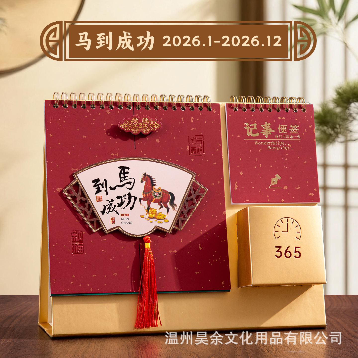 2026马年新款台历定制商务办公流苏纸质月历中国风桌面摆件logo订