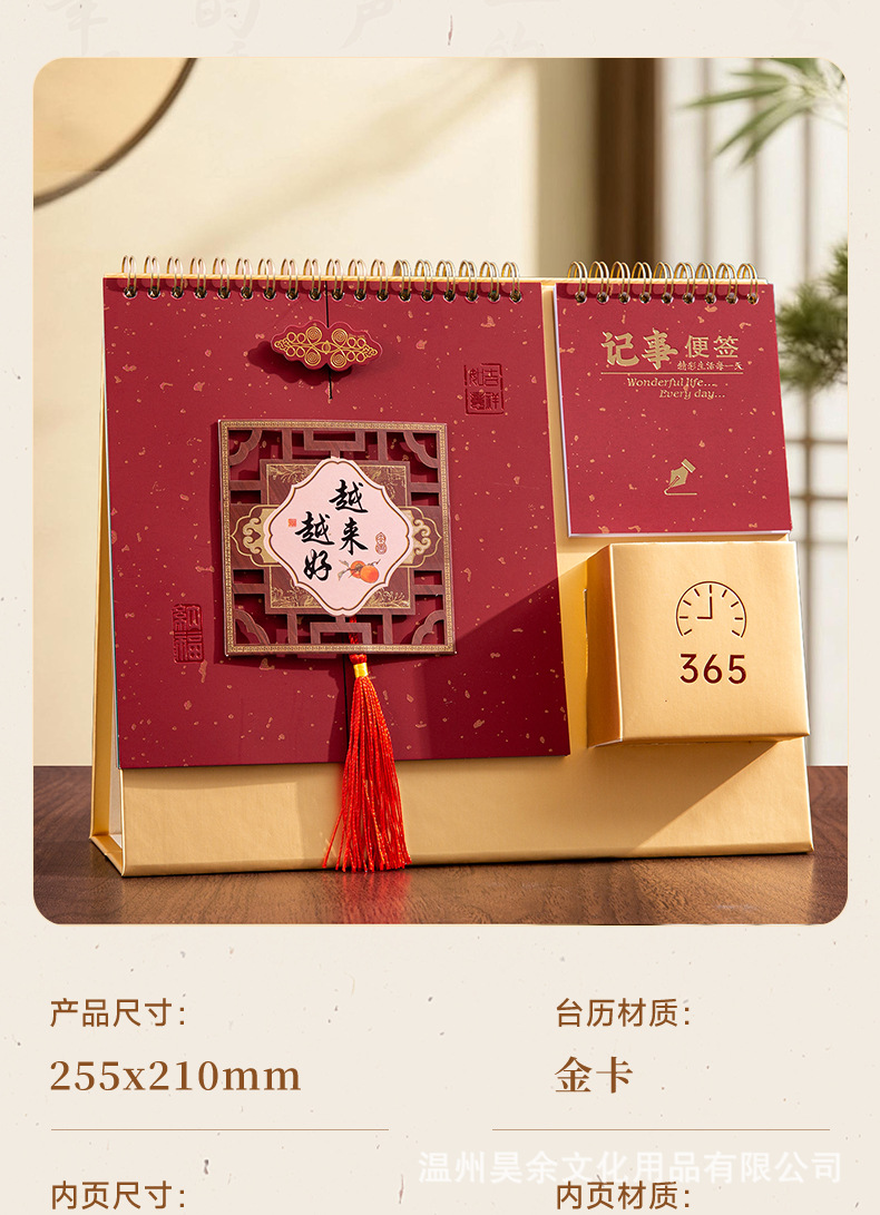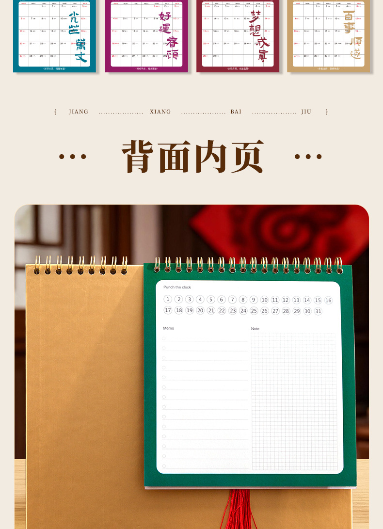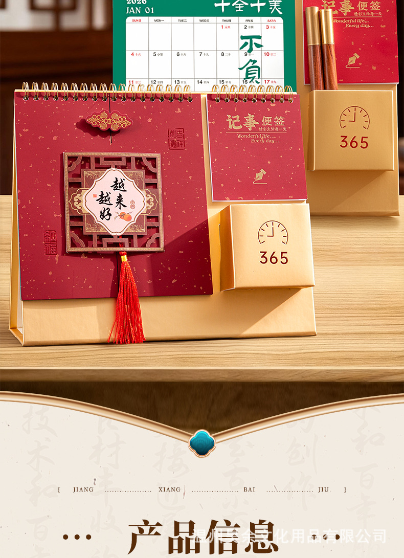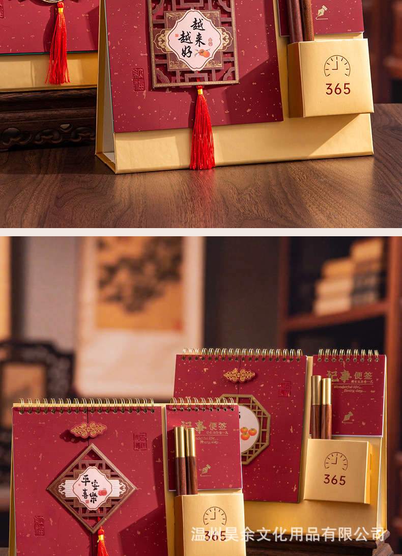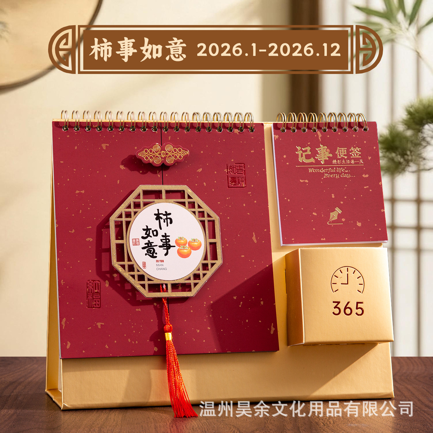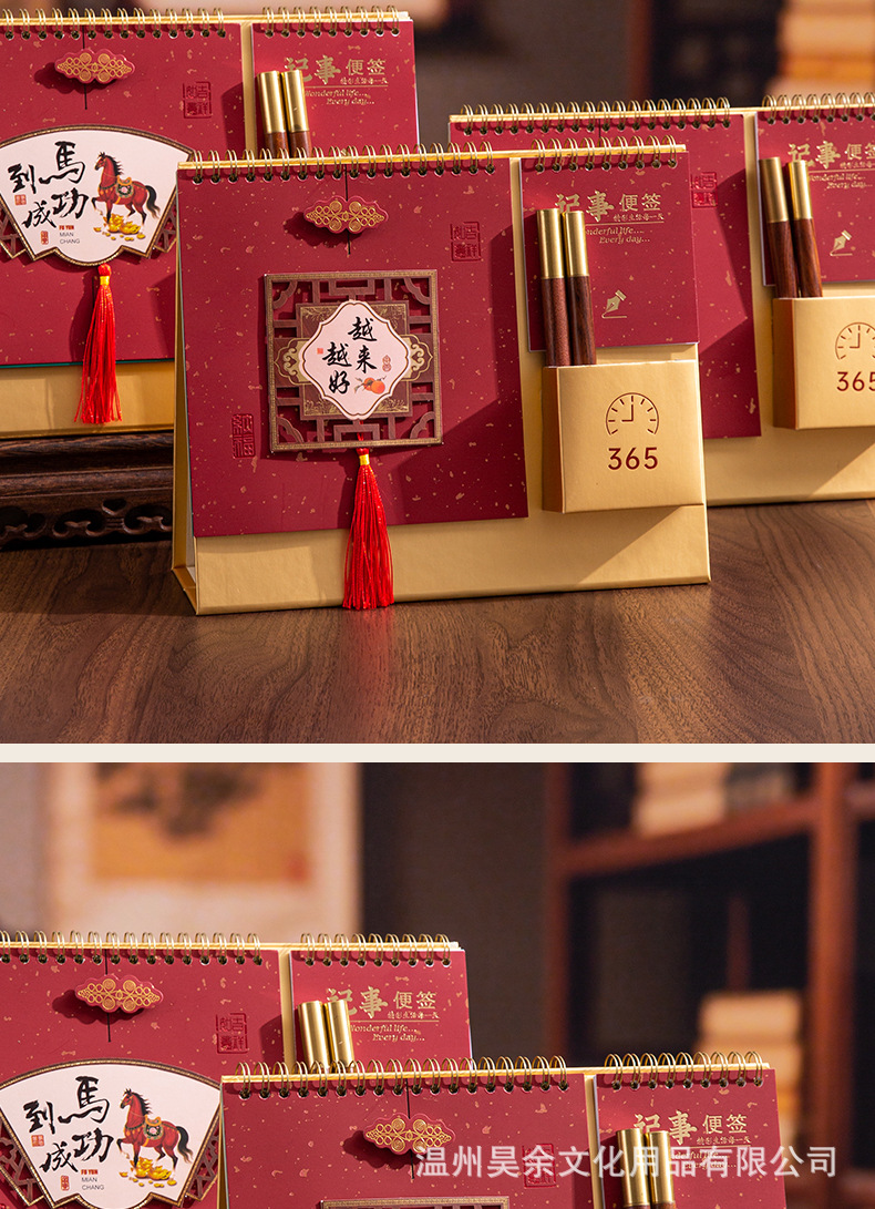2026马年新款台历定制商务办公流苏纸质月历中国风桌面摆件logo订