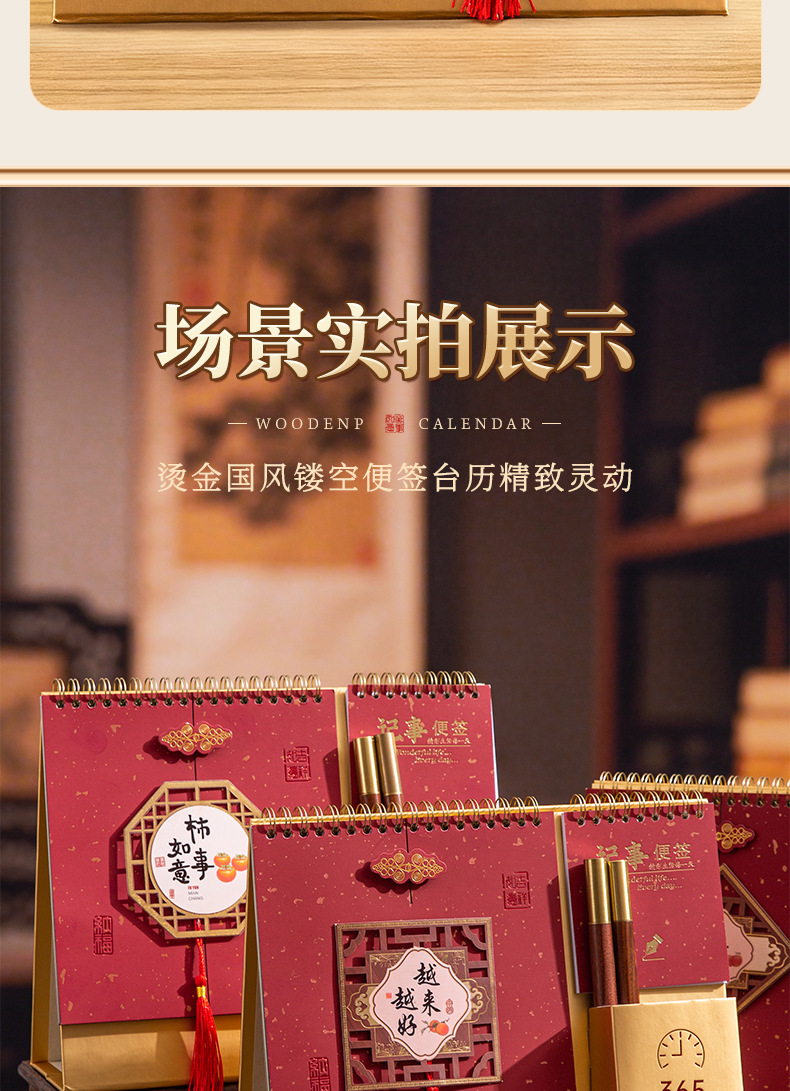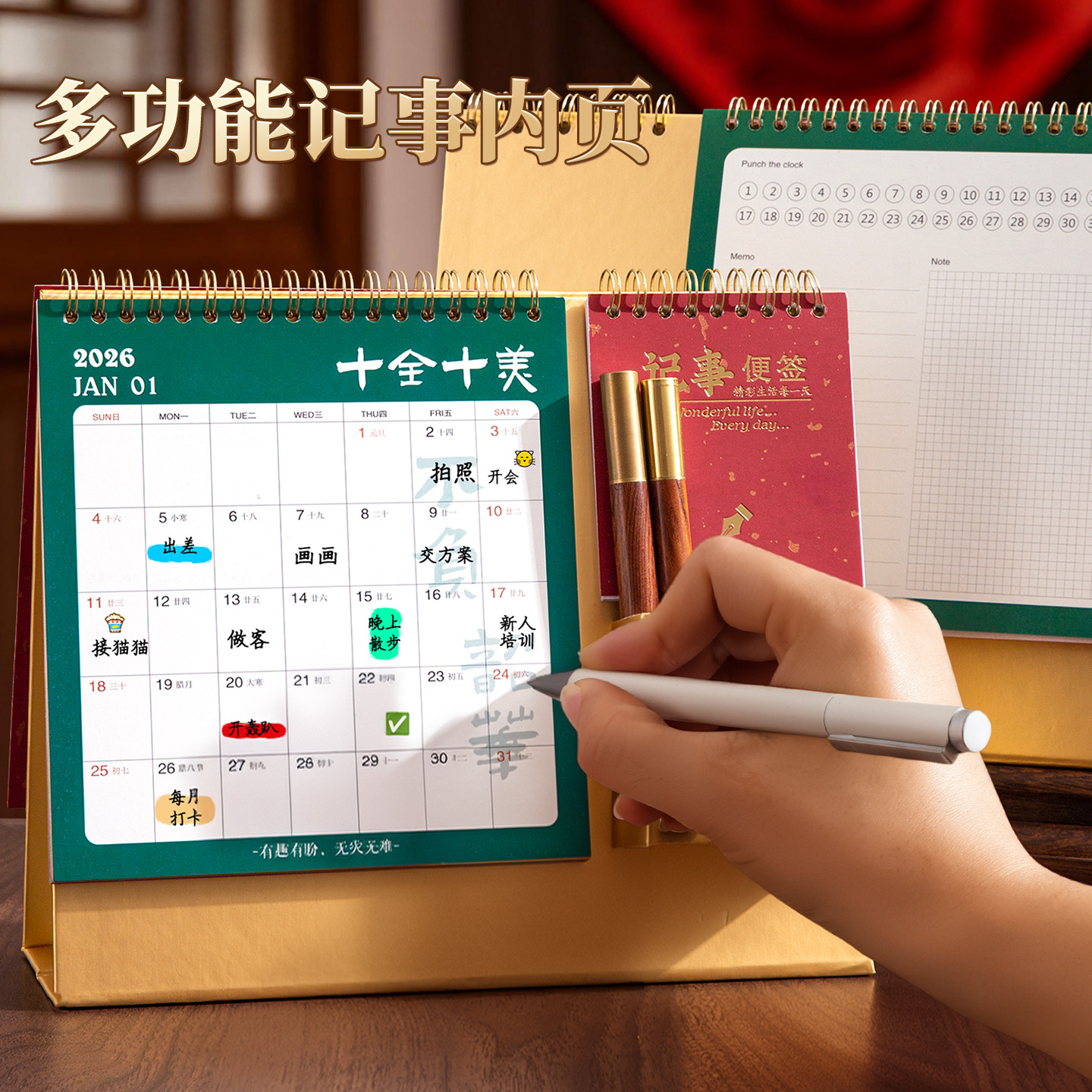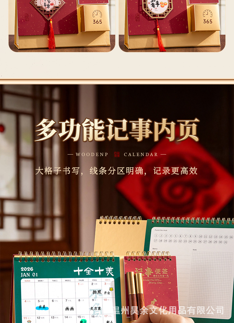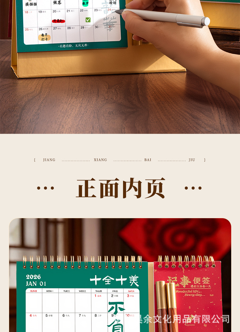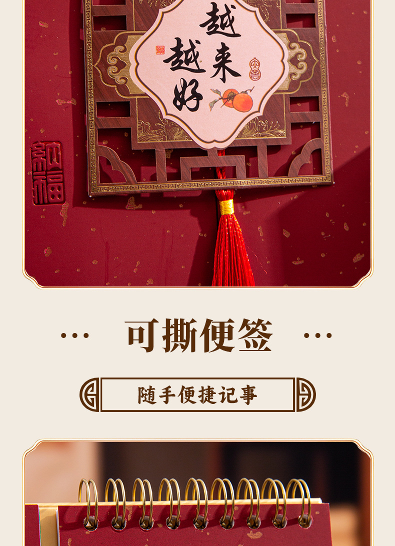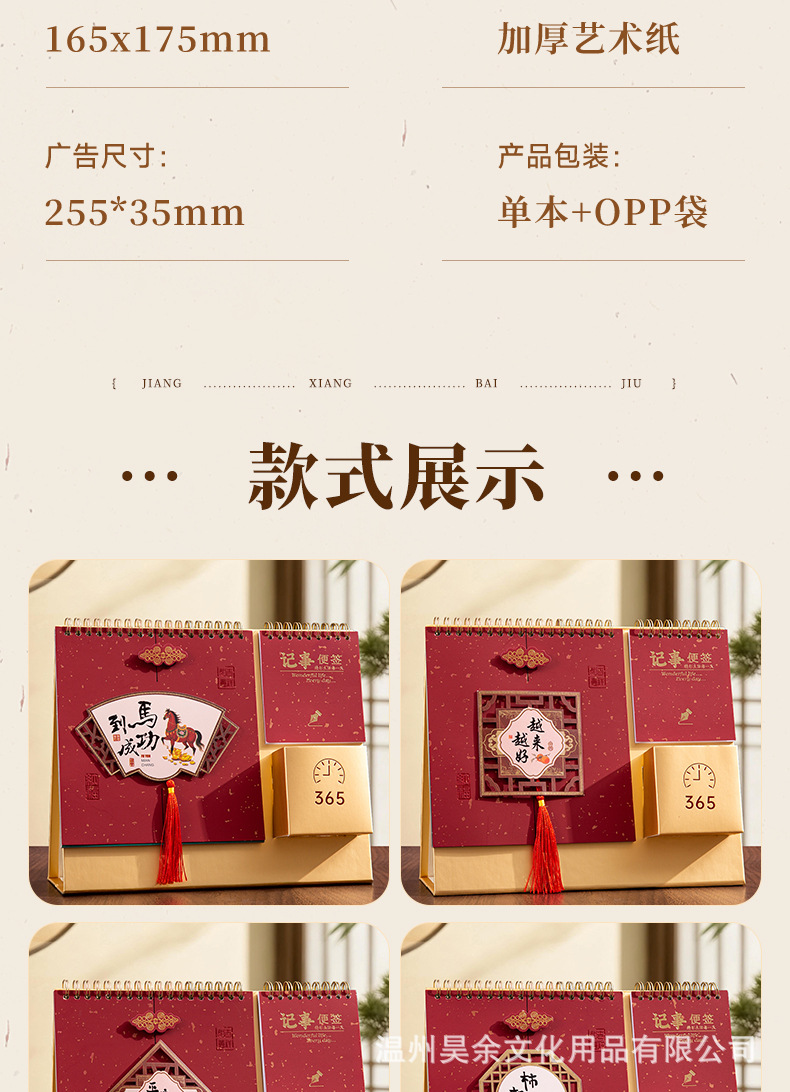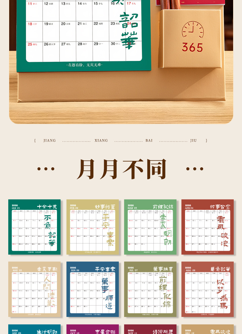 2026马年新款台历定制商务办公流苏纸质月历中国风桌面摆件logo订