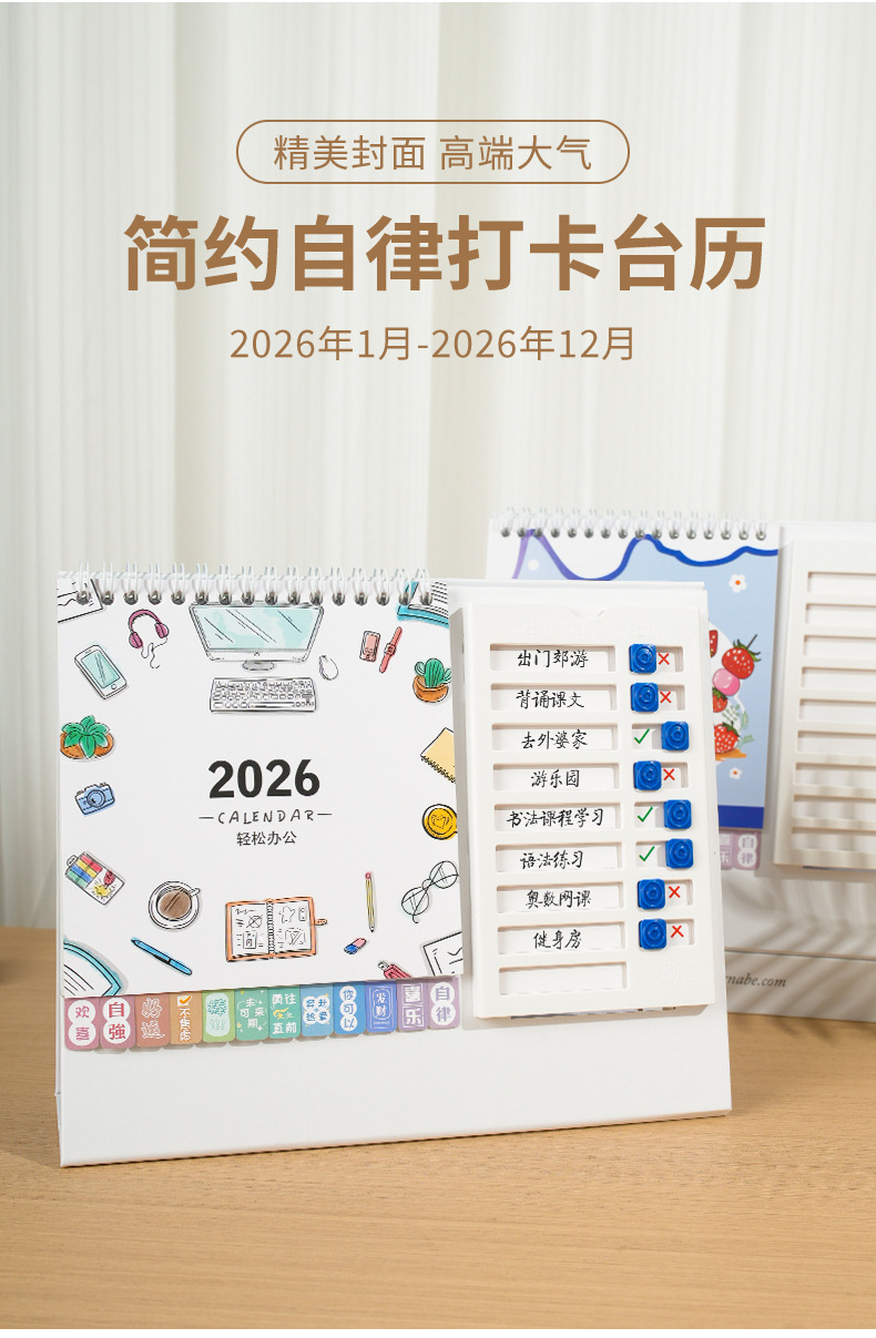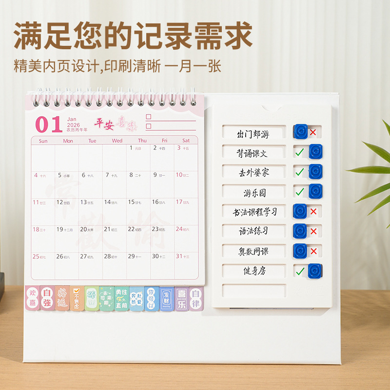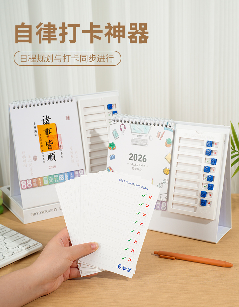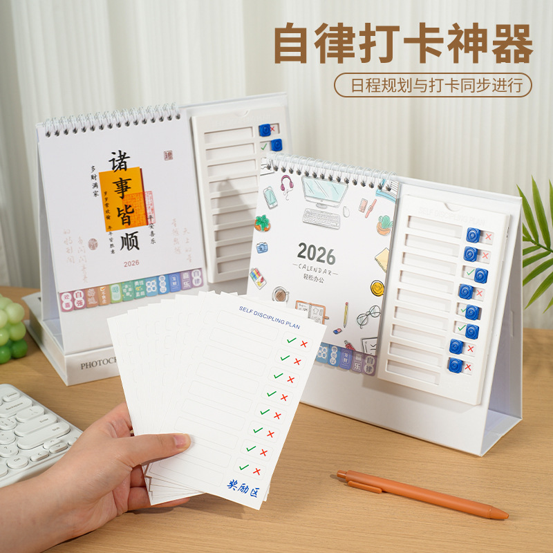 2026年新款创意自律打卡台历办公学习桌面日历计划打卡台历定制