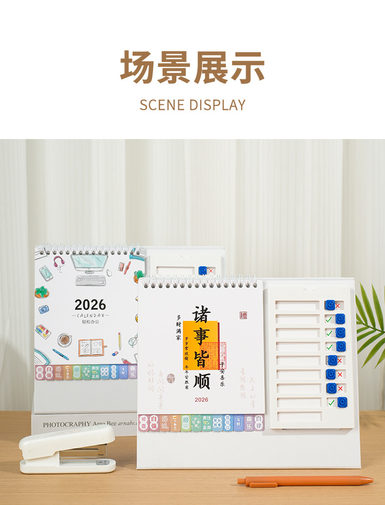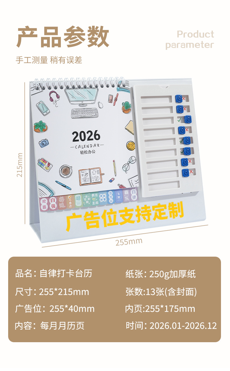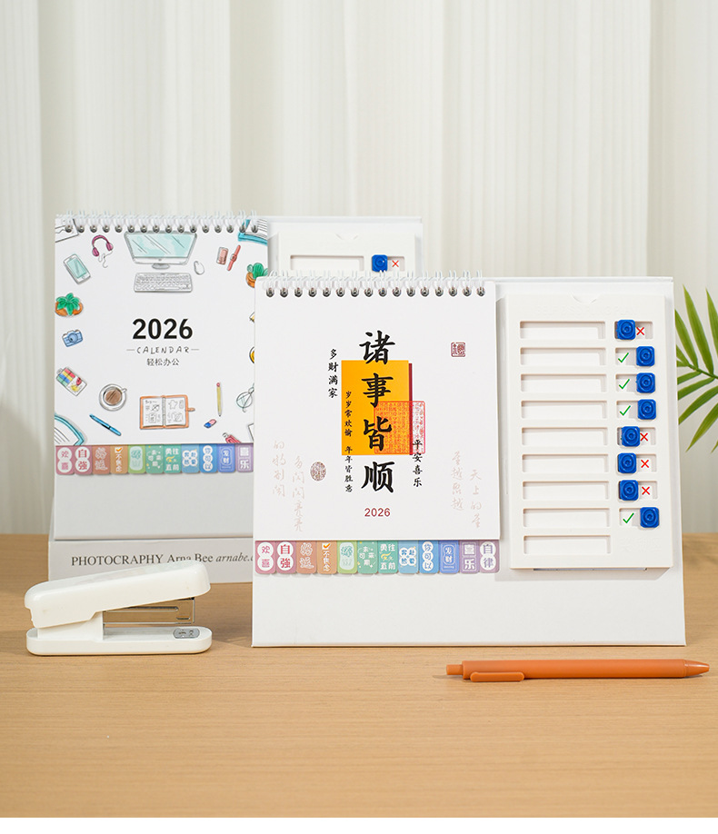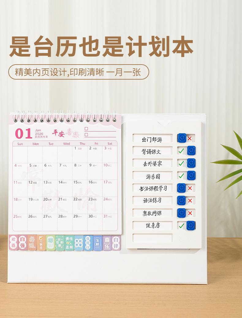 2026年新款创意自律打卡台历办公学习桌面日历计划打卡台历定制