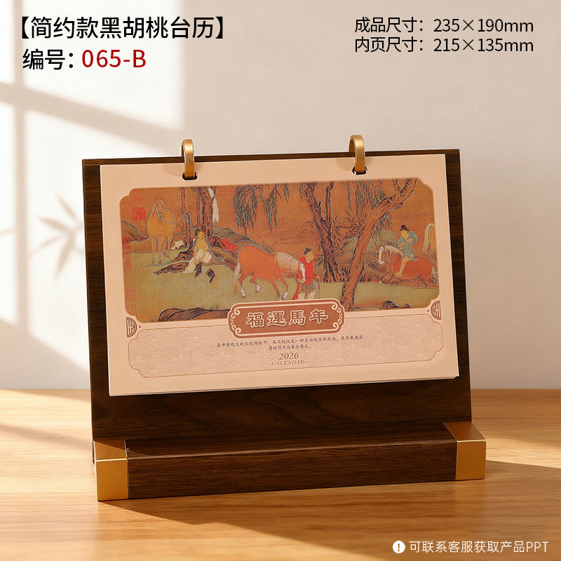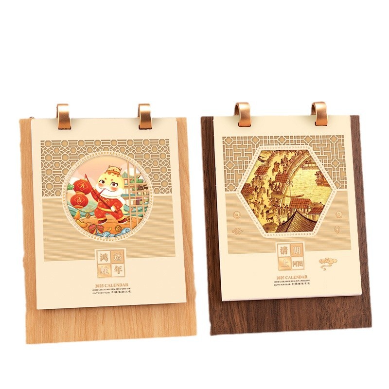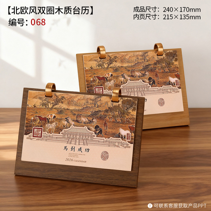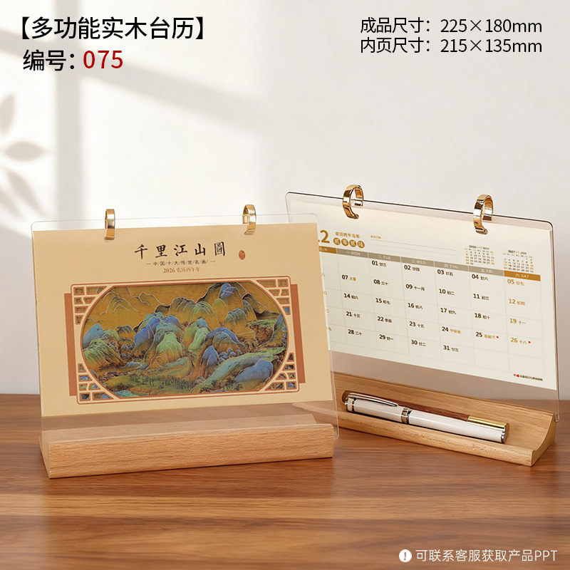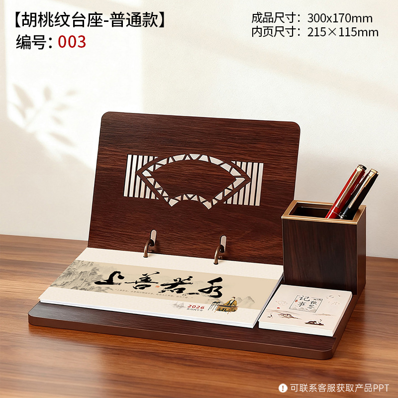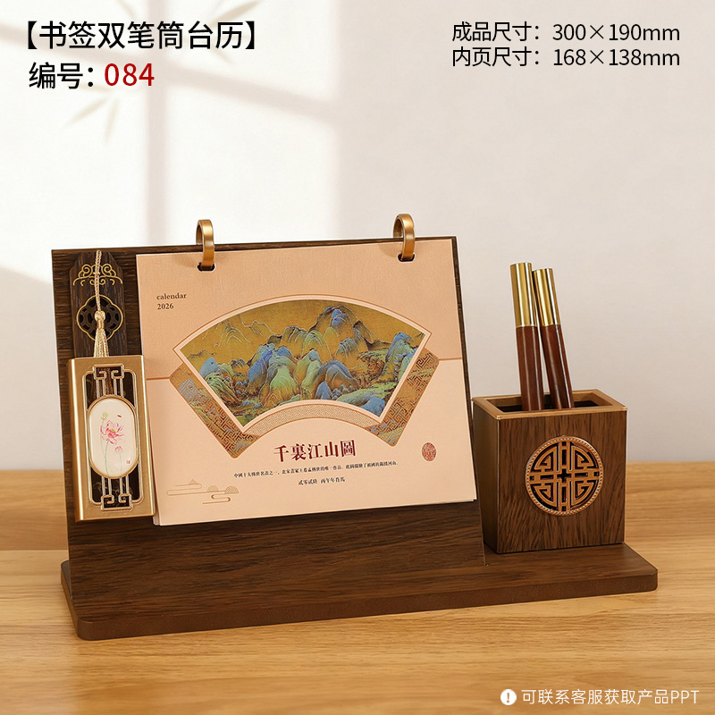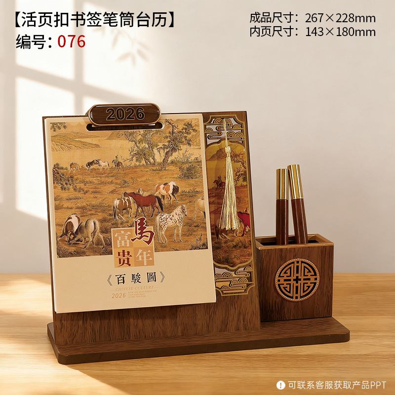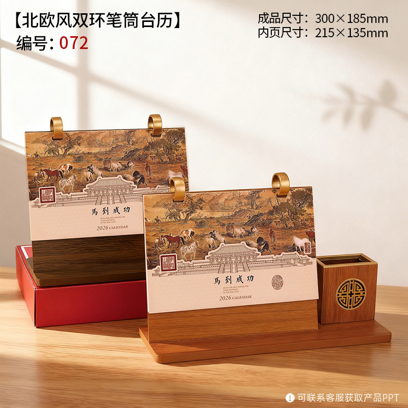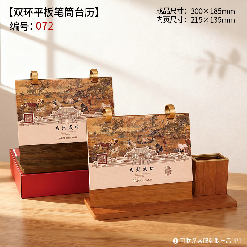 2026年木质台历礼盒装木架笔筒桌历高档商务办公企业广告礼品日历