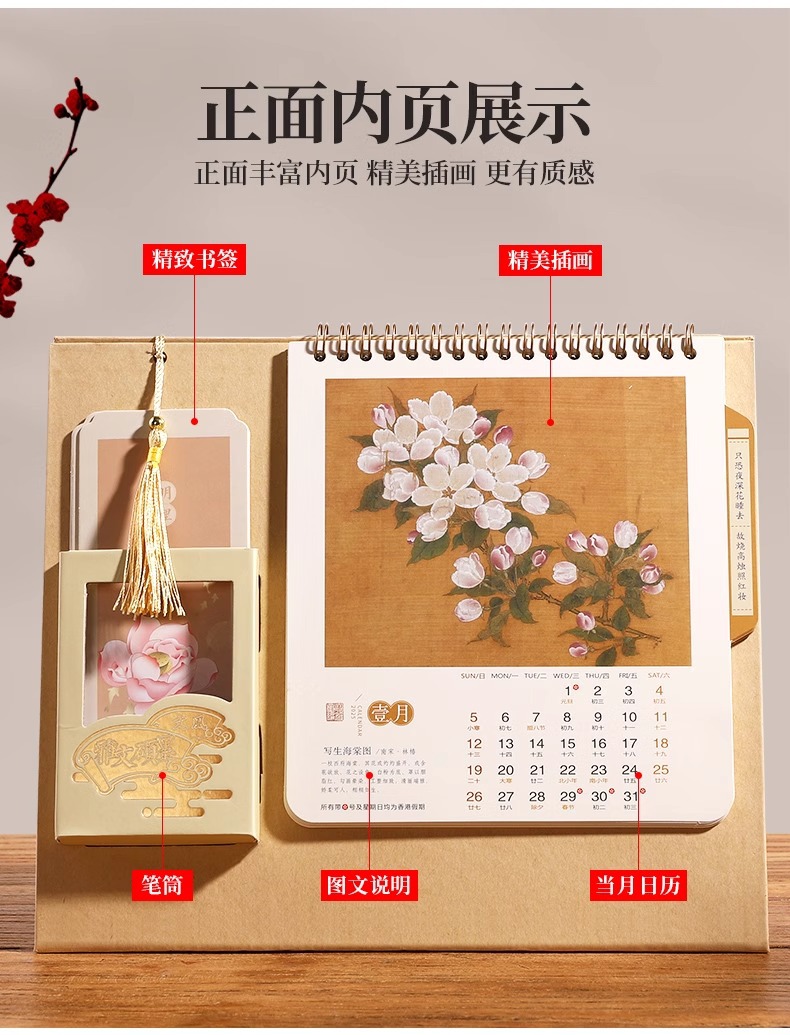 2026年台历定制国潮国风日历办公桌面摆件印公司企业广告logo印刷