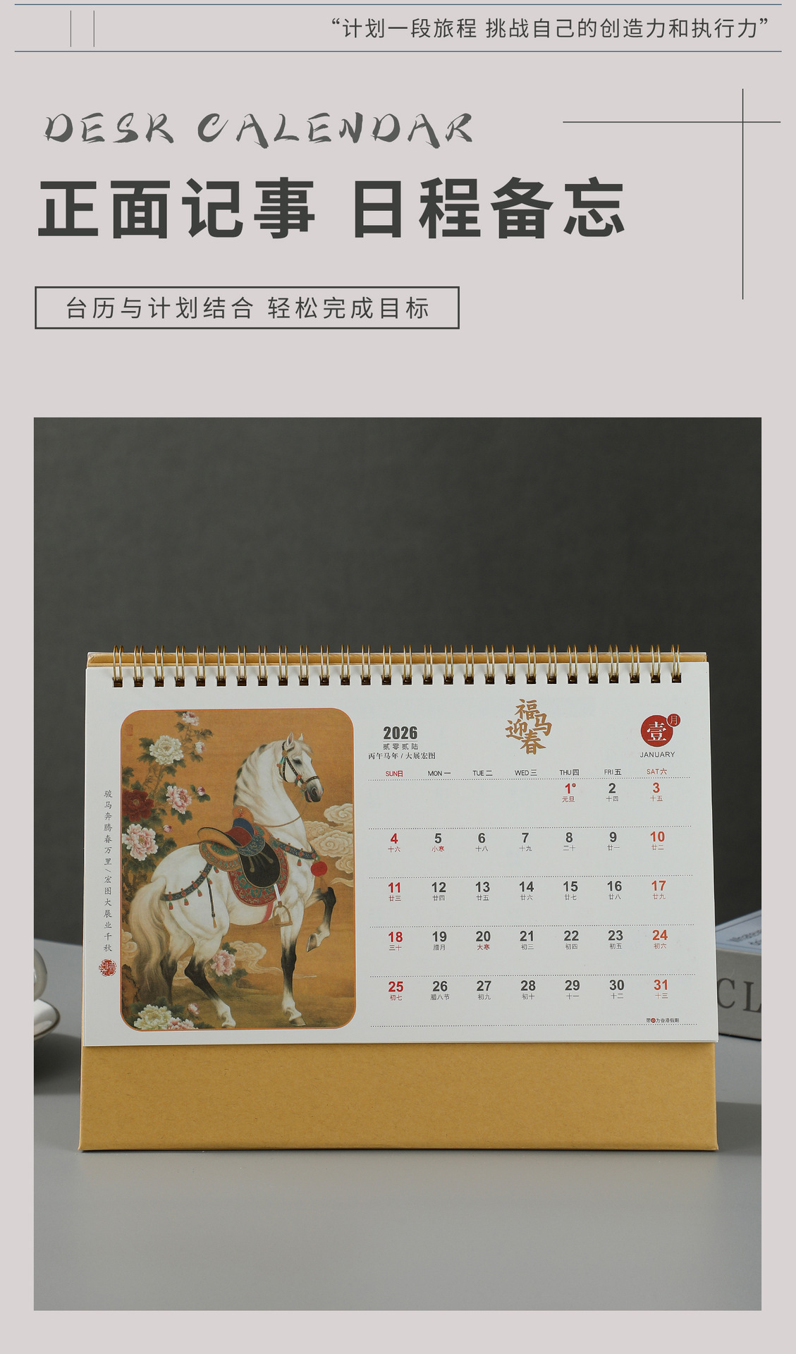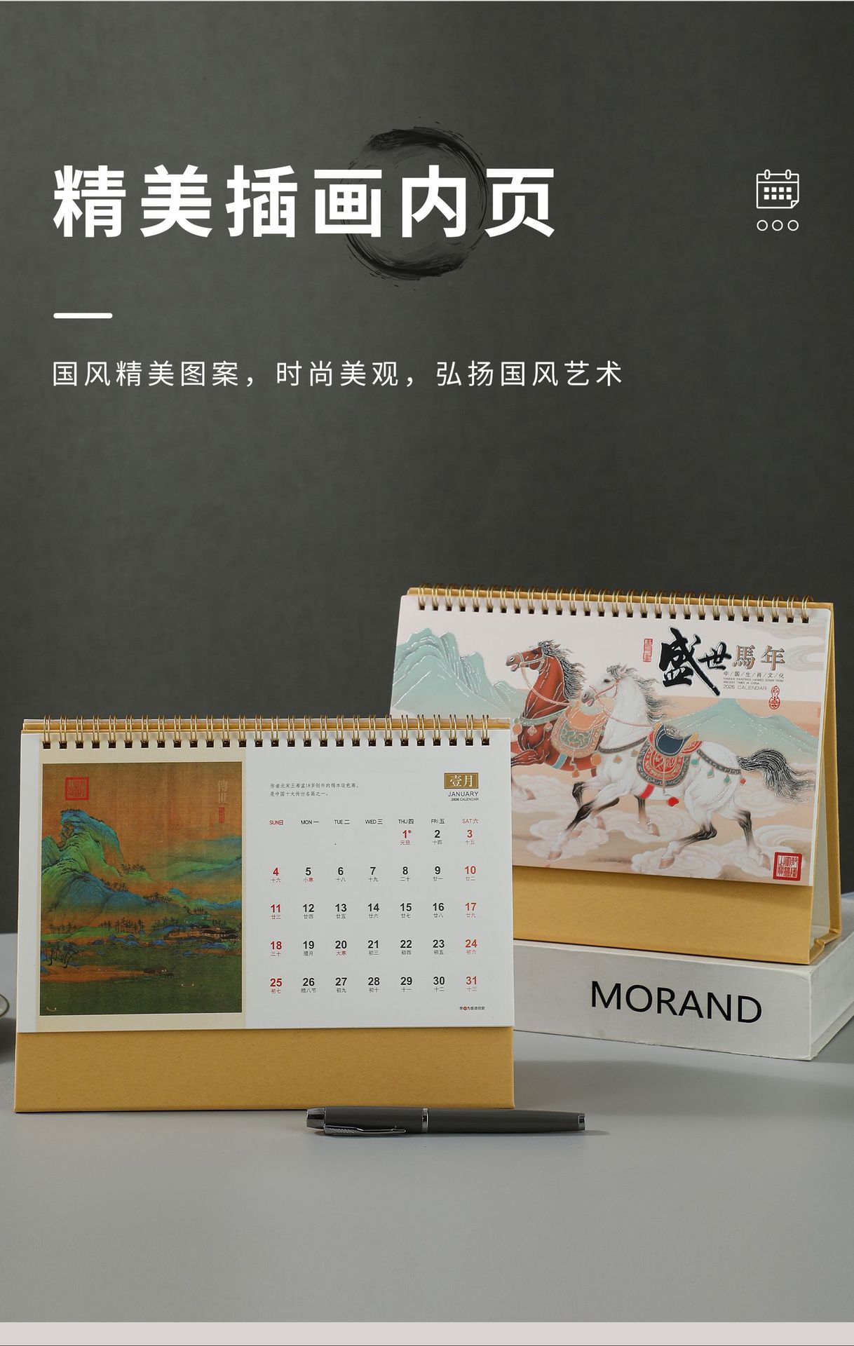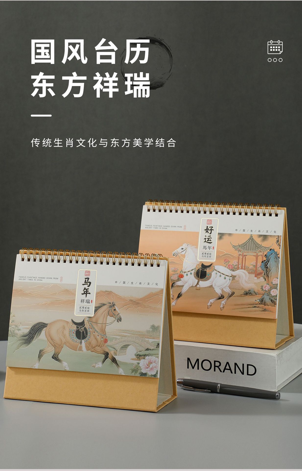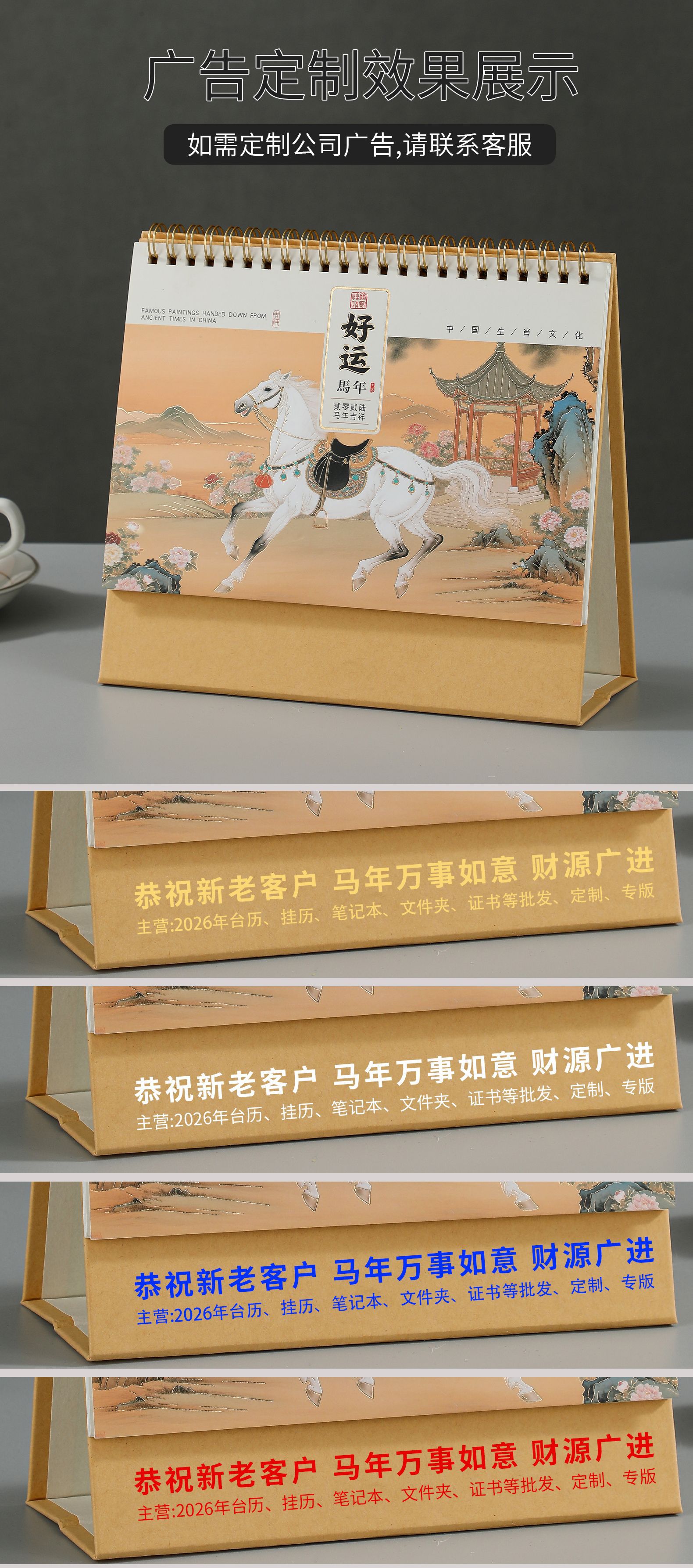 2026马年新款国潮日历定制创意桌面摆件商务保险企业台历厂家批发