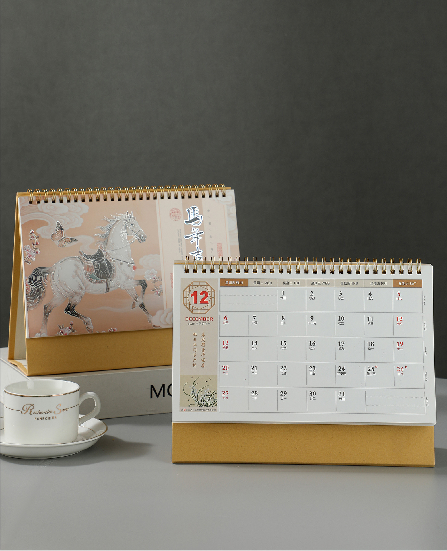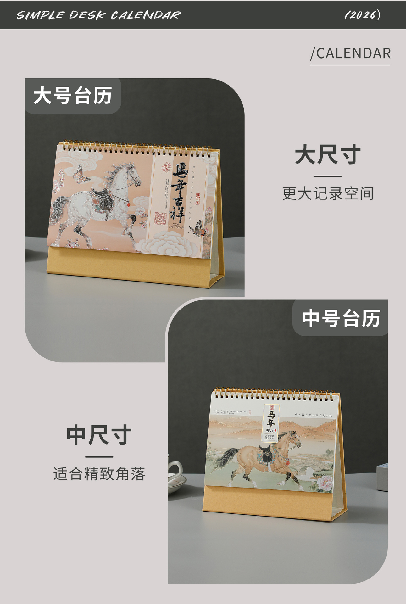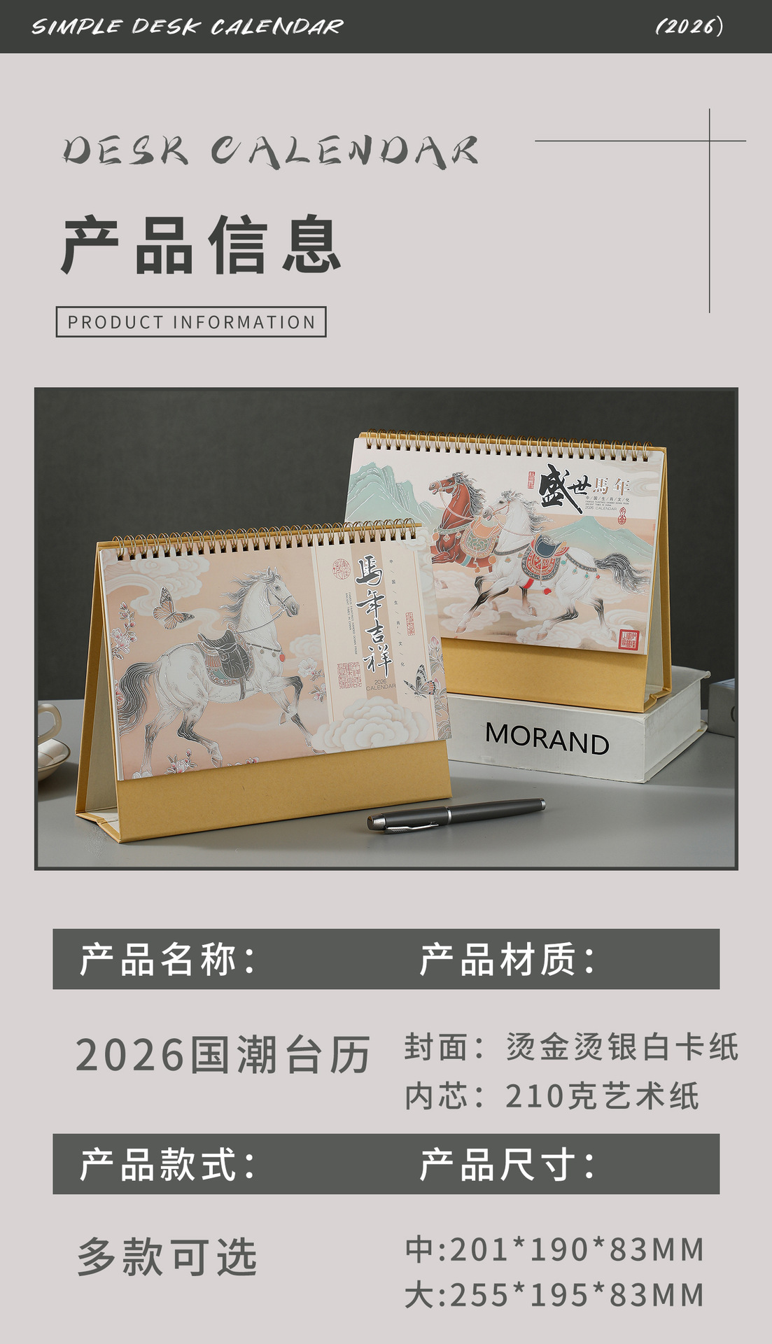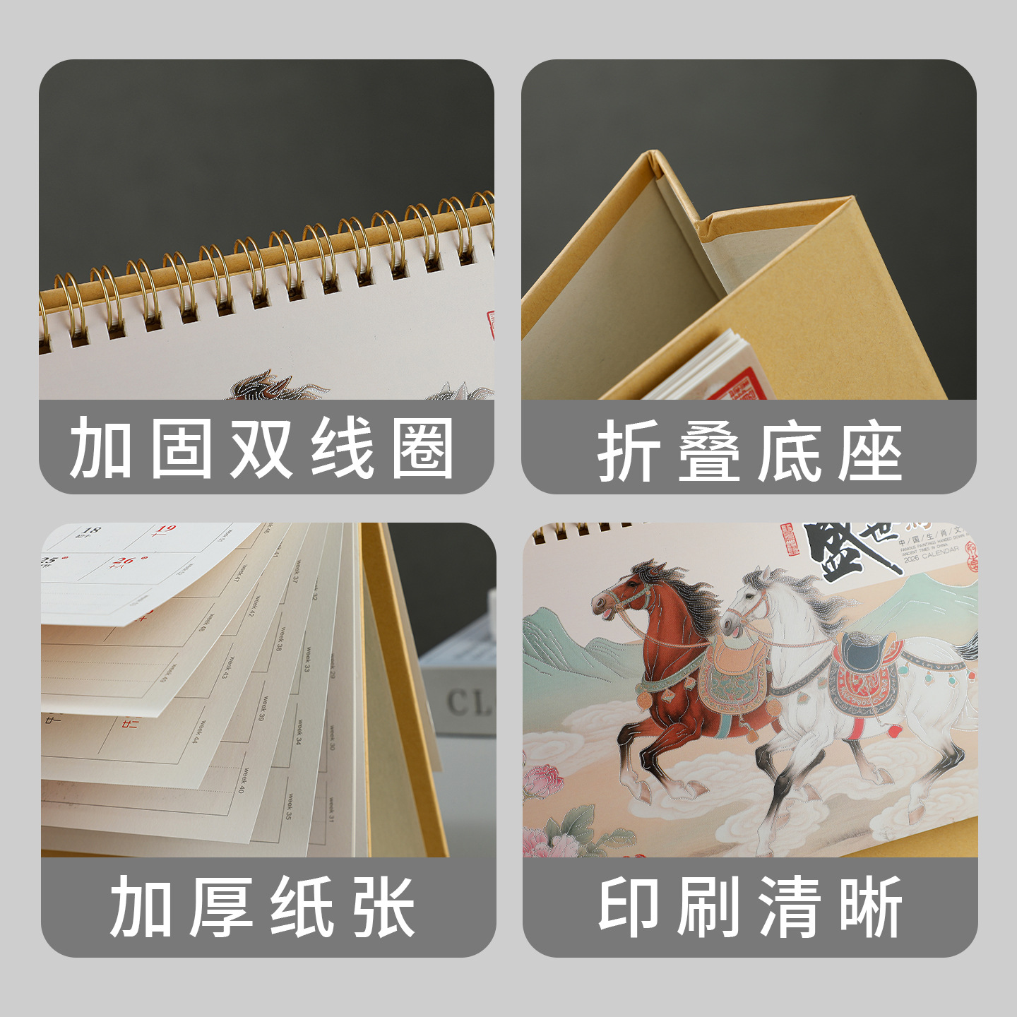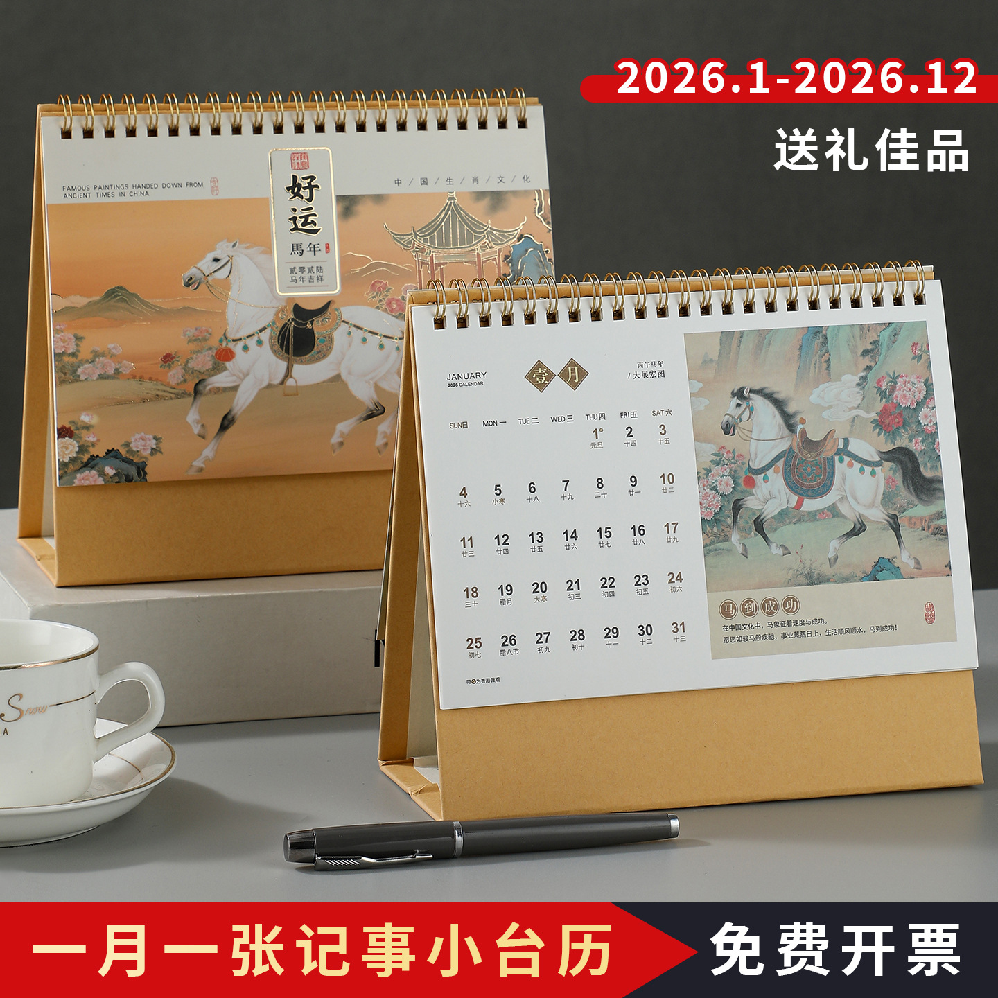 2026马年新款国潮日历定制创意桌面摆件商务保险企业台历厂家批发